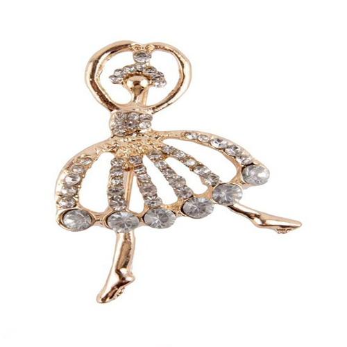 Ballerina brooch with rhinestones, gold color