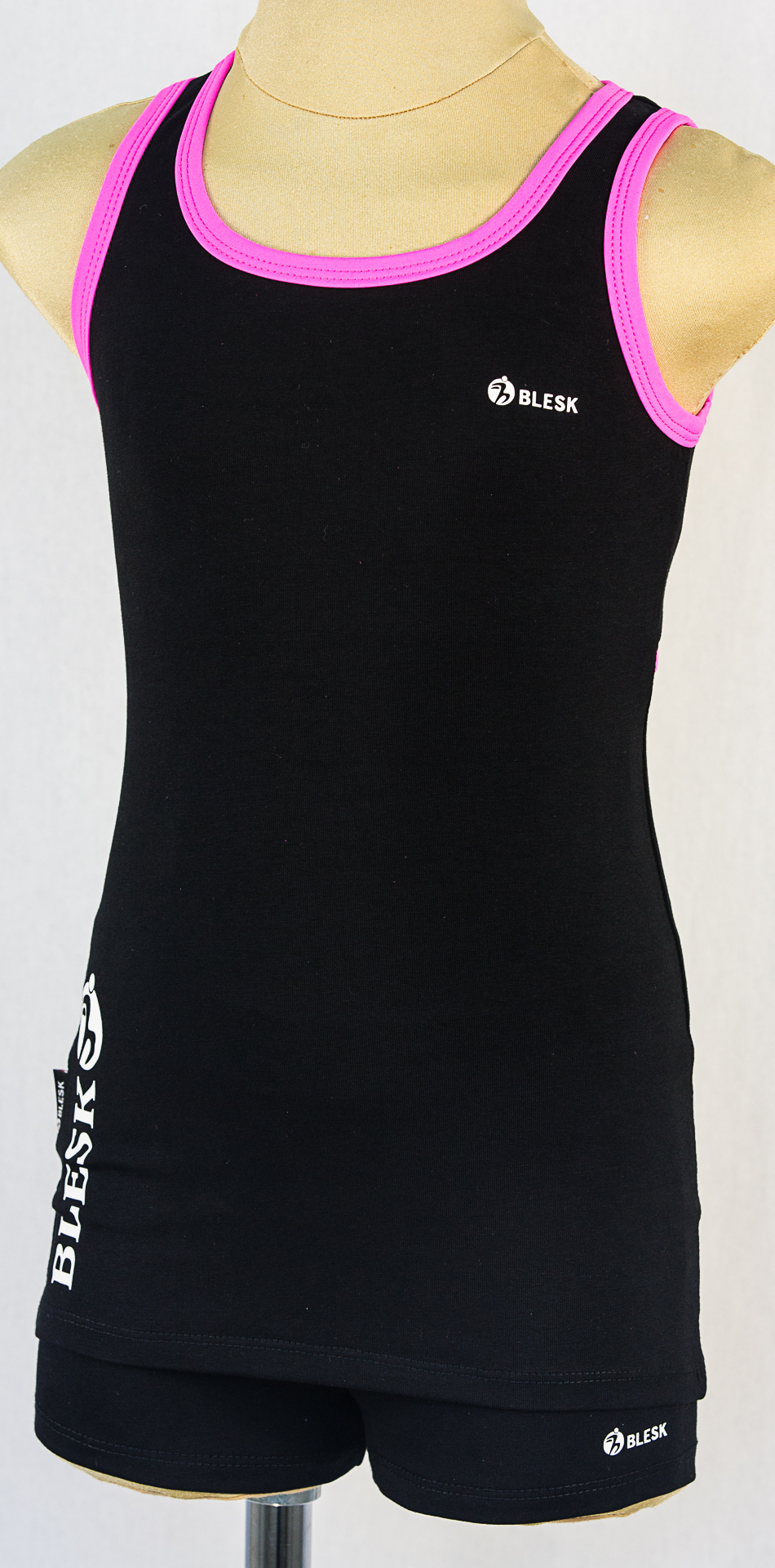 Black cotton T-shirt with bright edging. Fashionable design, fitted cut ensures a comfortable fit, does not restrict movement. It goes well with any leggings and shorts.