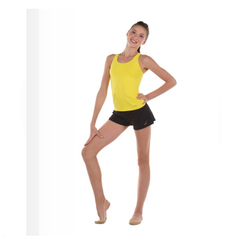 Black double shorts. The upper shorts are loose, made of light fabric (polyester with elastane), the lower shorts are form-fitting (cotton with elastane).