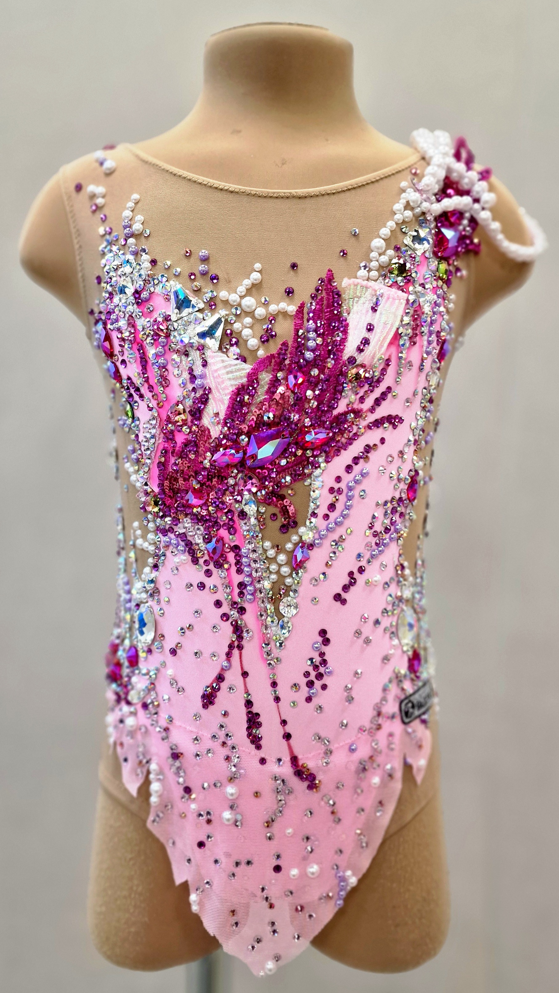 3,000 adhesive and 65 large sewn rhinestones were Pre-owned on the leotard.