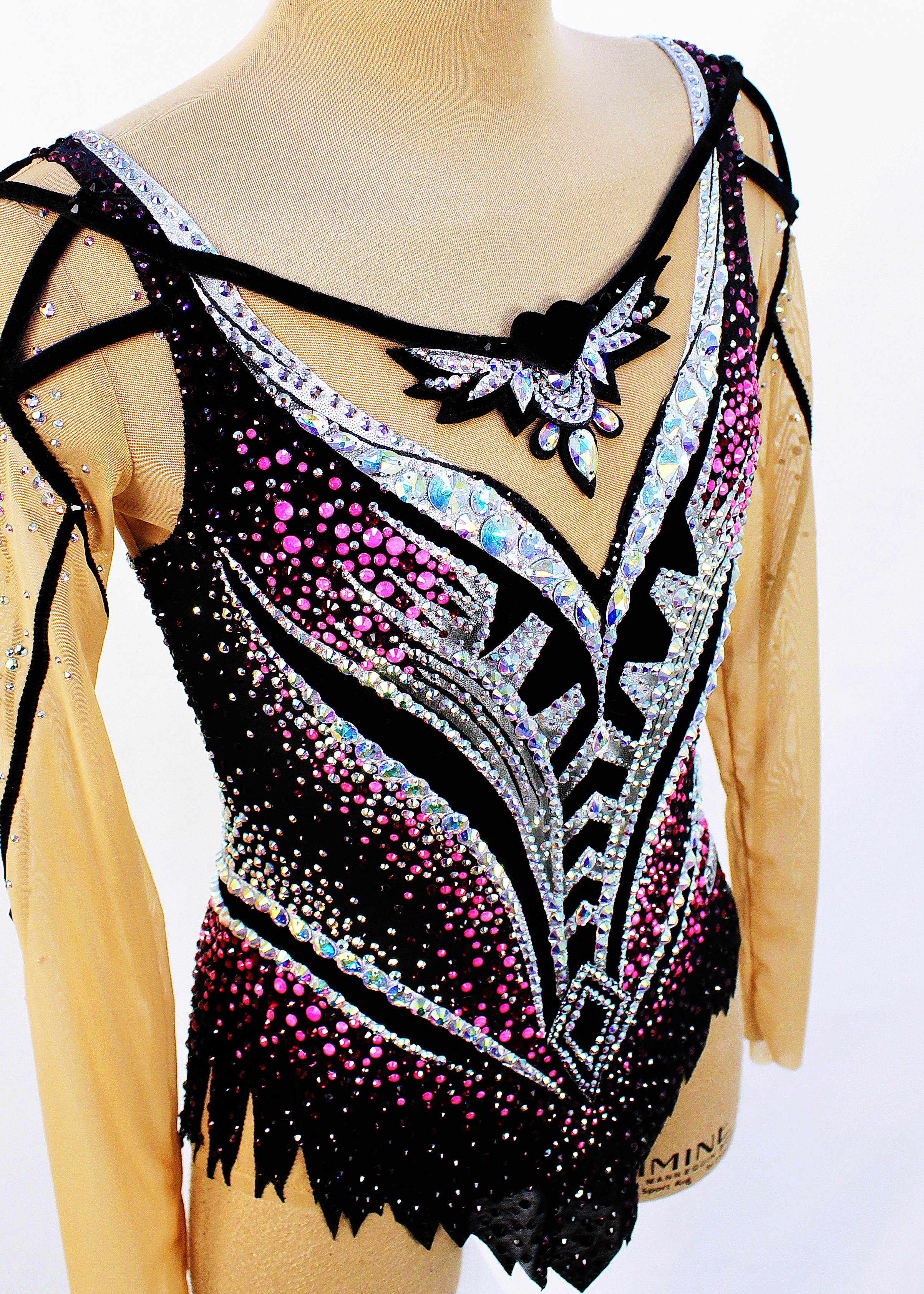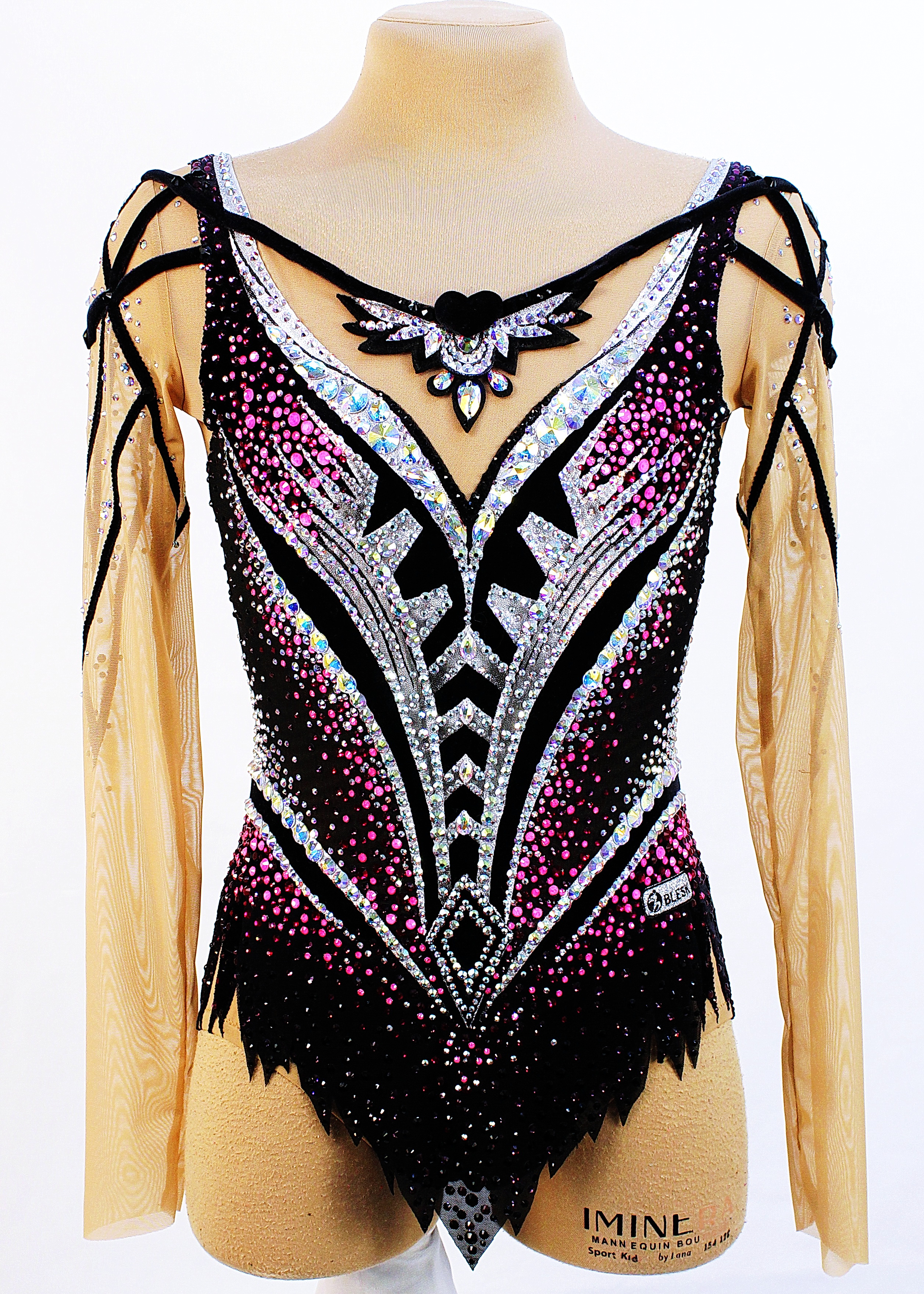 5260 glue and 72 large sewn rhinestones were Pre-owned on the leotard.