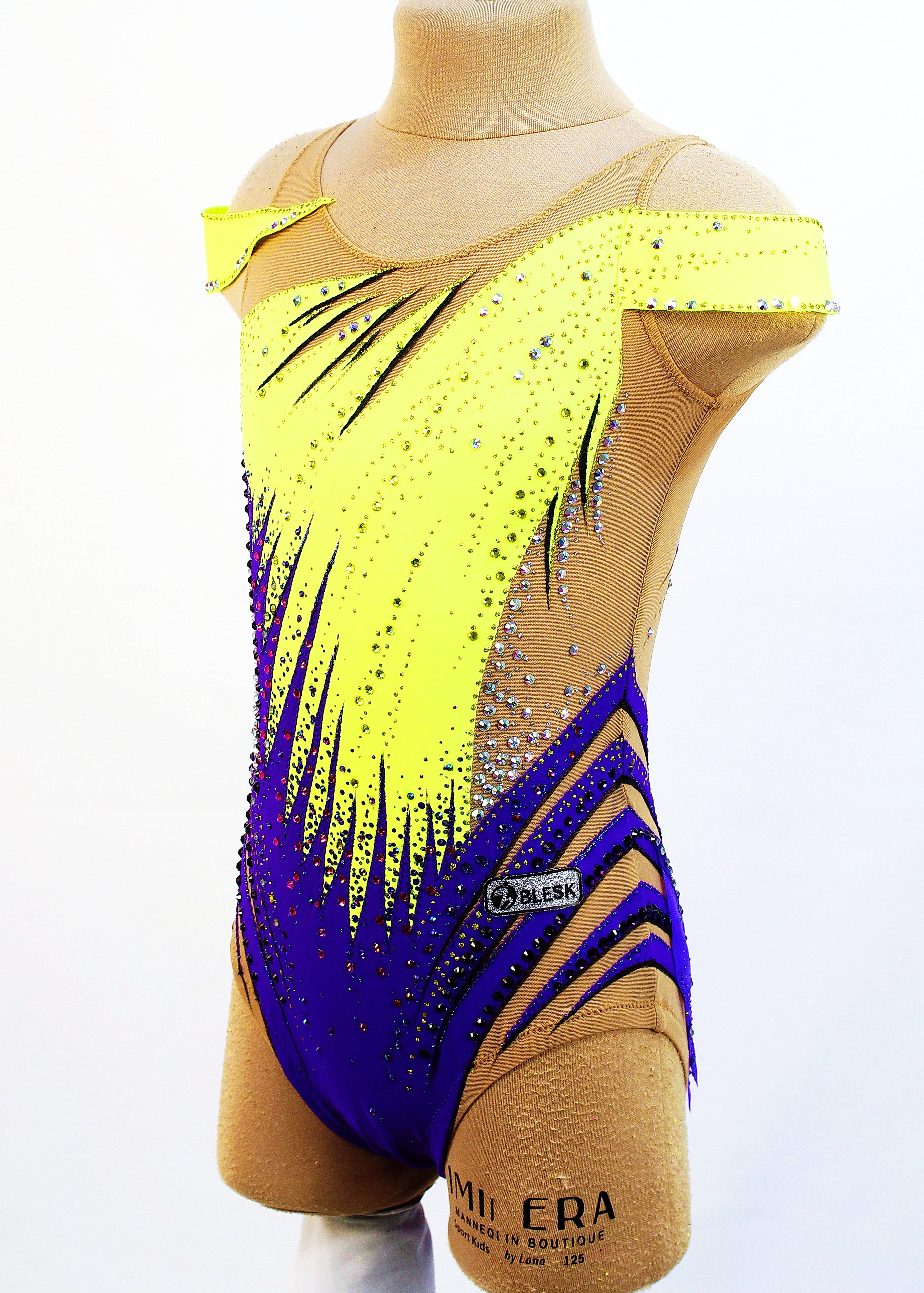 760 glue rhinestones are Pre-owned on the leotard.