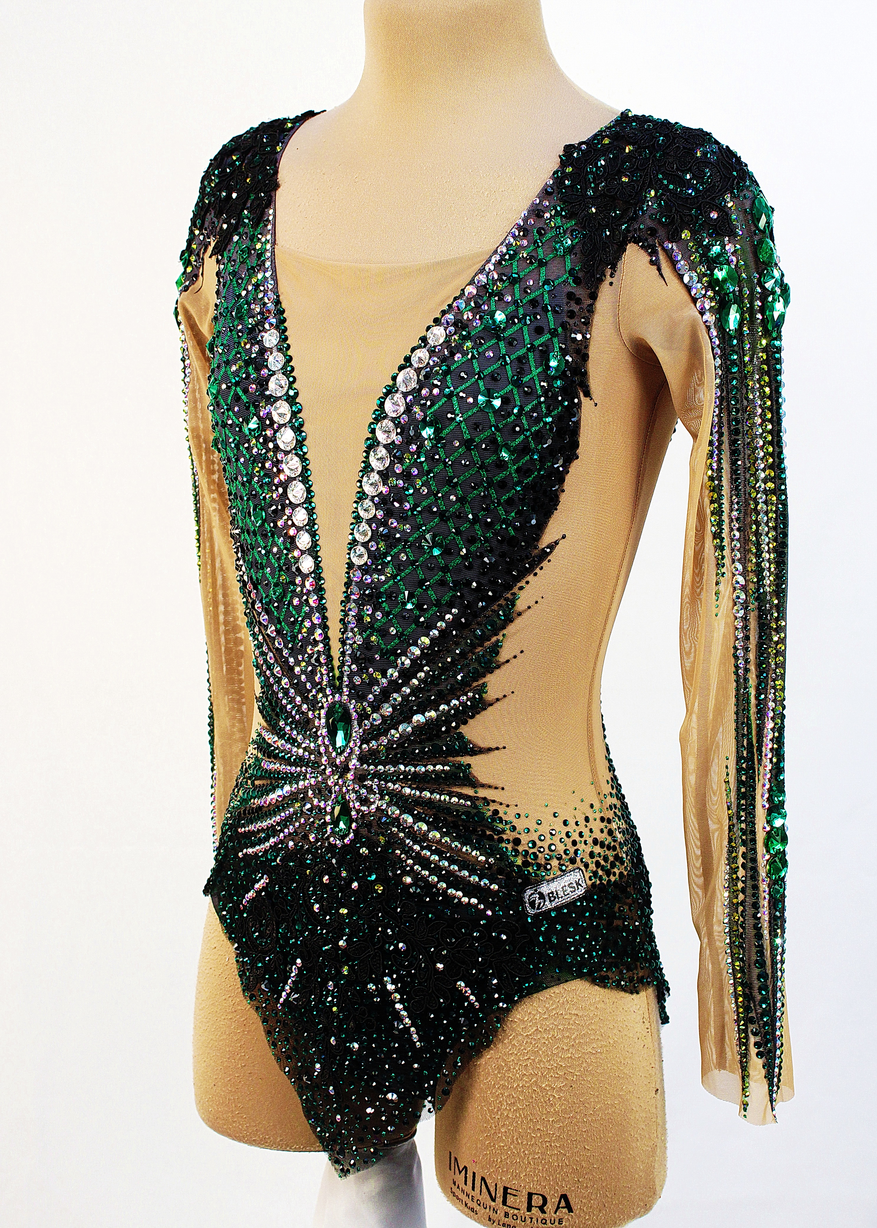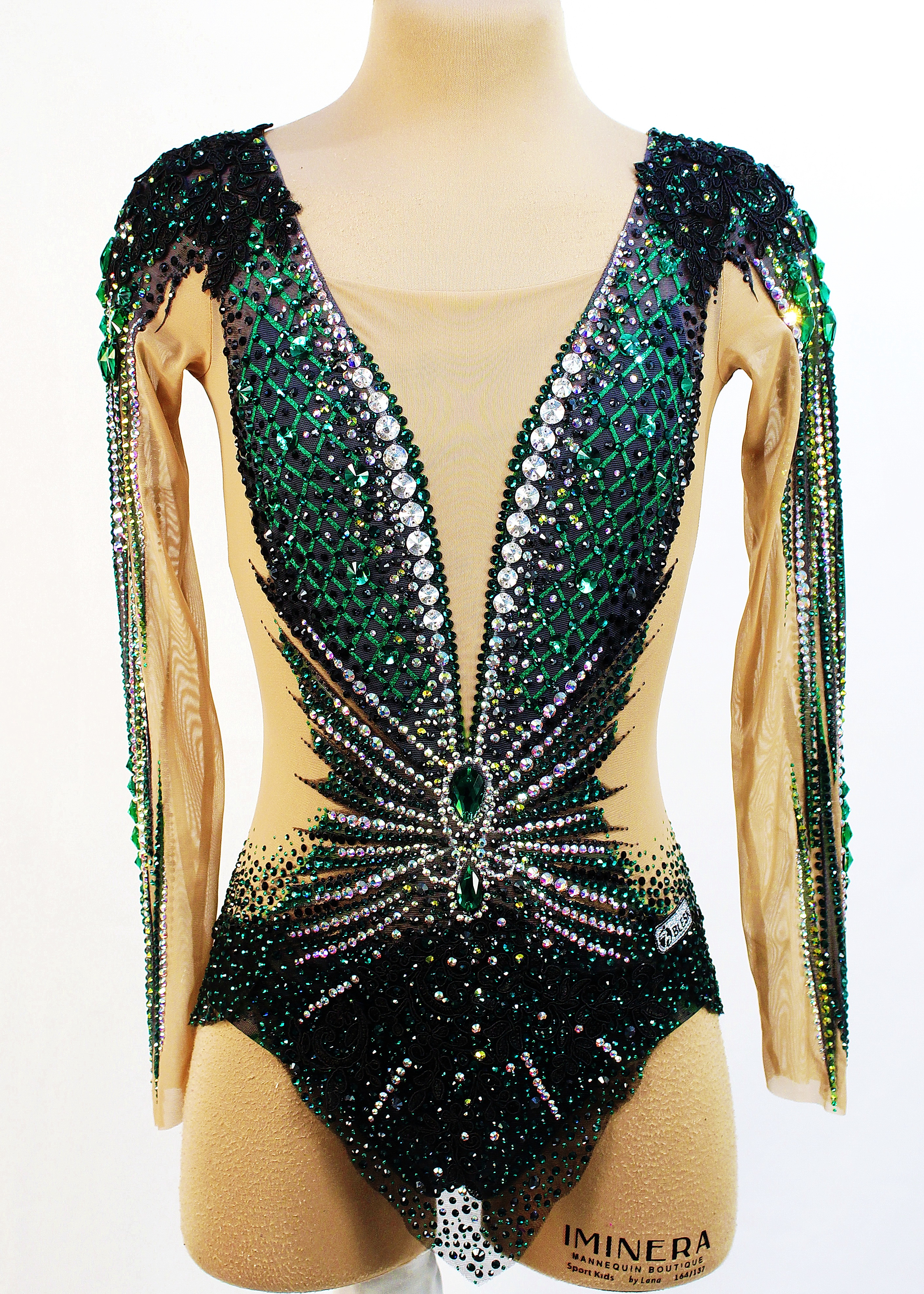 7202 adhesive and 79 large sewn rhinestones were Pre-owned on the leotard.