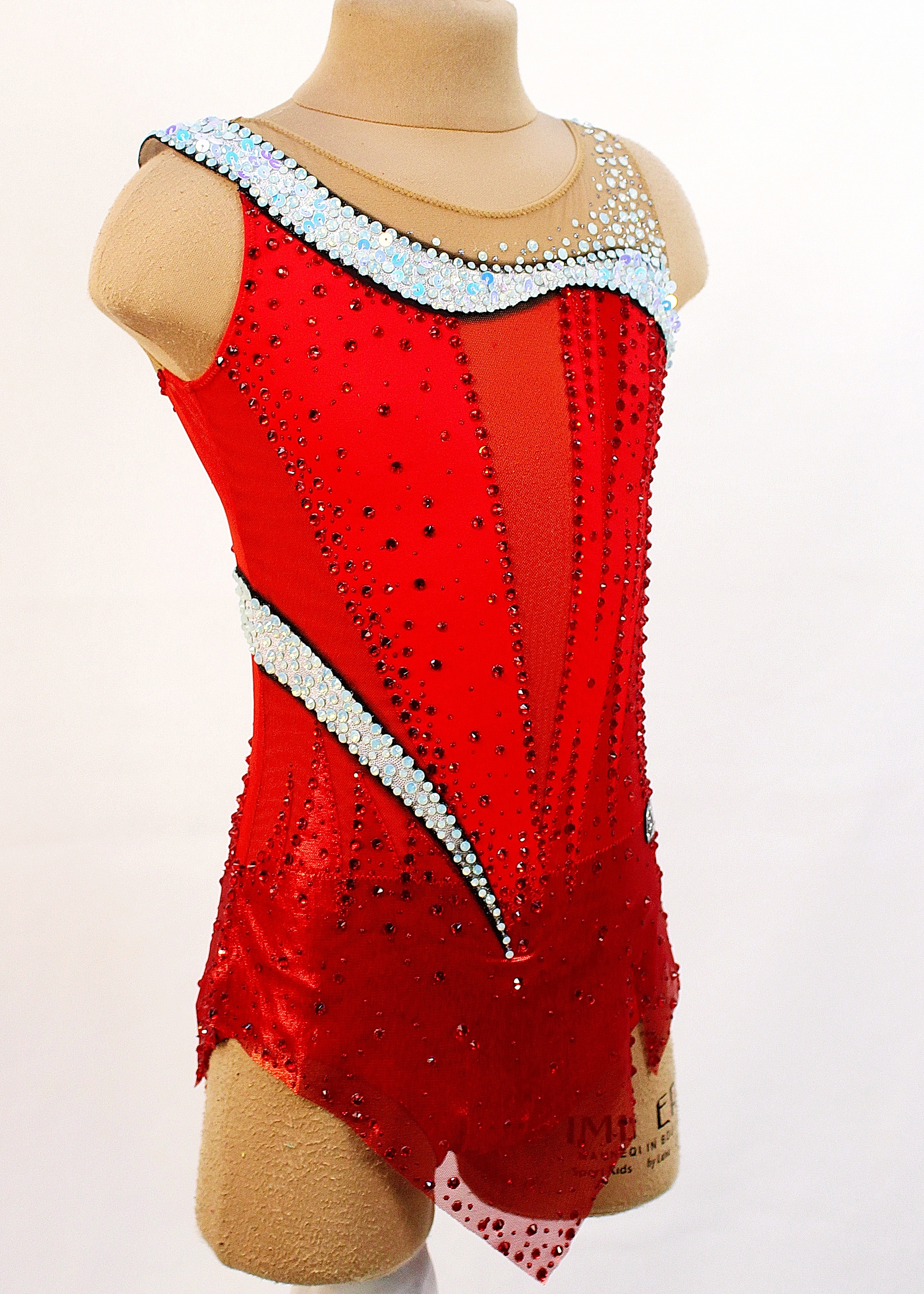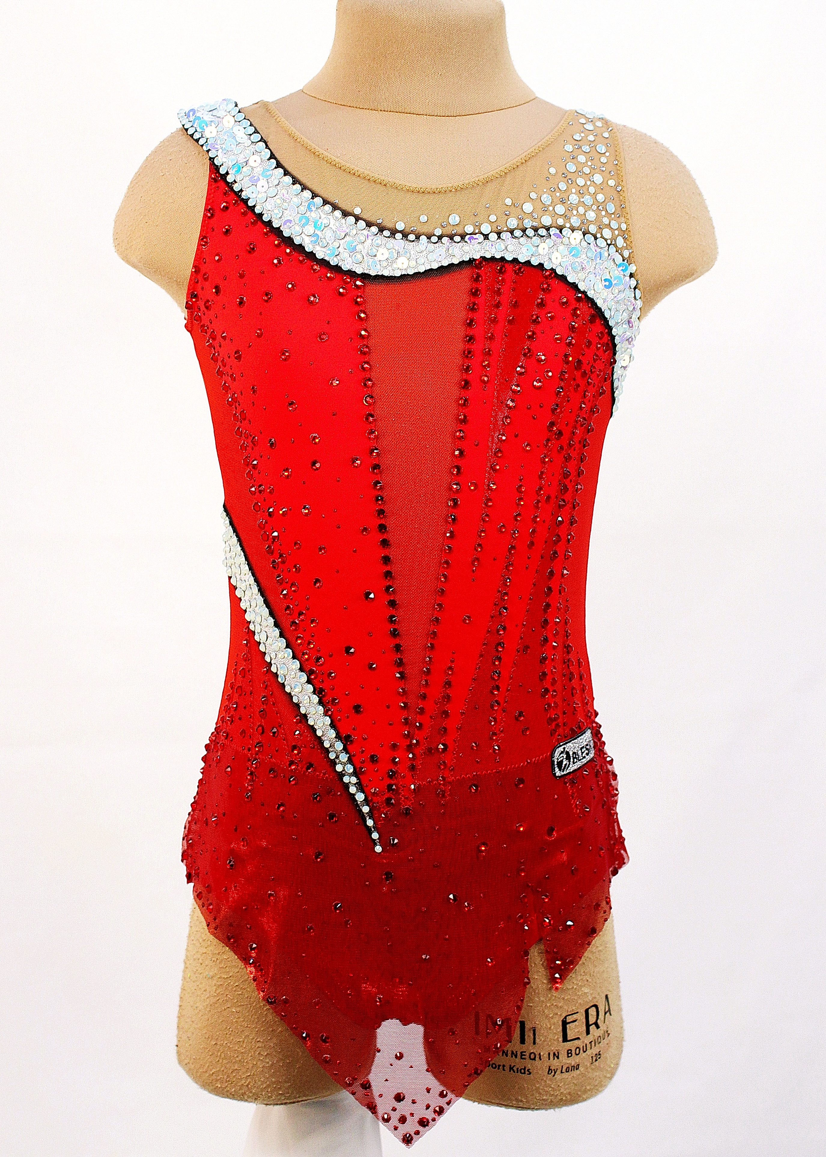 1950 adhesive rhinestones are Pre-owned on the leotard.