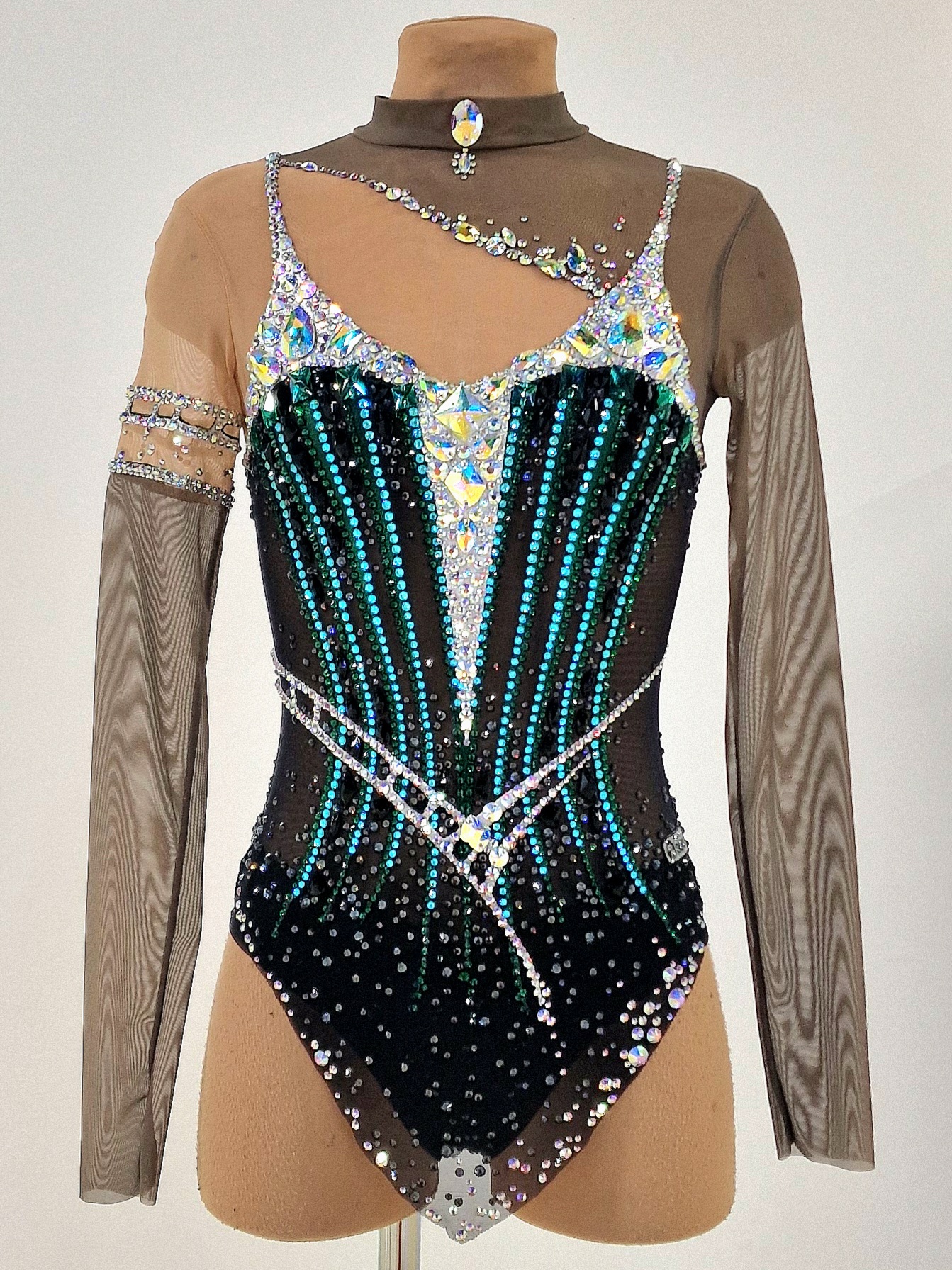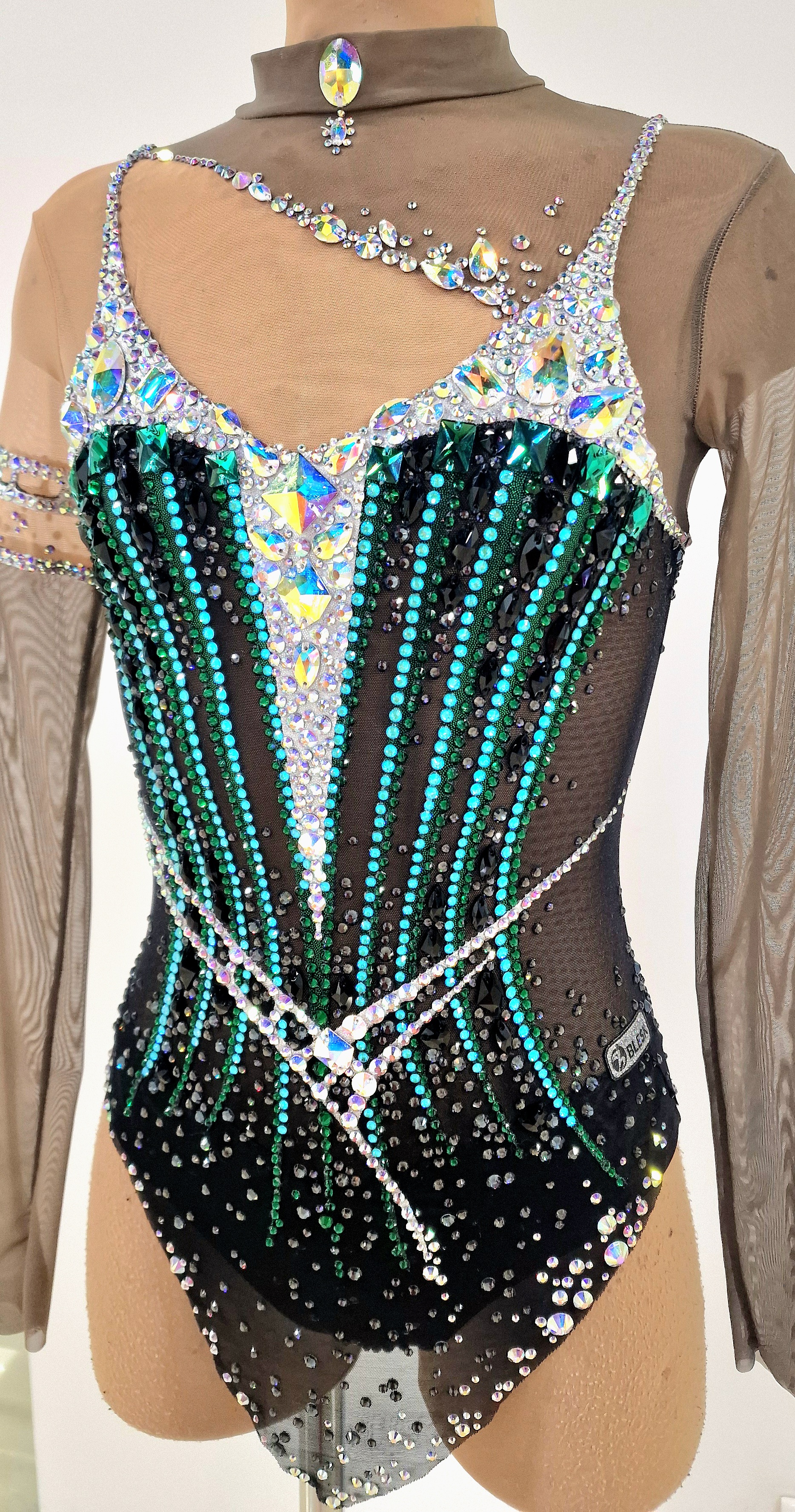 5261 glue and 137 large sewn rhinestones were Pre-owned on the leotard.