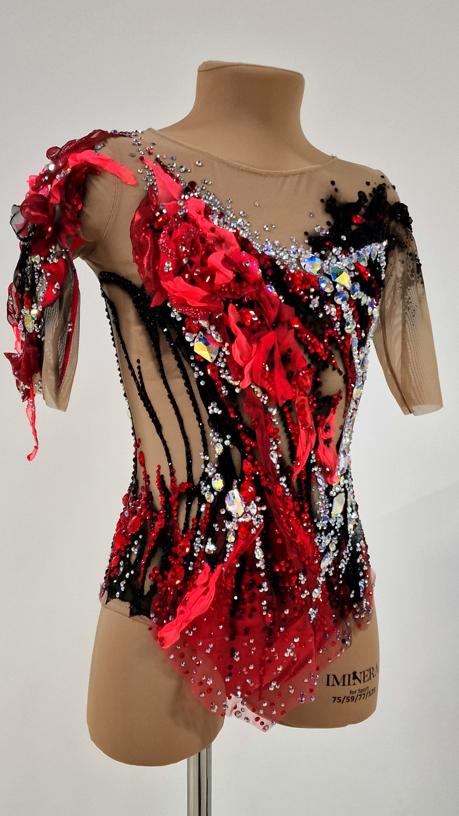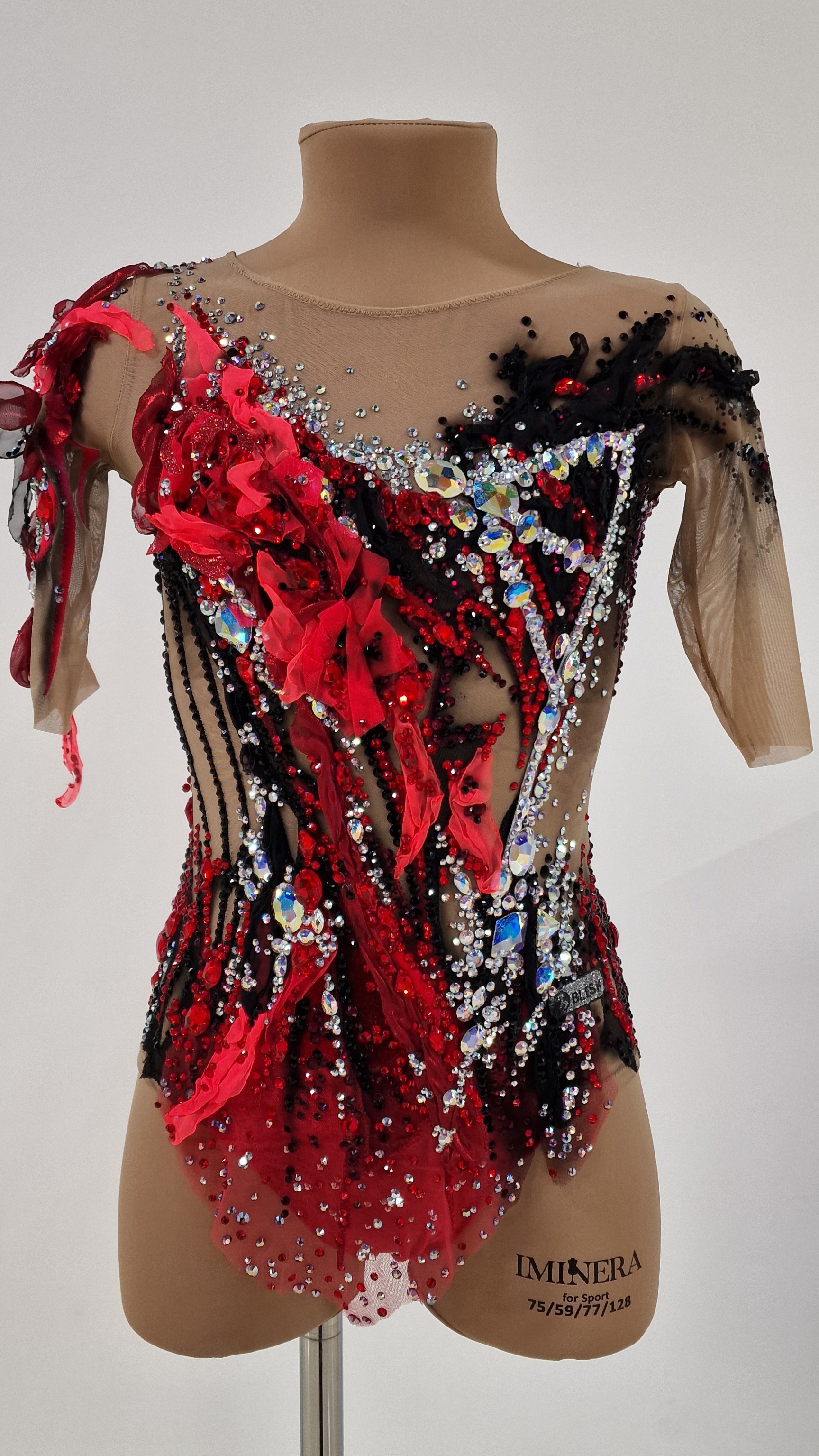 4349 glue and 150 large sewn rhinestones were Pre-owned on the leotard.
