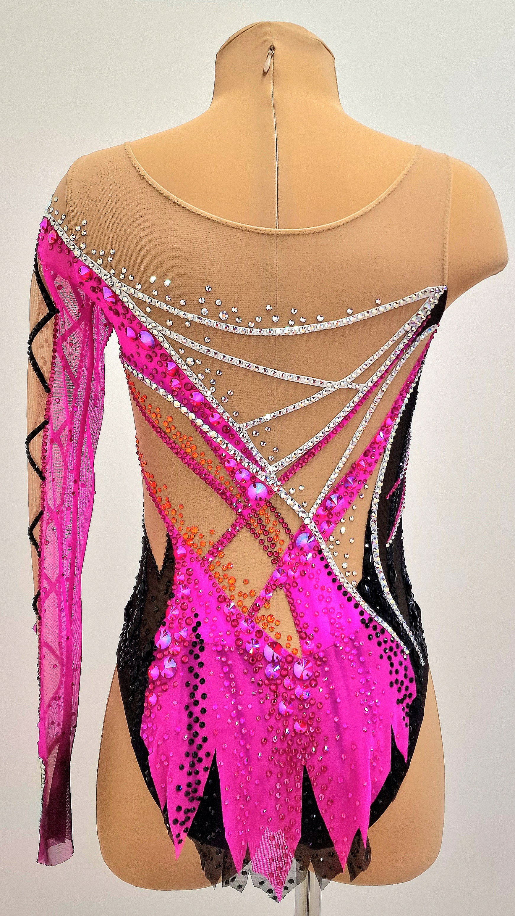 4,100 adhesive and 187 large sewn rhinestones were Pre-owned on the leotard.