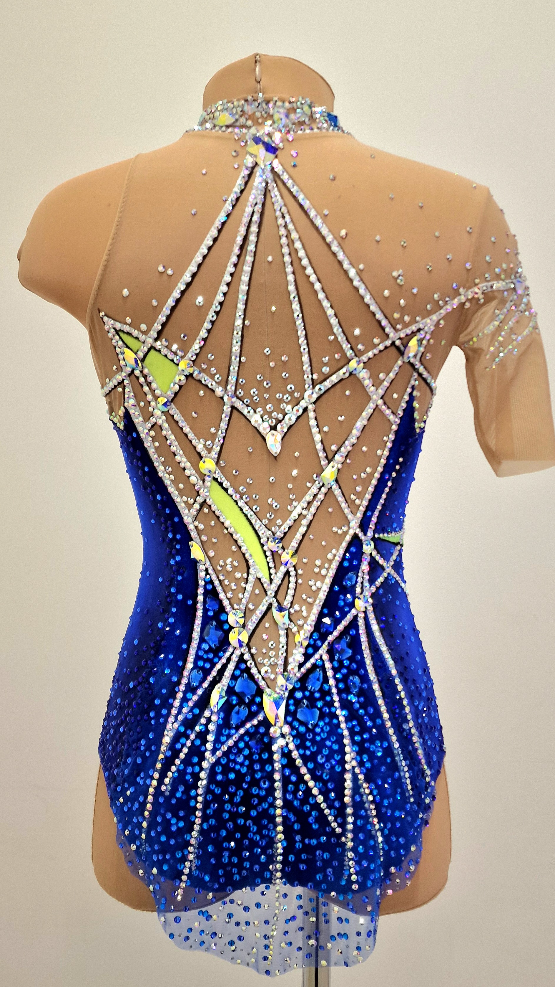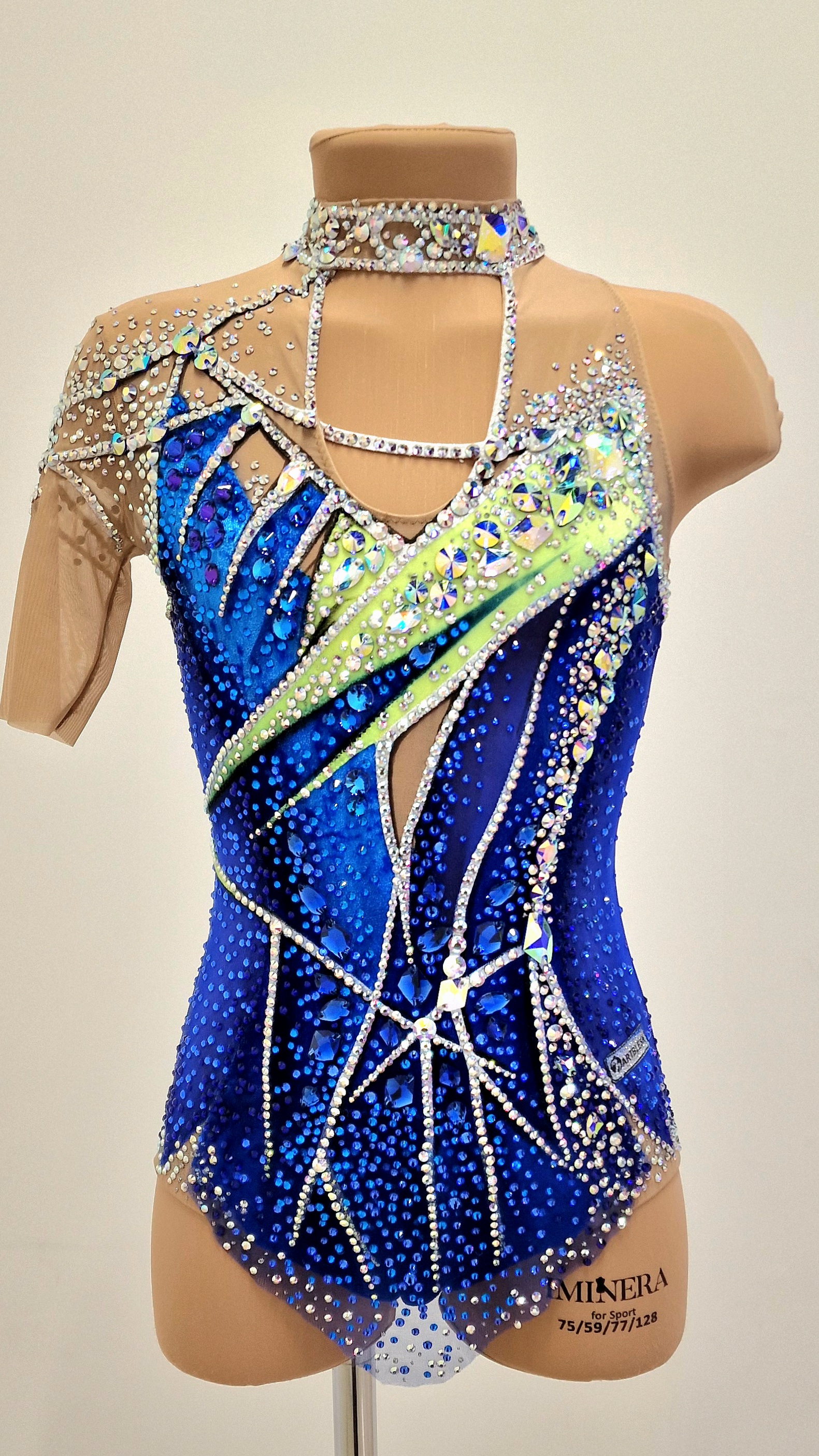 The leotard uses 5088 glue and 120 large sewn rhinestones.