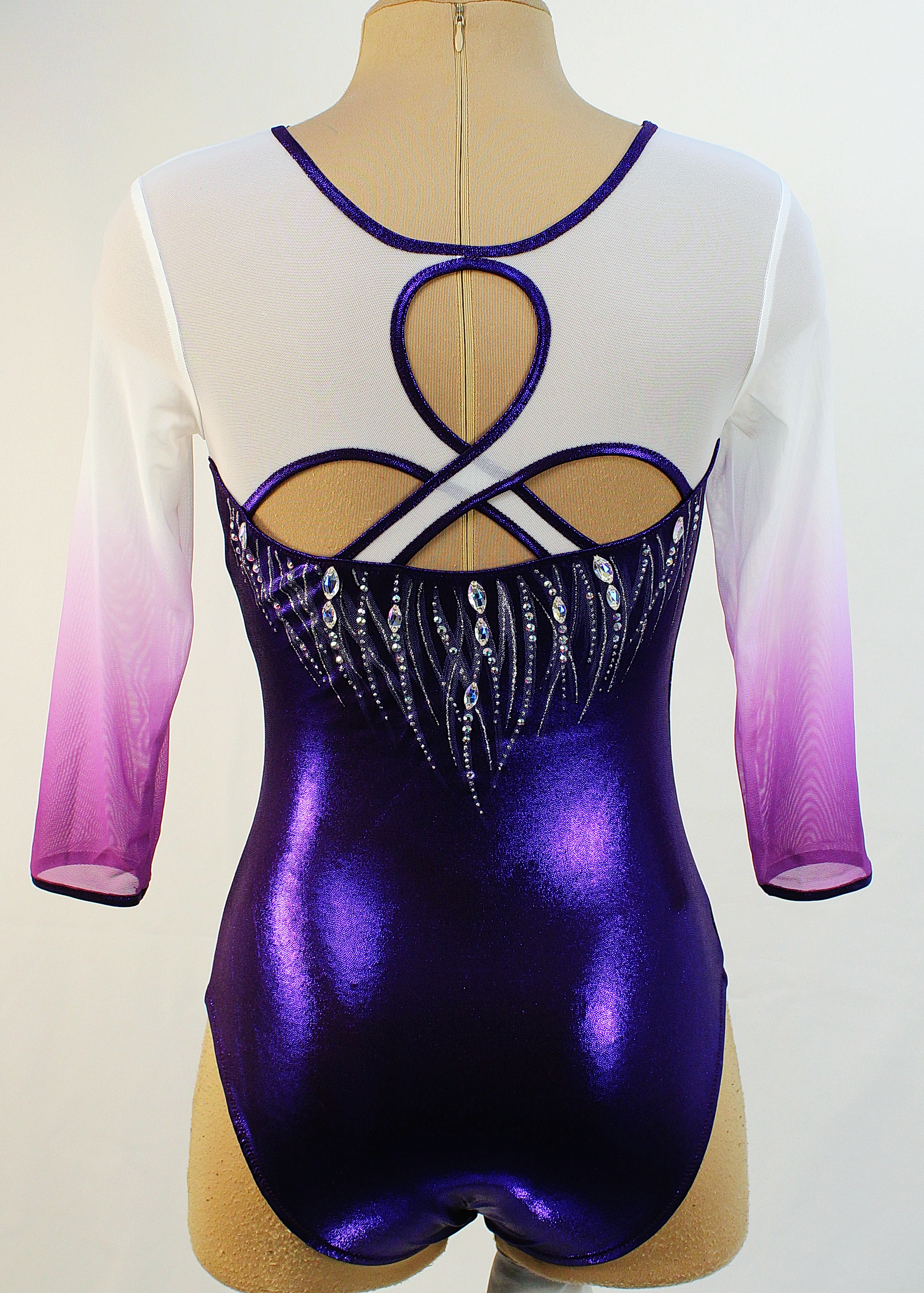 The leotard is decorated with 500 pieces. glue and 19 pcs. large sewn rhinestones.
