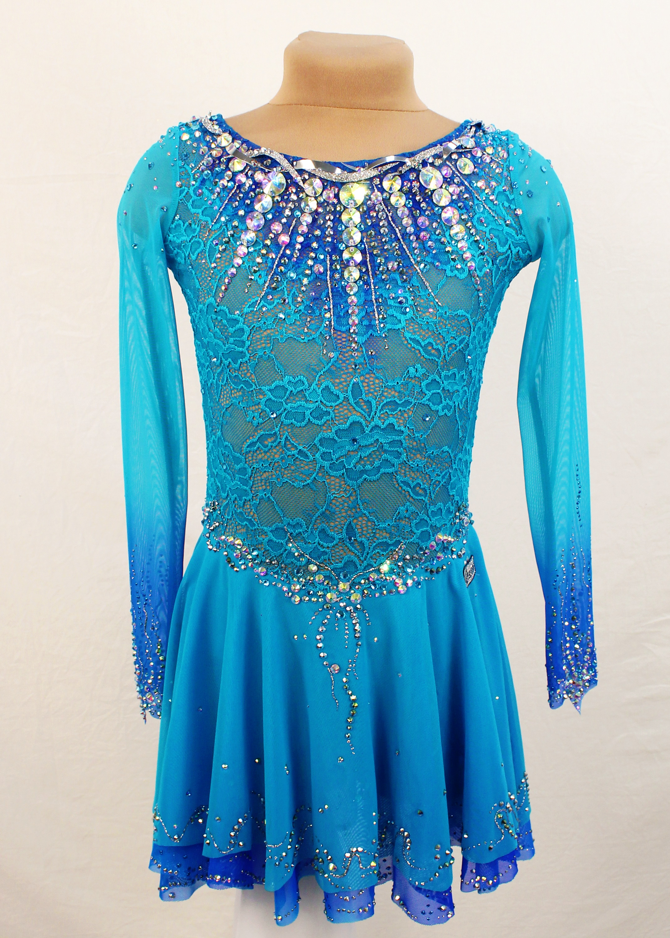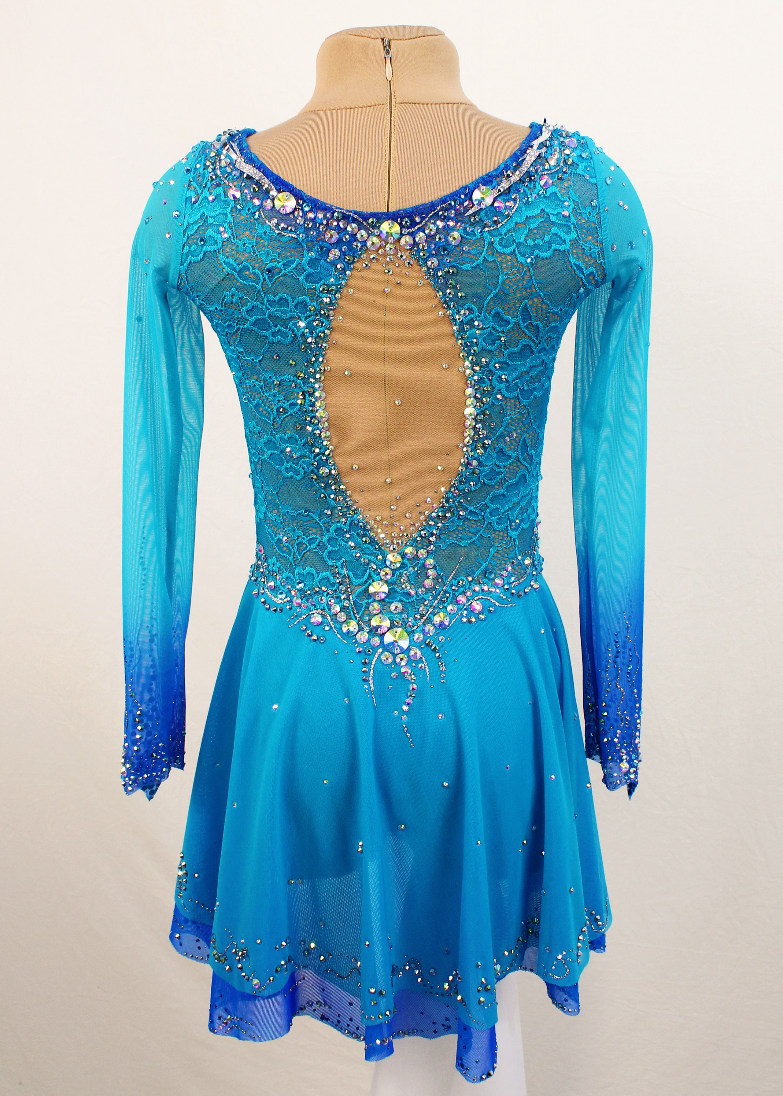 The leotard uses rhinestones 2020 glue and 30 large sewn rhinestones.