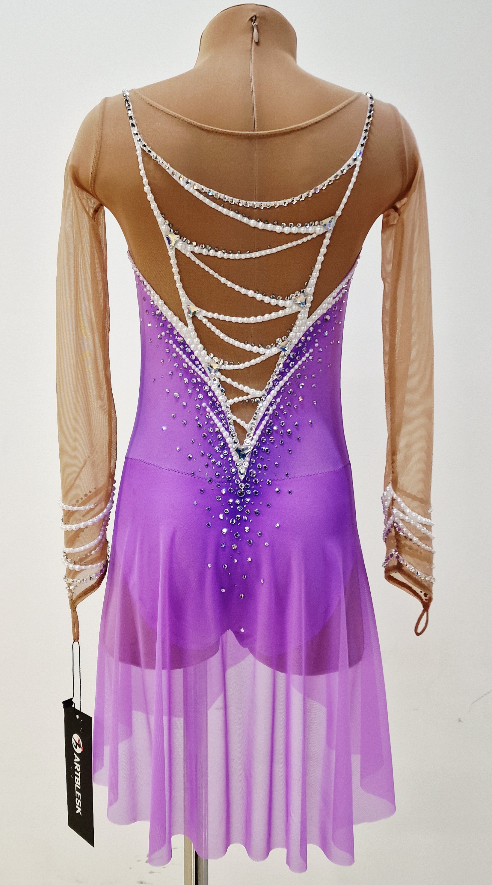 1,130 adhesive and 17 large sewn rhinestones were Pre-owned on the leotard.