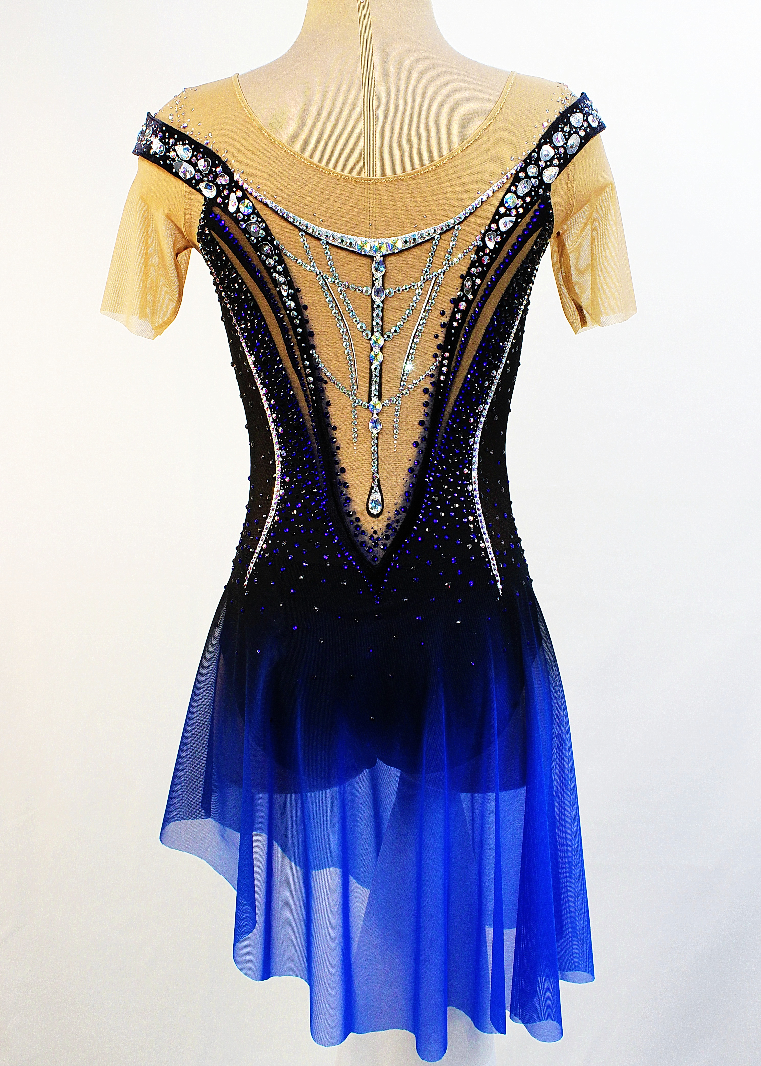 The leotard uses 2,860 adhesive and 21 large sewn rhinestones.