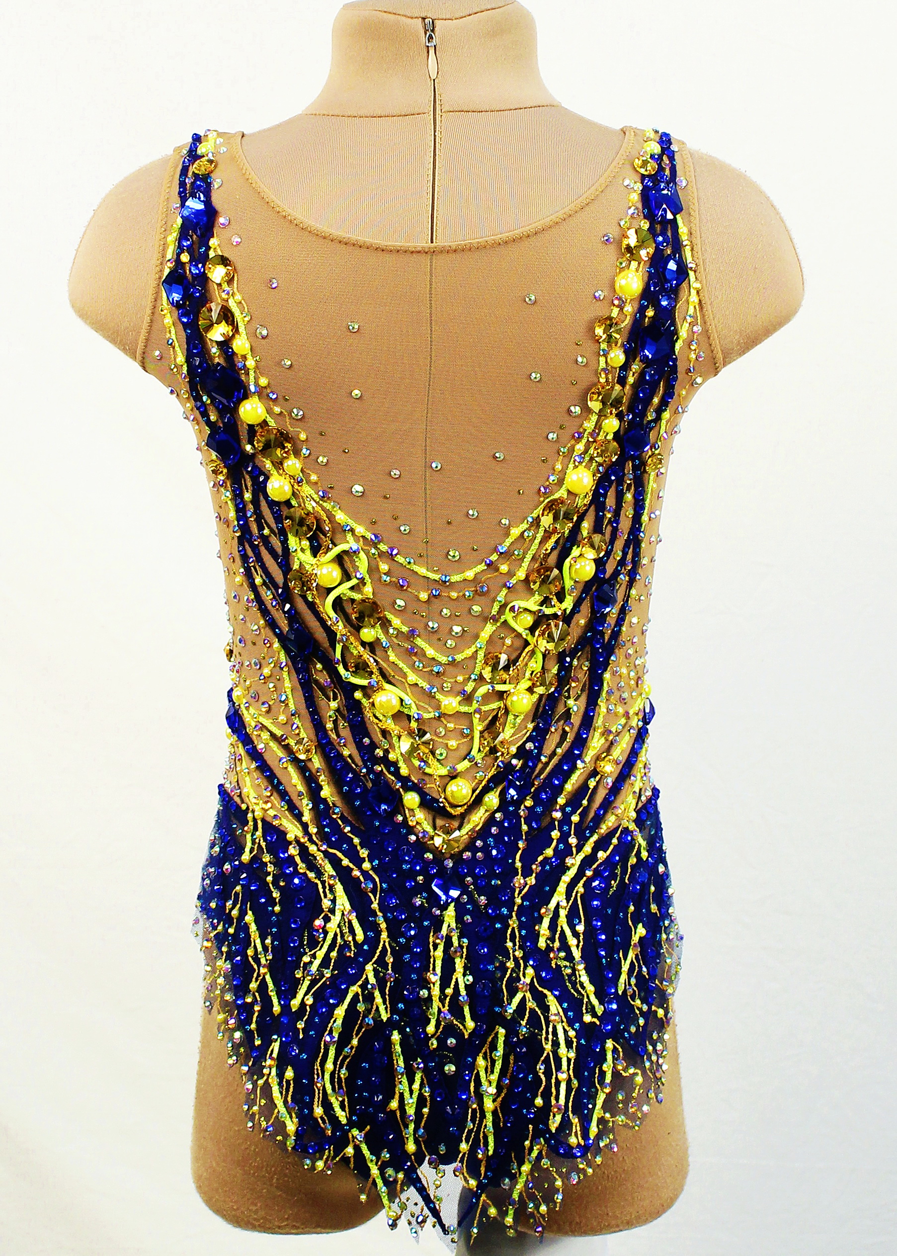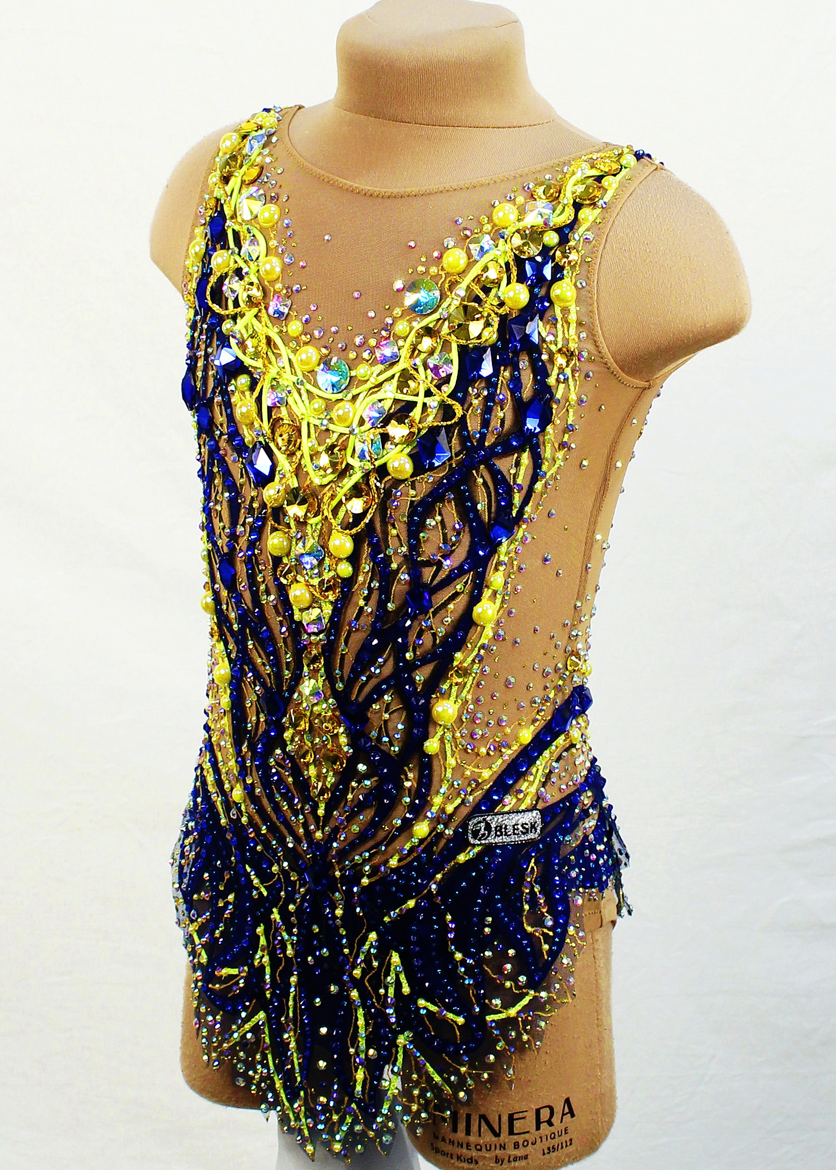 2240 glue pieces, 111 large sewn rhinestones and 470 pearls were Pre-owned on the leotard.