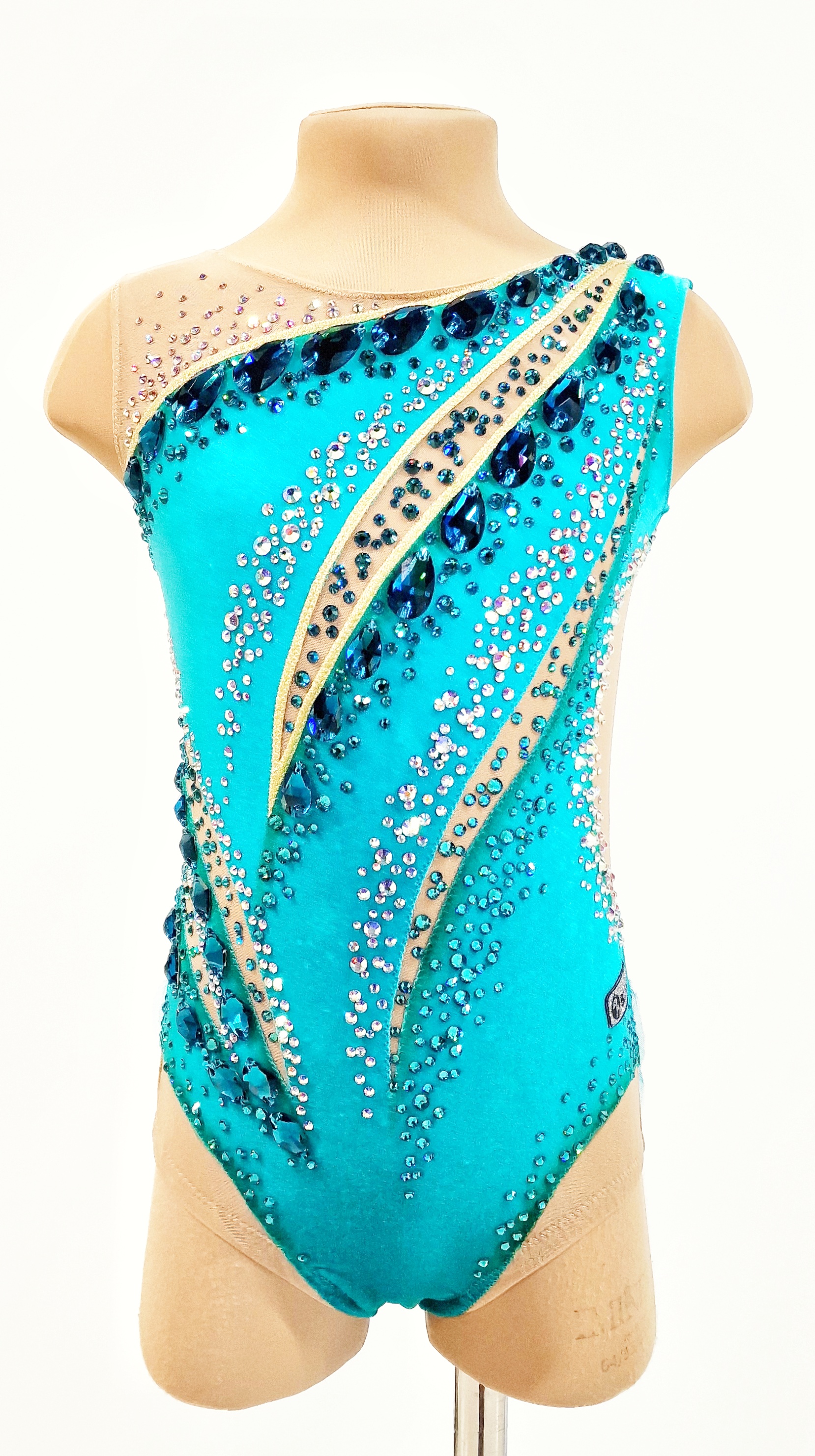 2,700 adhesive and 58 large sewn rhinestones were Pre-owned on the leotard.