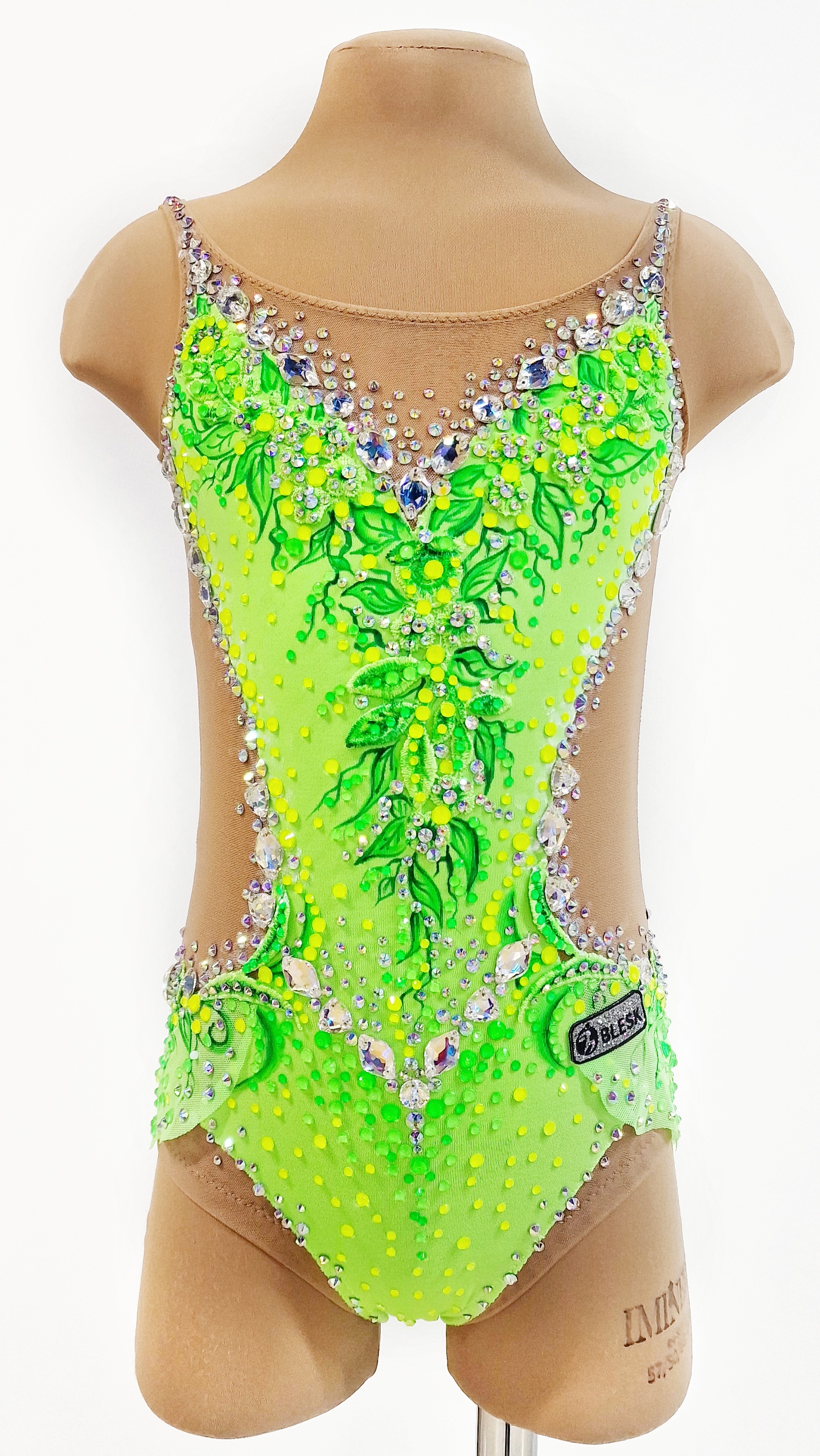 2250 adhesive and 50 large sewn rhinestones were Pre-owned on the leotard.