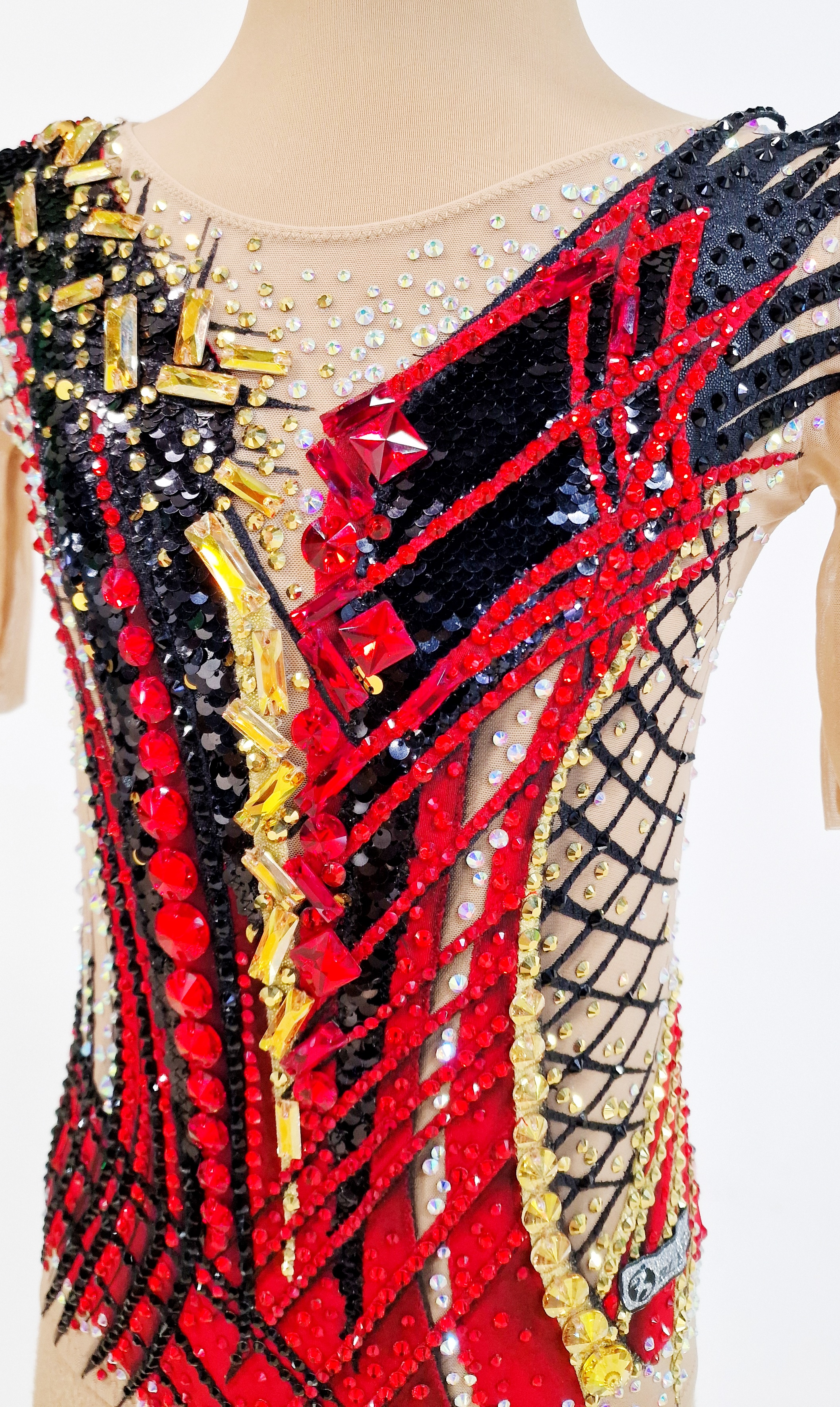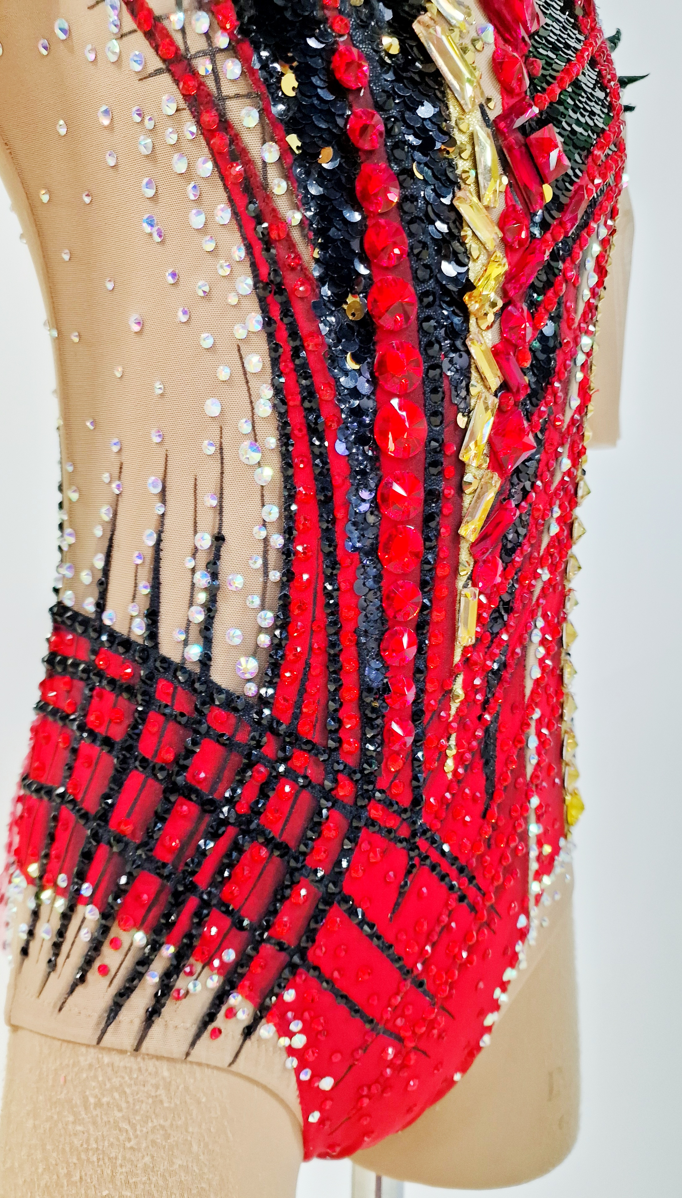 4210 adhesive and 90 large sewn rhinestones were Pre-owned on the leotard.