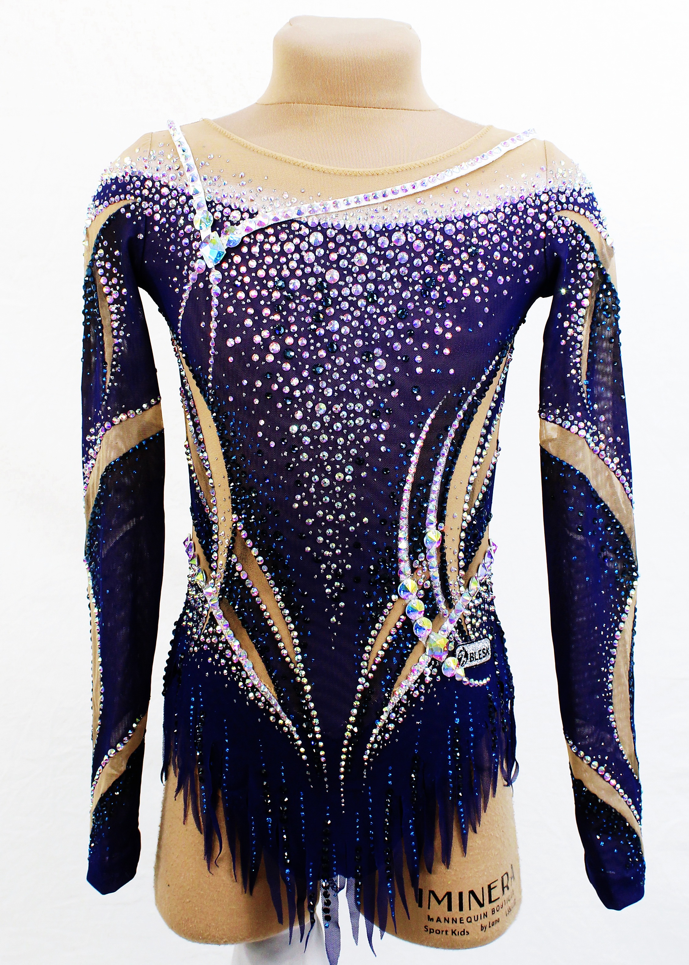 4,530 adhesive and 25 large sewn rhinestones were Pre-owned on the leotard.
