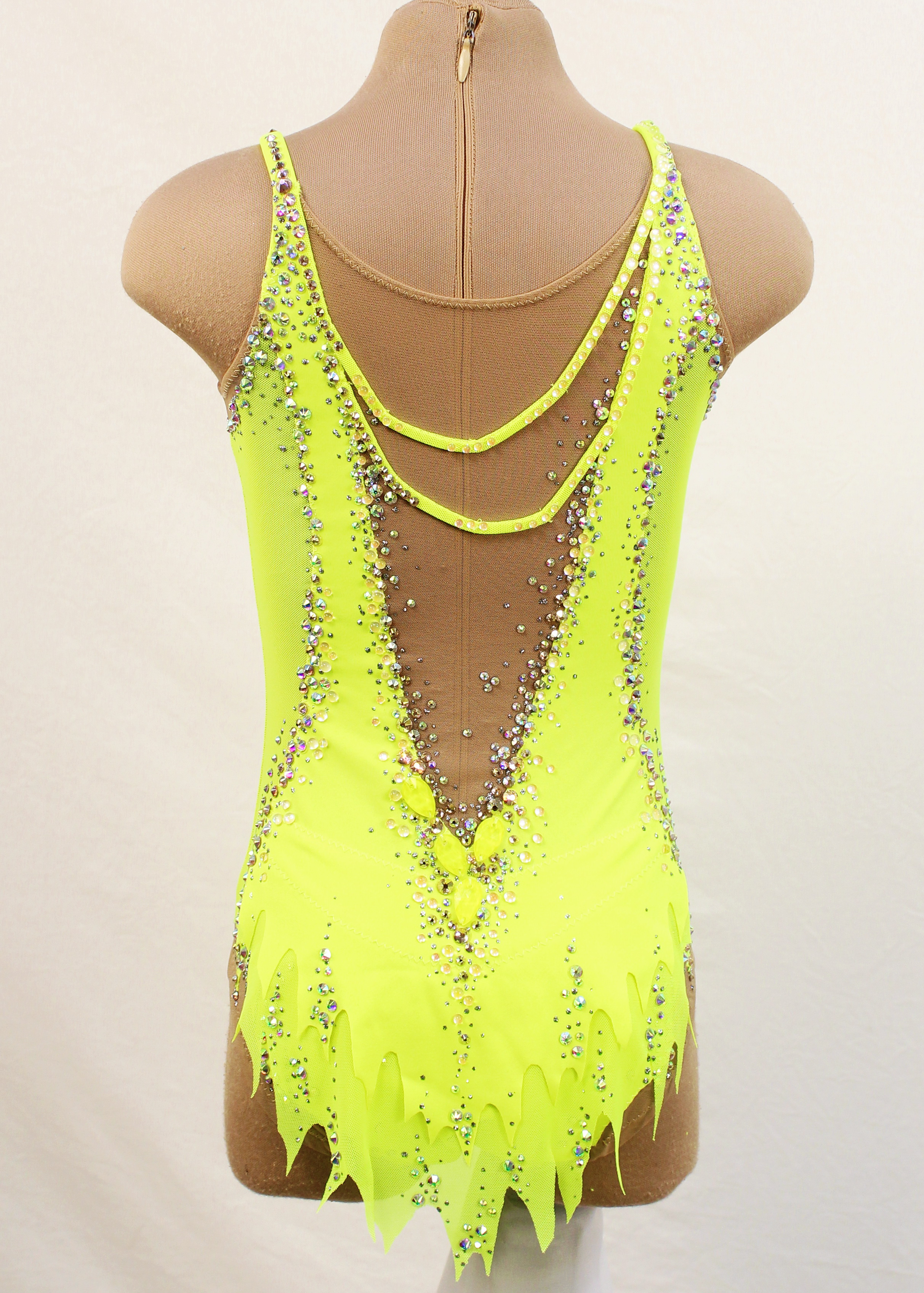 1,350 adhesive and 15 large sewn rhinestones were Pre-owned on the leotard.