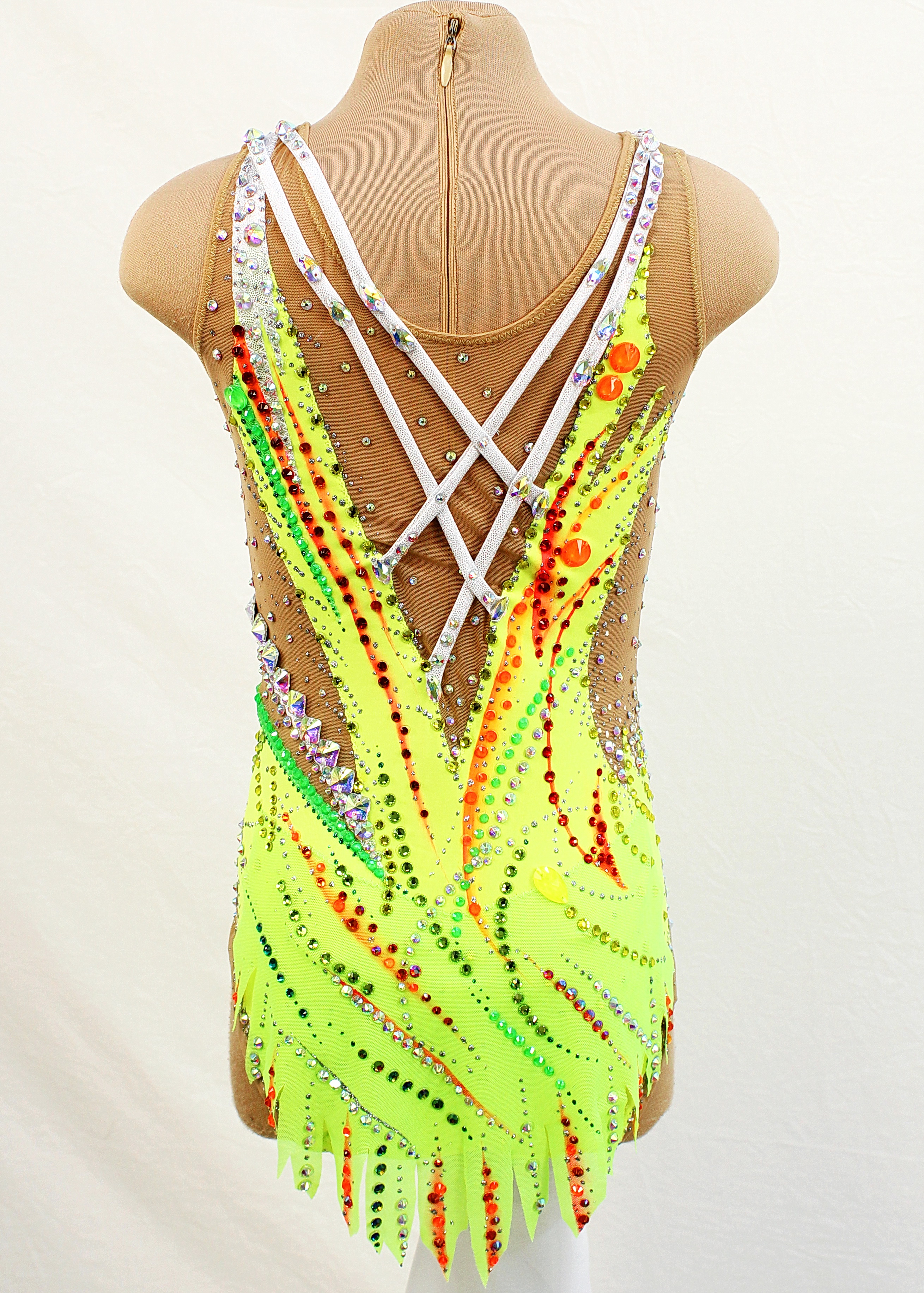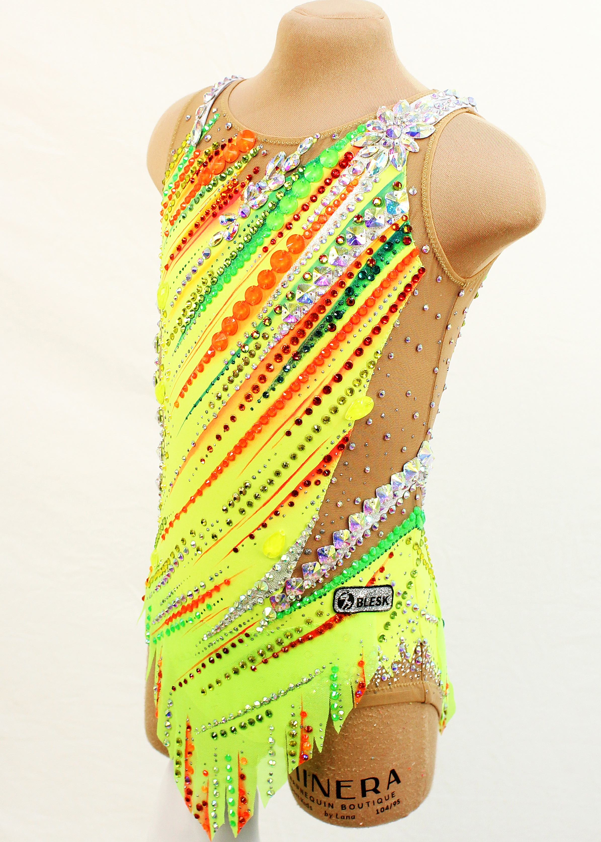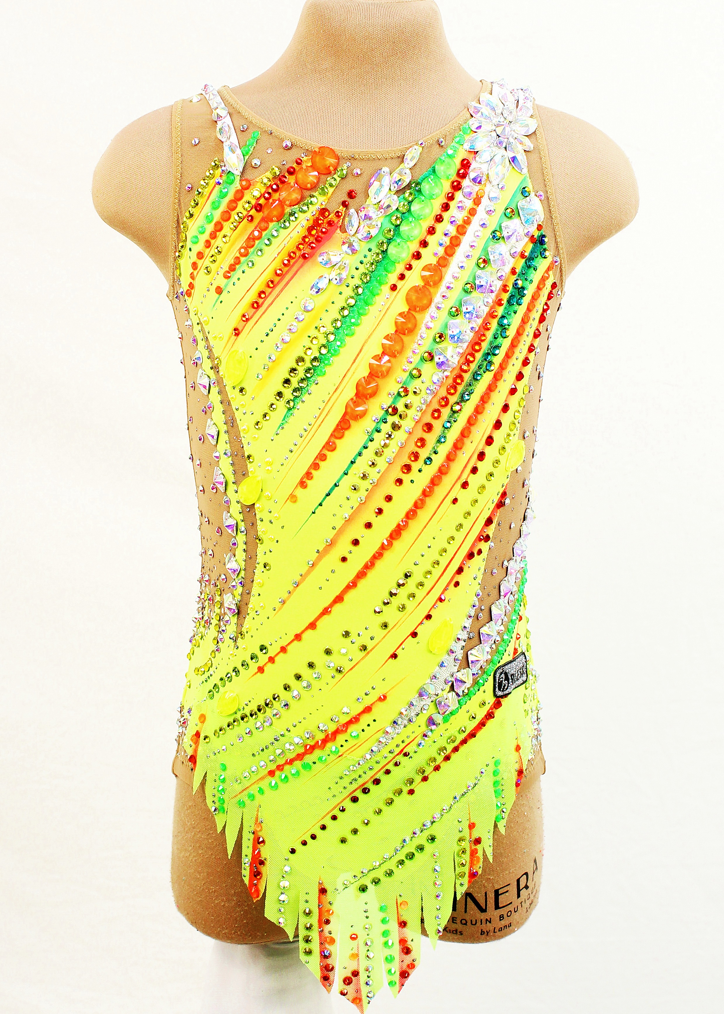 1,547 adhesive and 98 large sewn rhinestones were Pre-owned on the leotard.