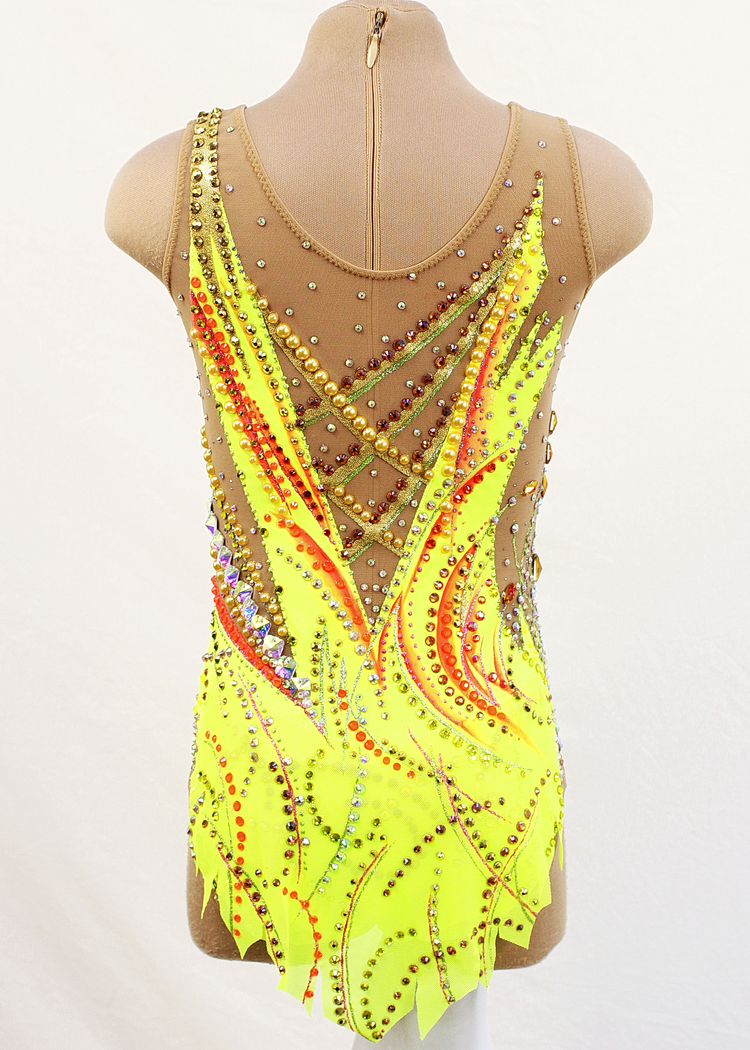 1,805 adhesive, 72 large sewn rhinestones and 200 pearls were Pre-owned on the leotard.