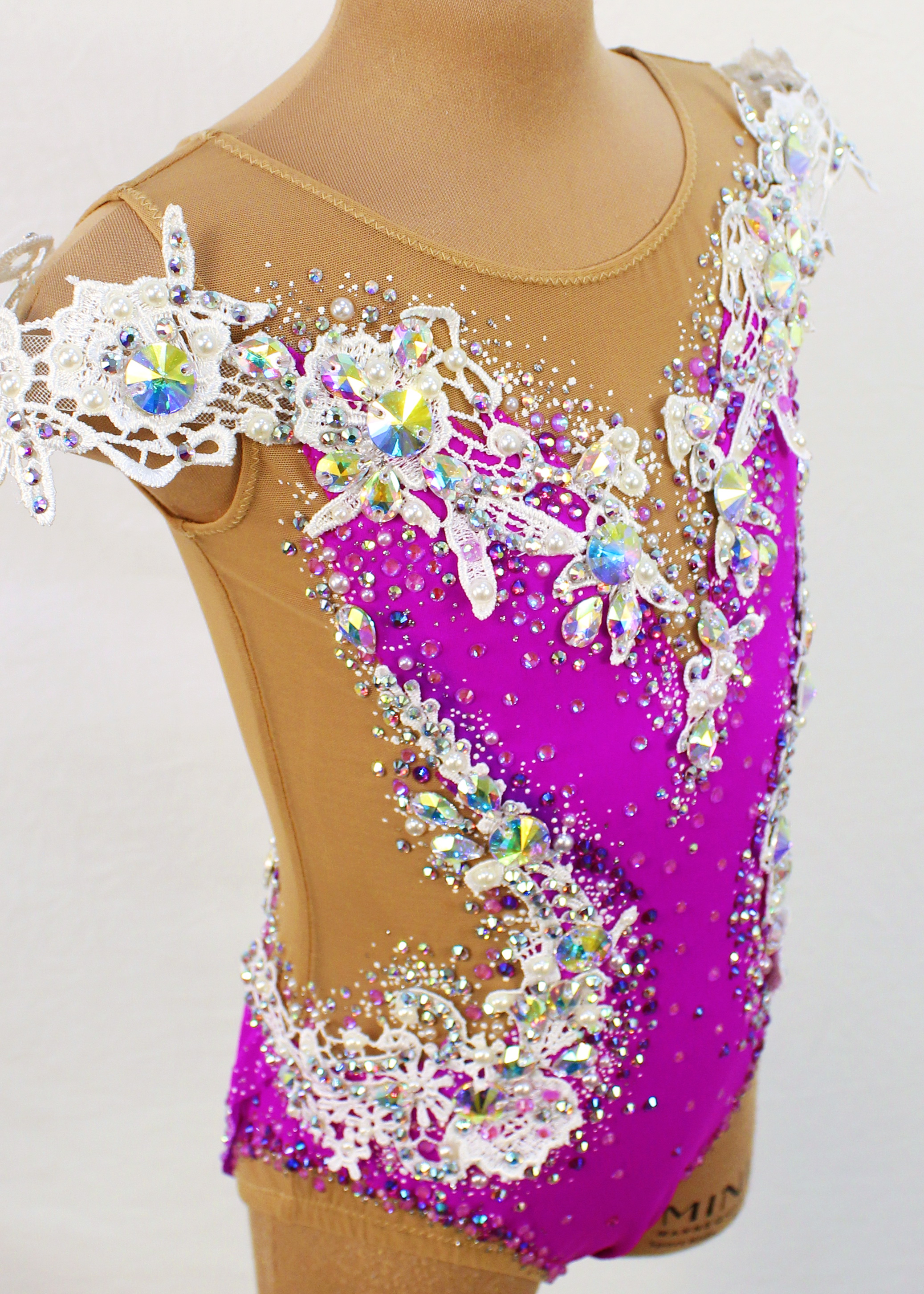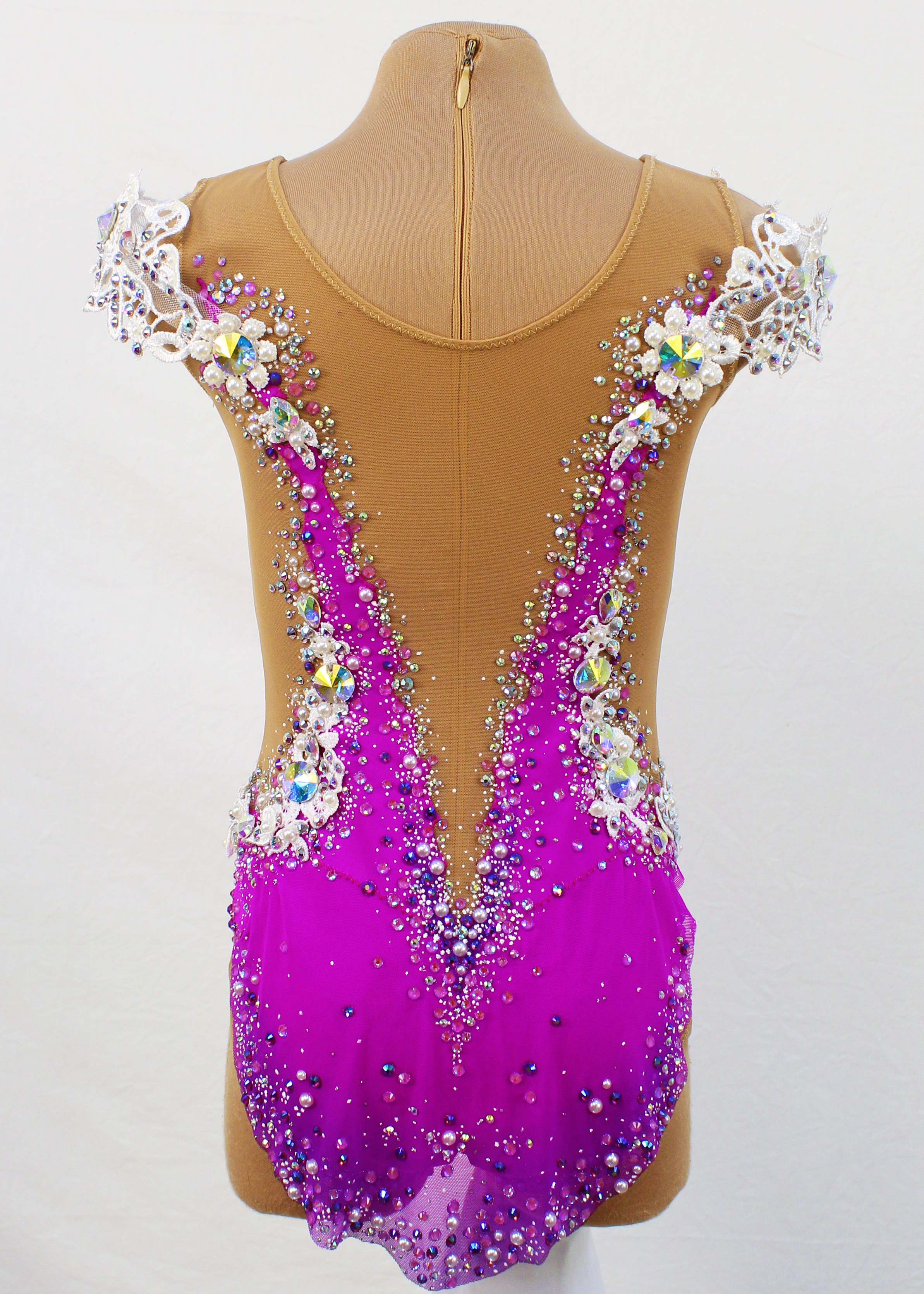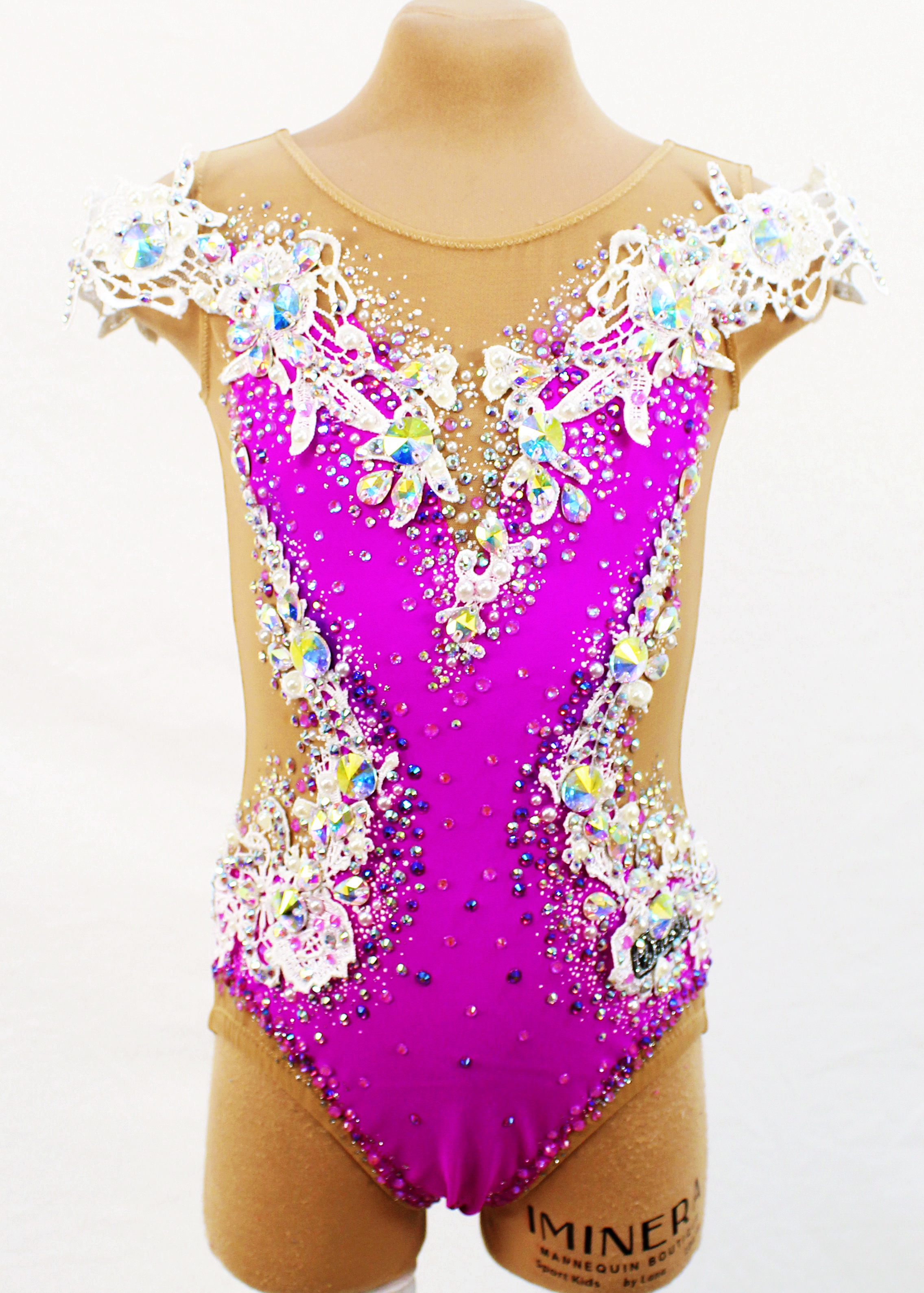 2,133 adhesive, 70 large sewn rhinestones and 283 pearls were Pre-owned on the leotard.