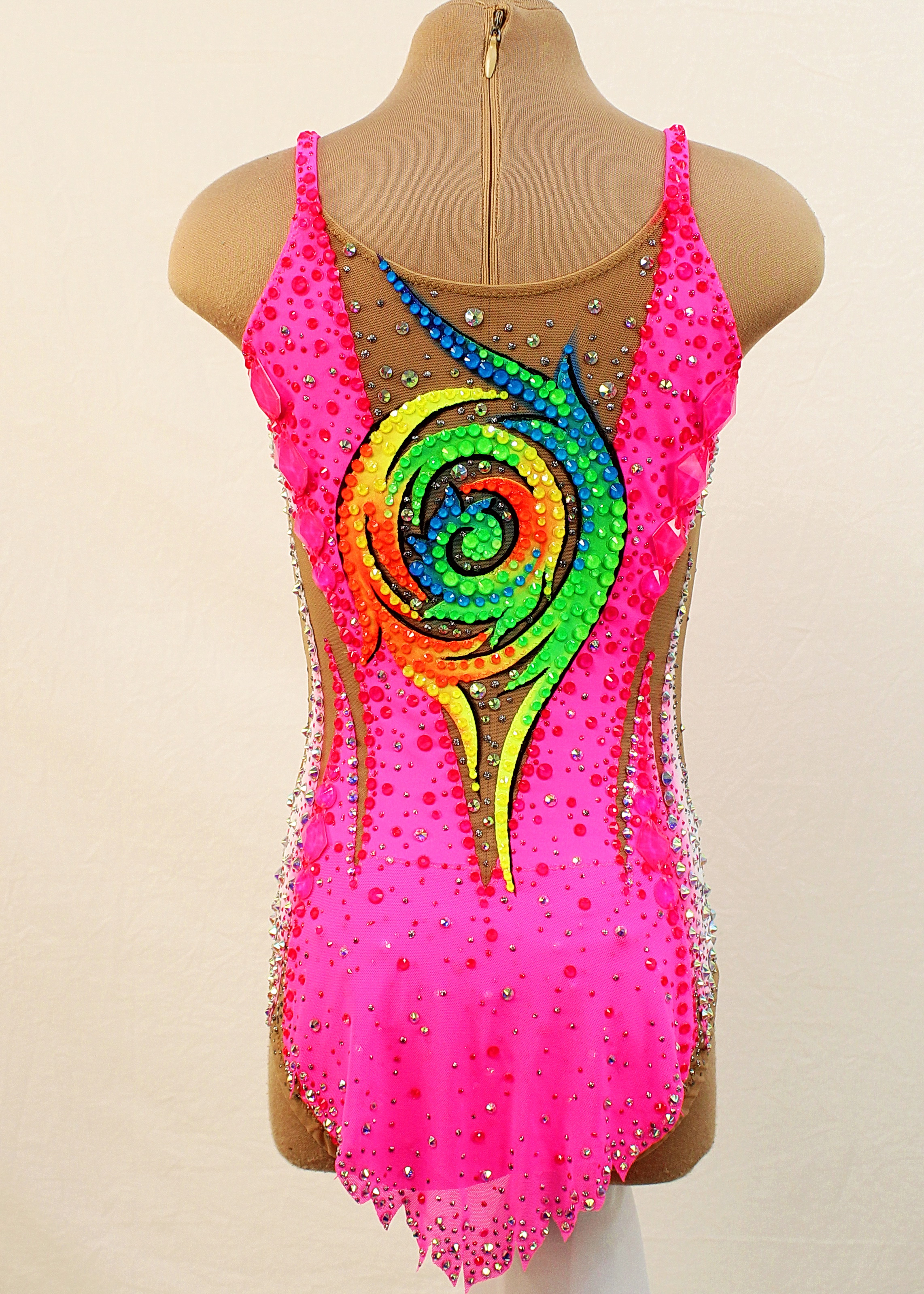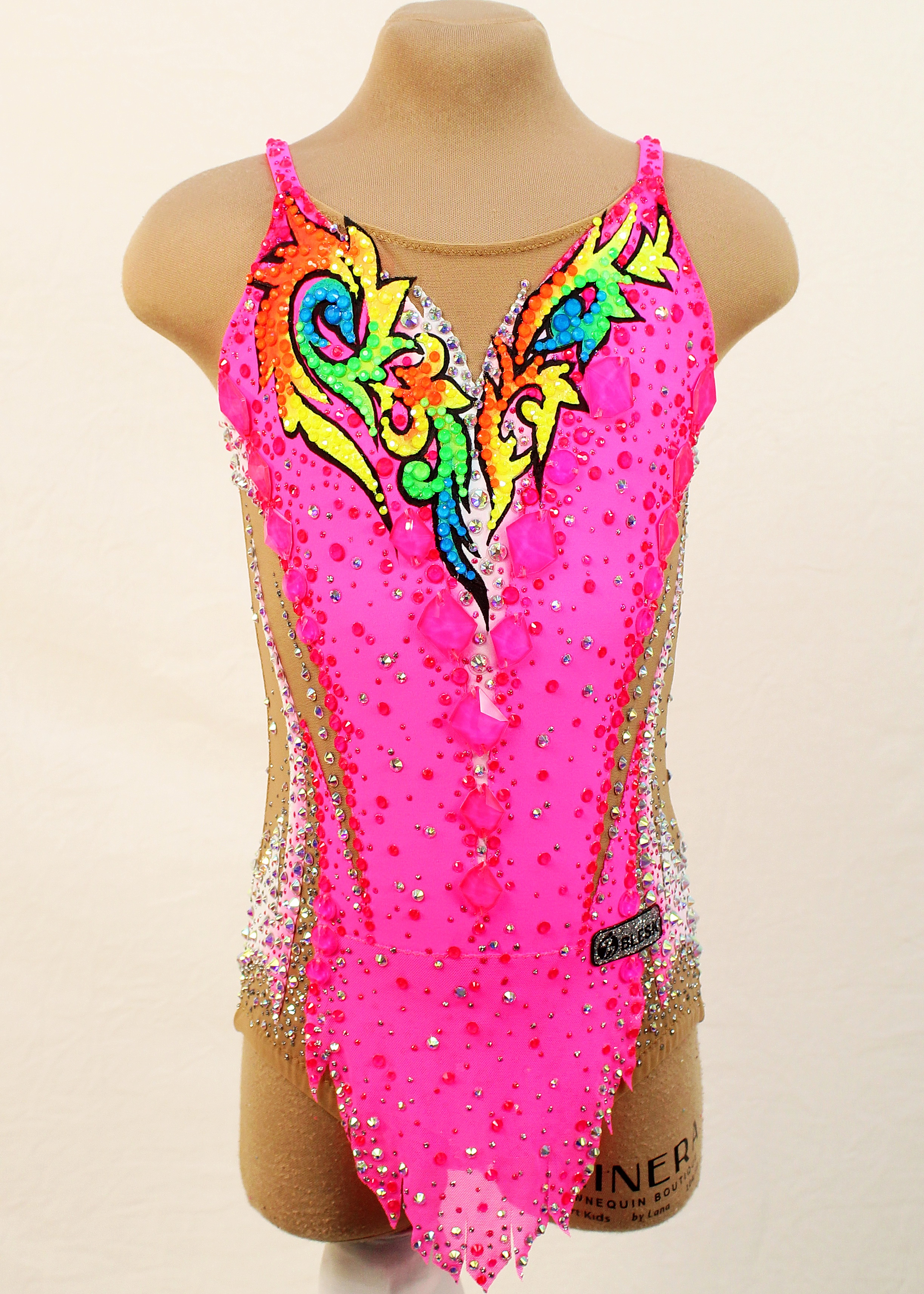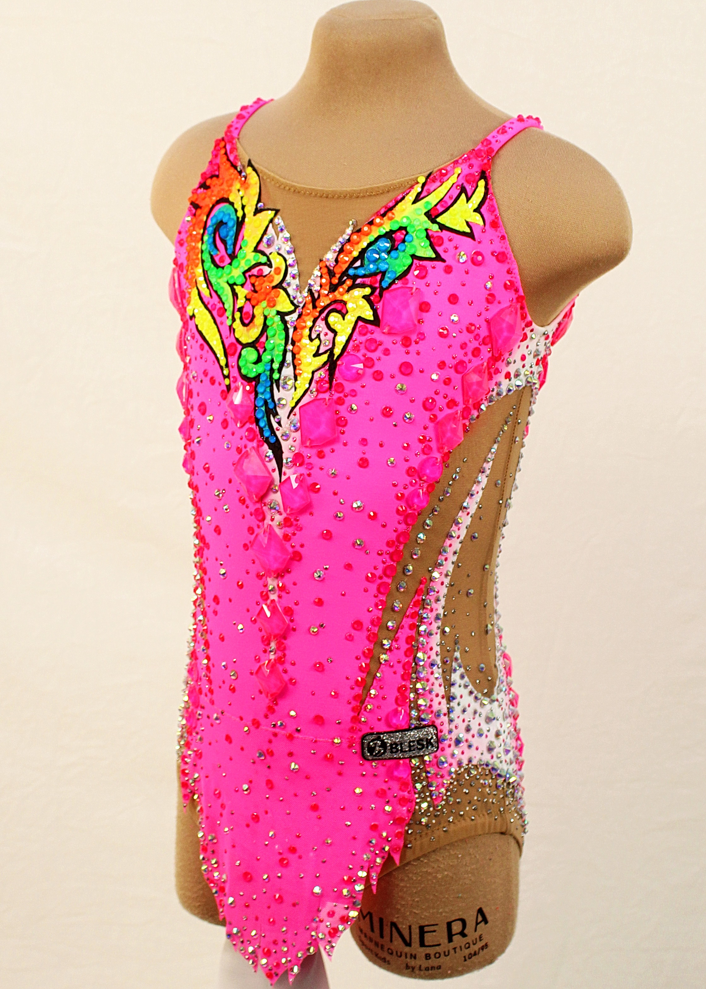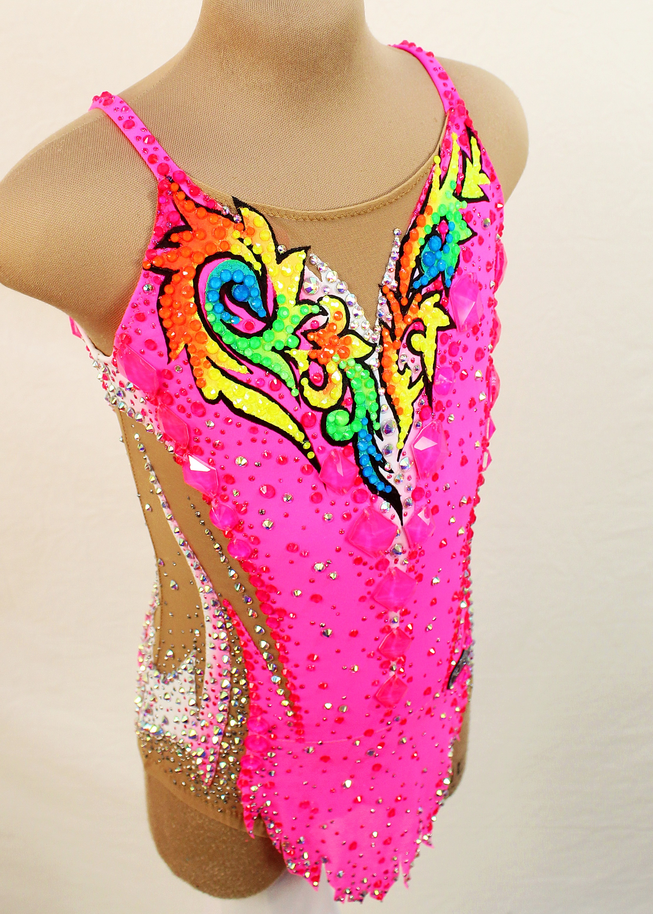 1,840 adhesive and 38 large sewn rhinestones were Pre-owned on the leotard.