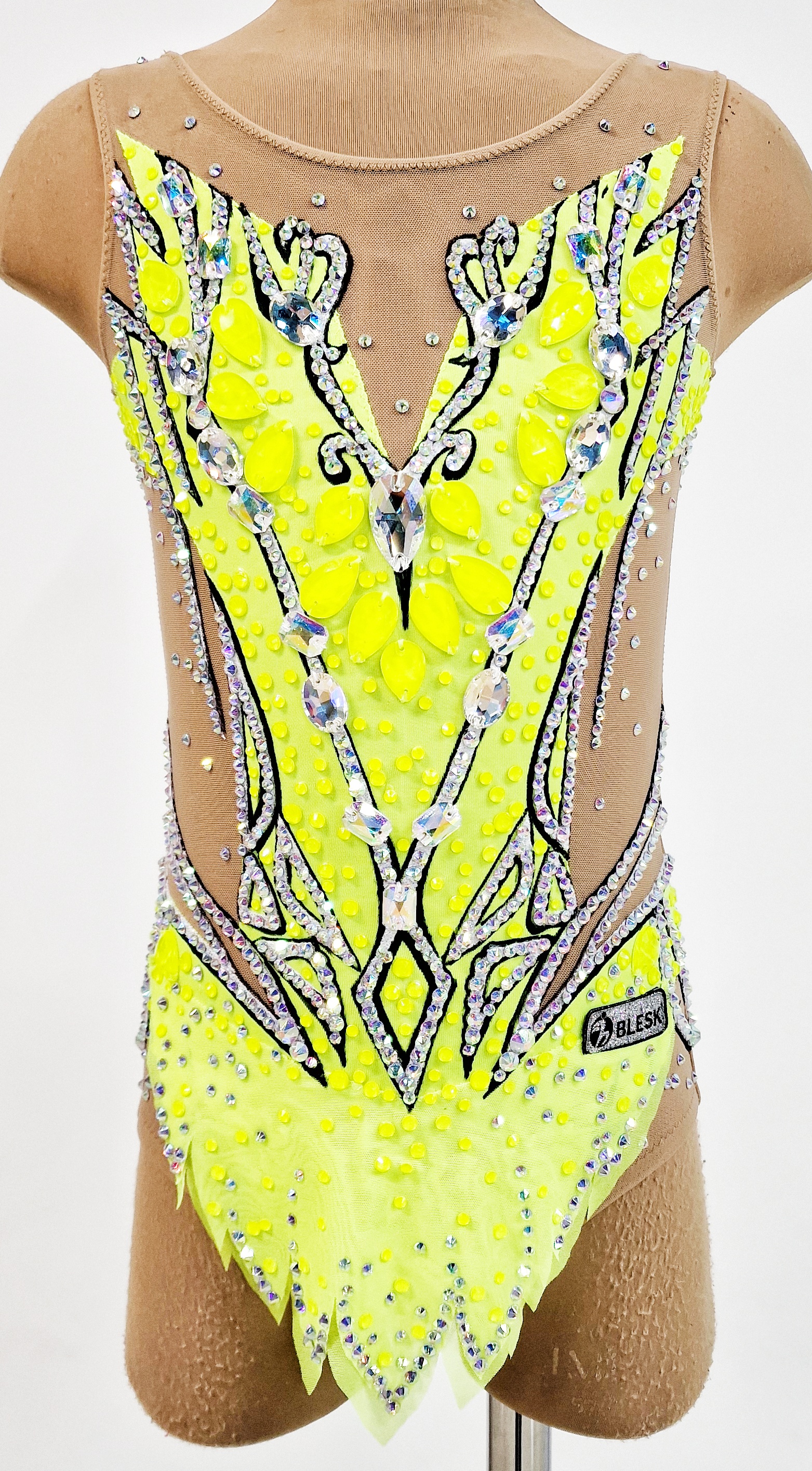 2105 adhesive and 55 large sewn rhinestones were Pre-owned on the leotard.