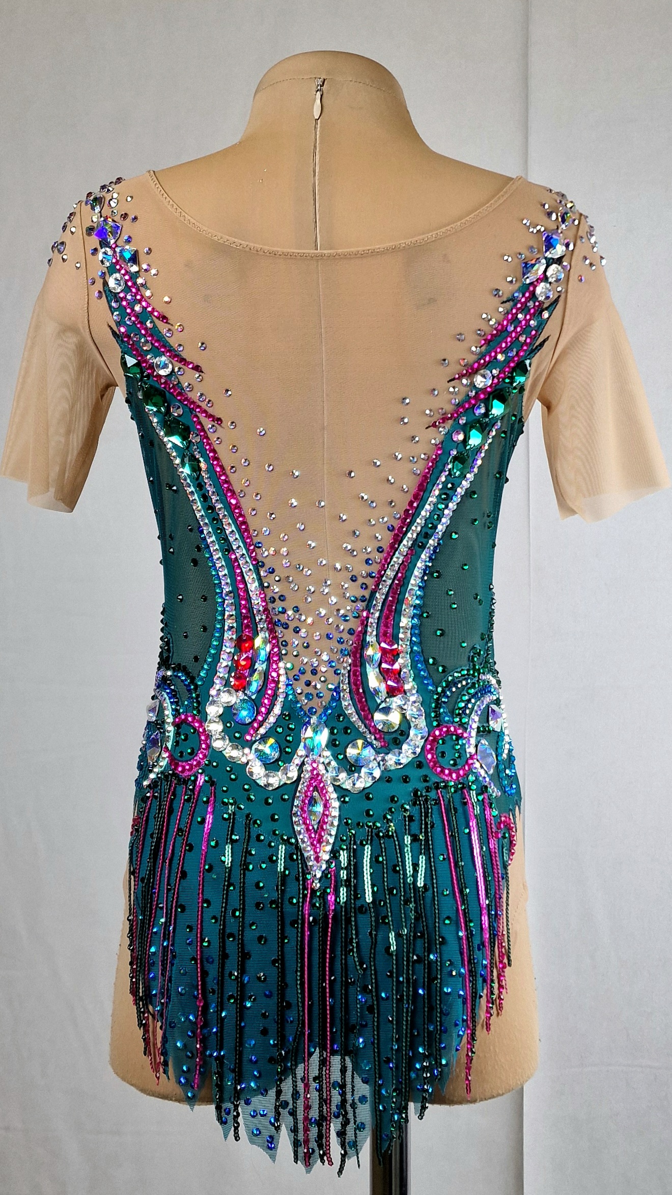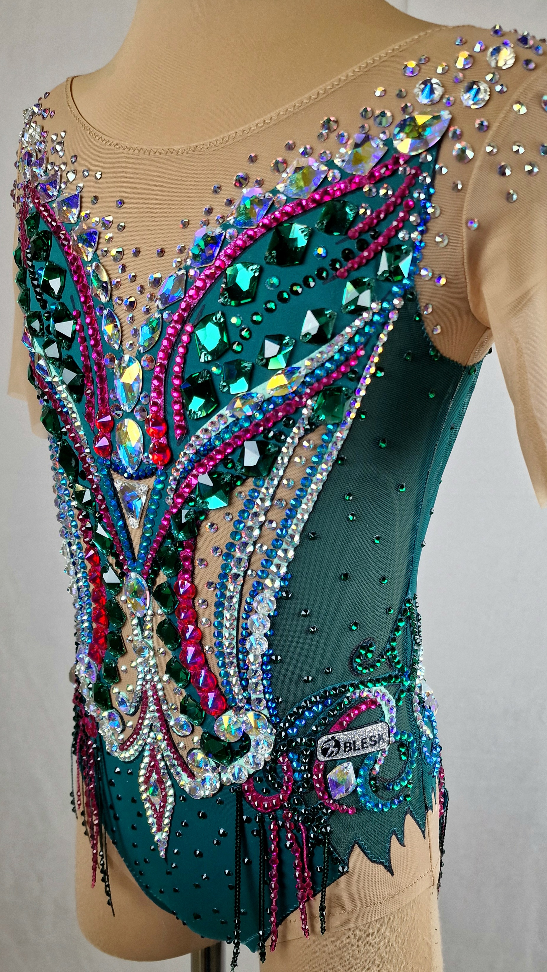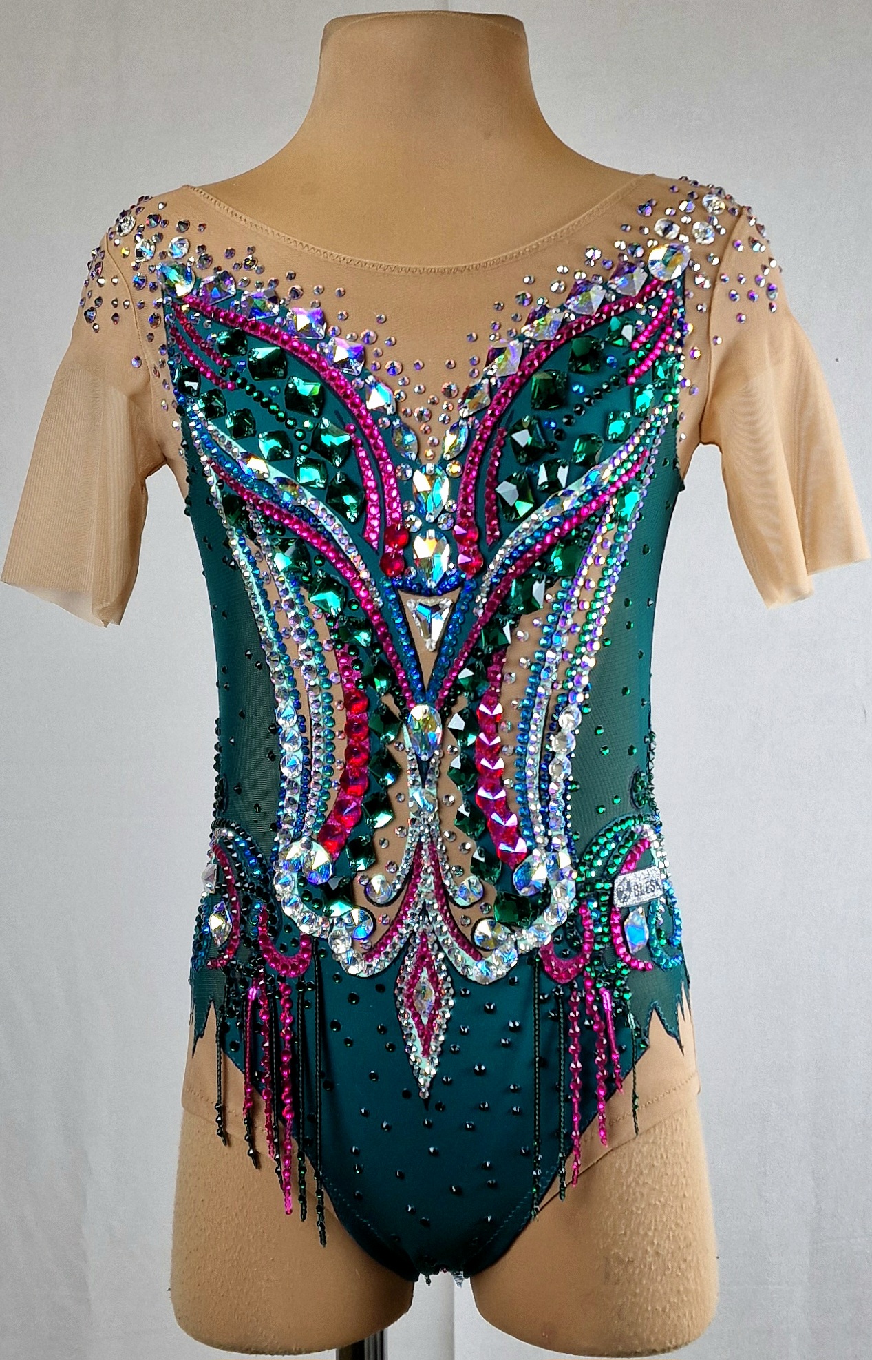 3,700 adhesive and 186 large sewn rhinestones were Pre-owned on the leotard.