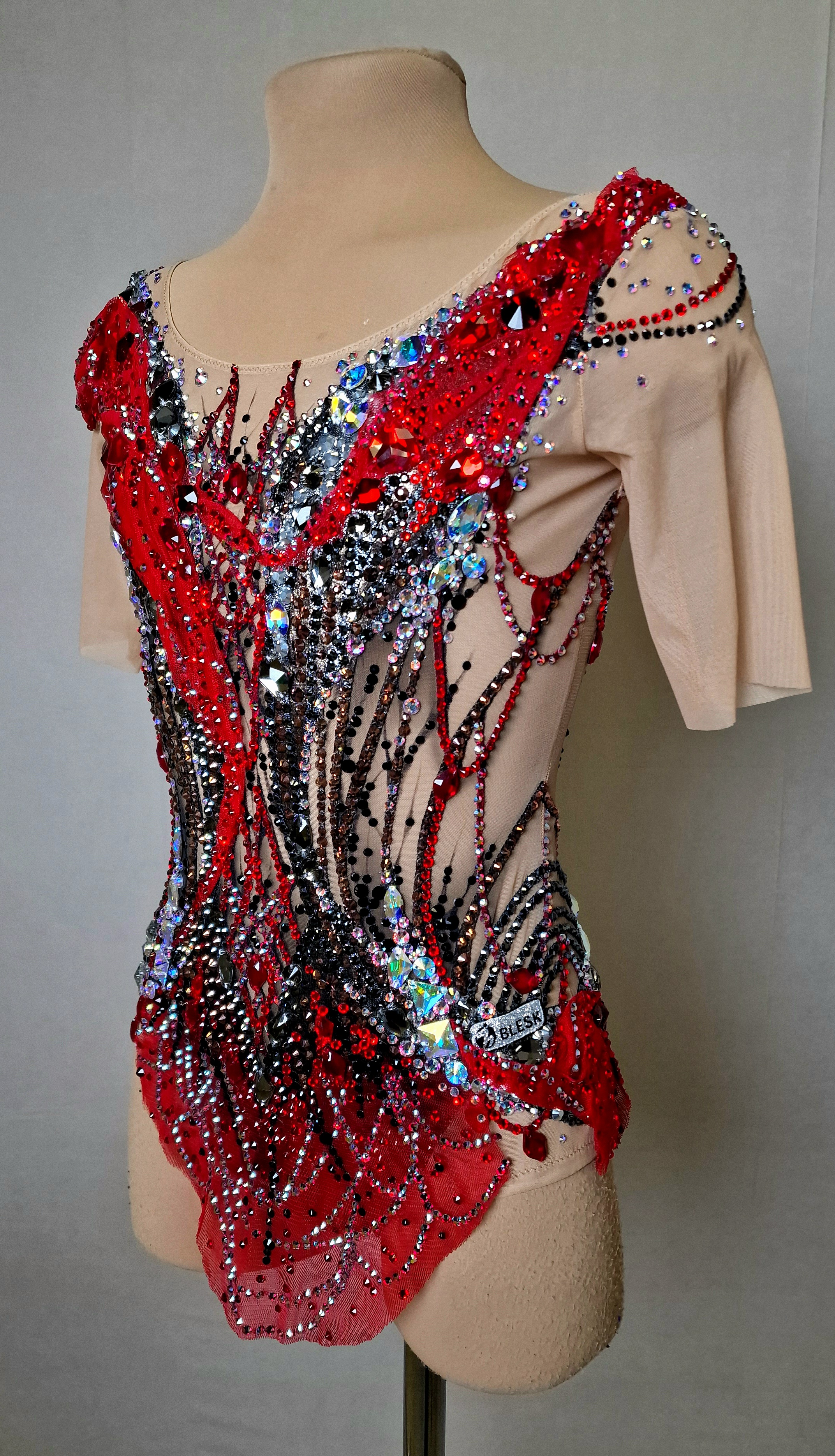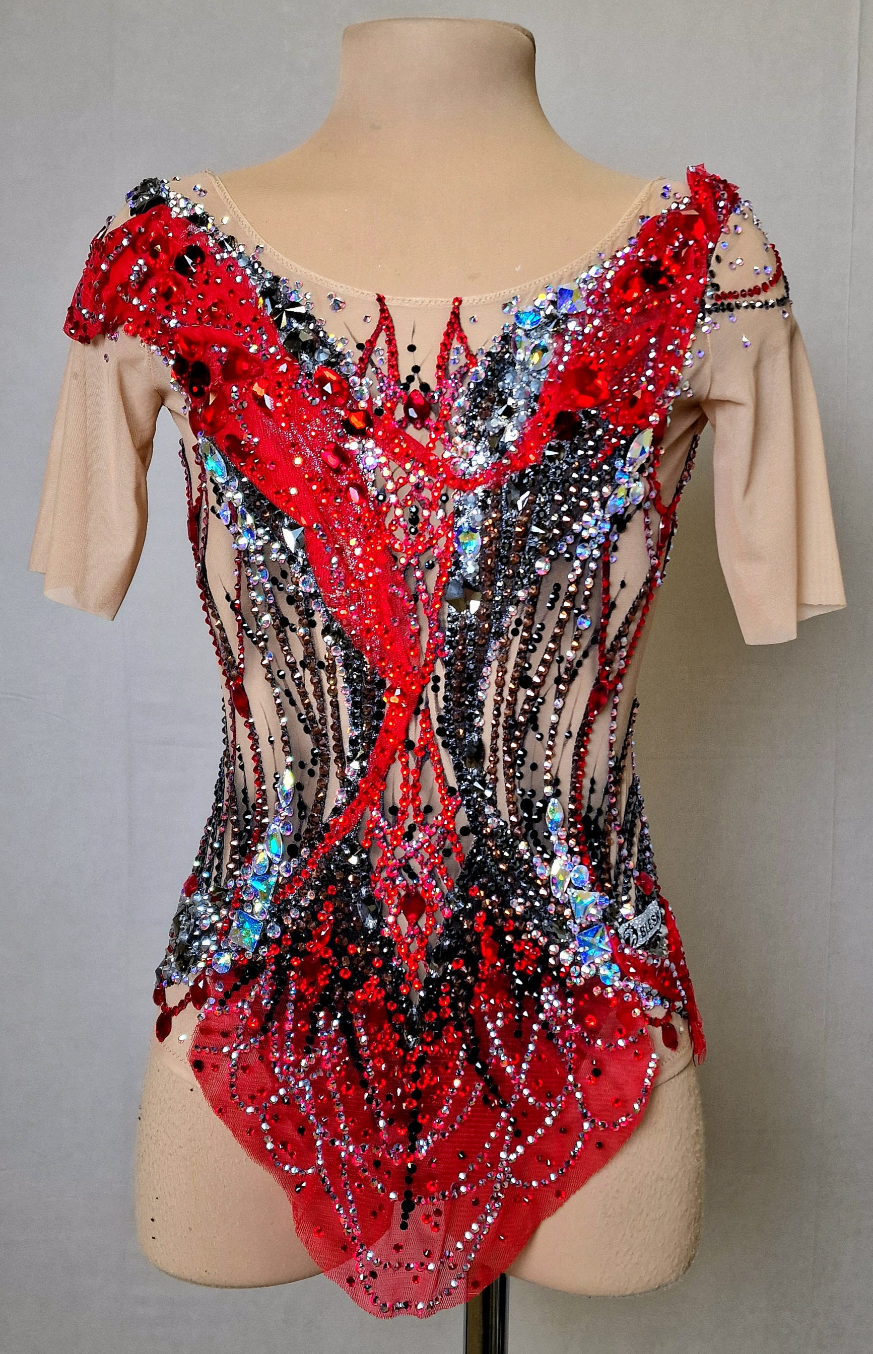 5865 glue and 193 large sewn rhinestones were Pre-owned on the leotard.