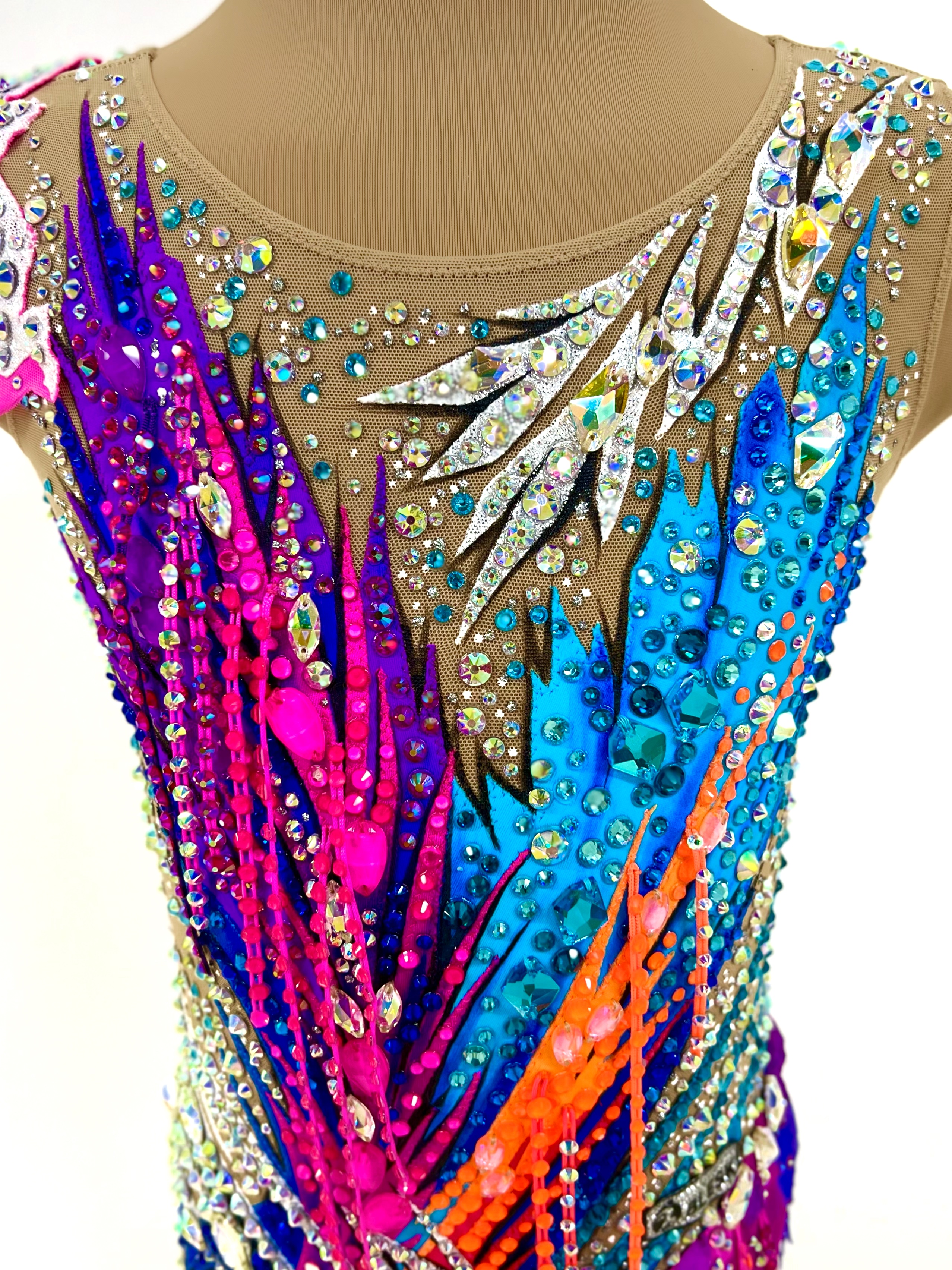 3,470 adhesive and 84 large sewn rhinestones were Pre-owned on the leotard.