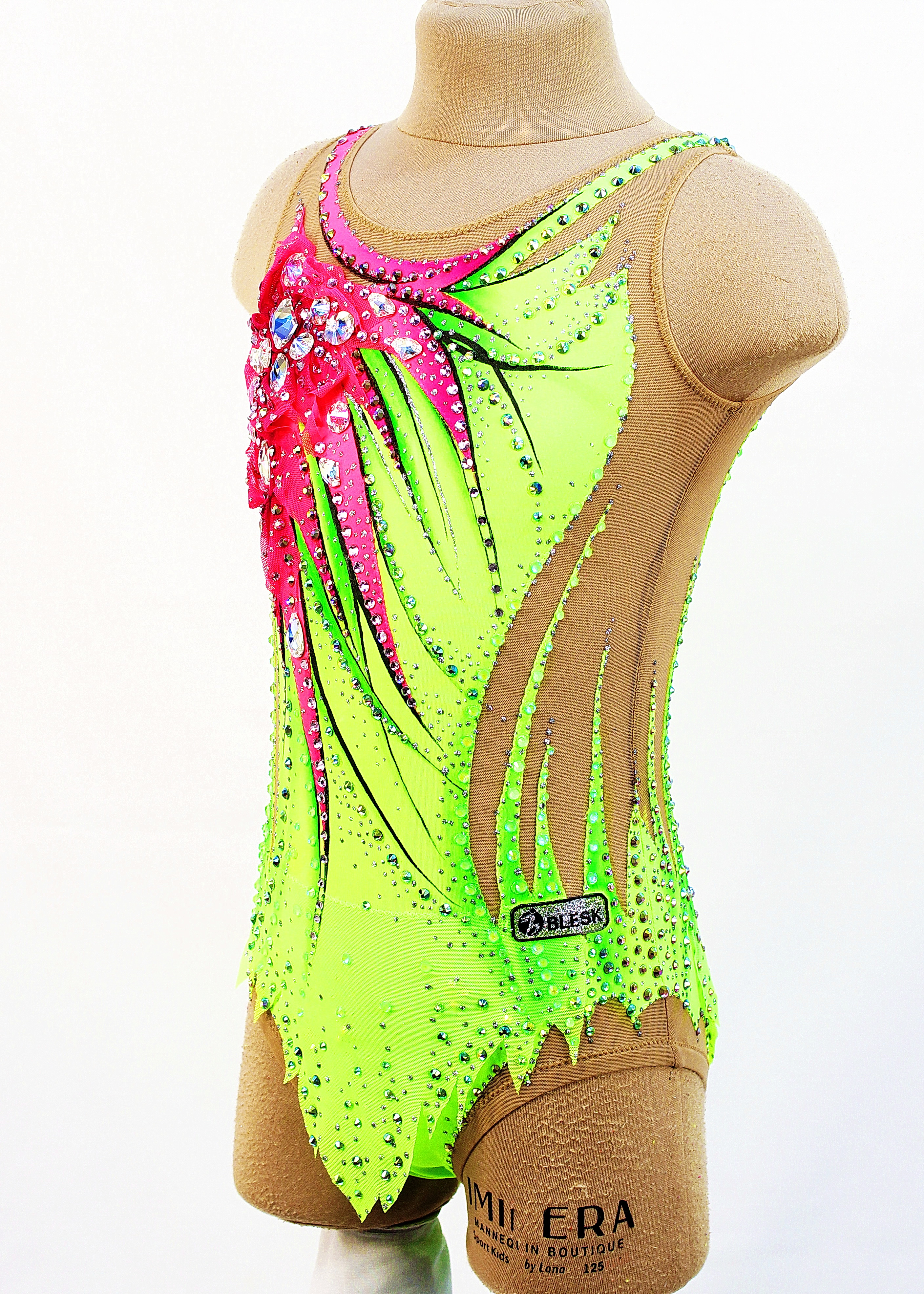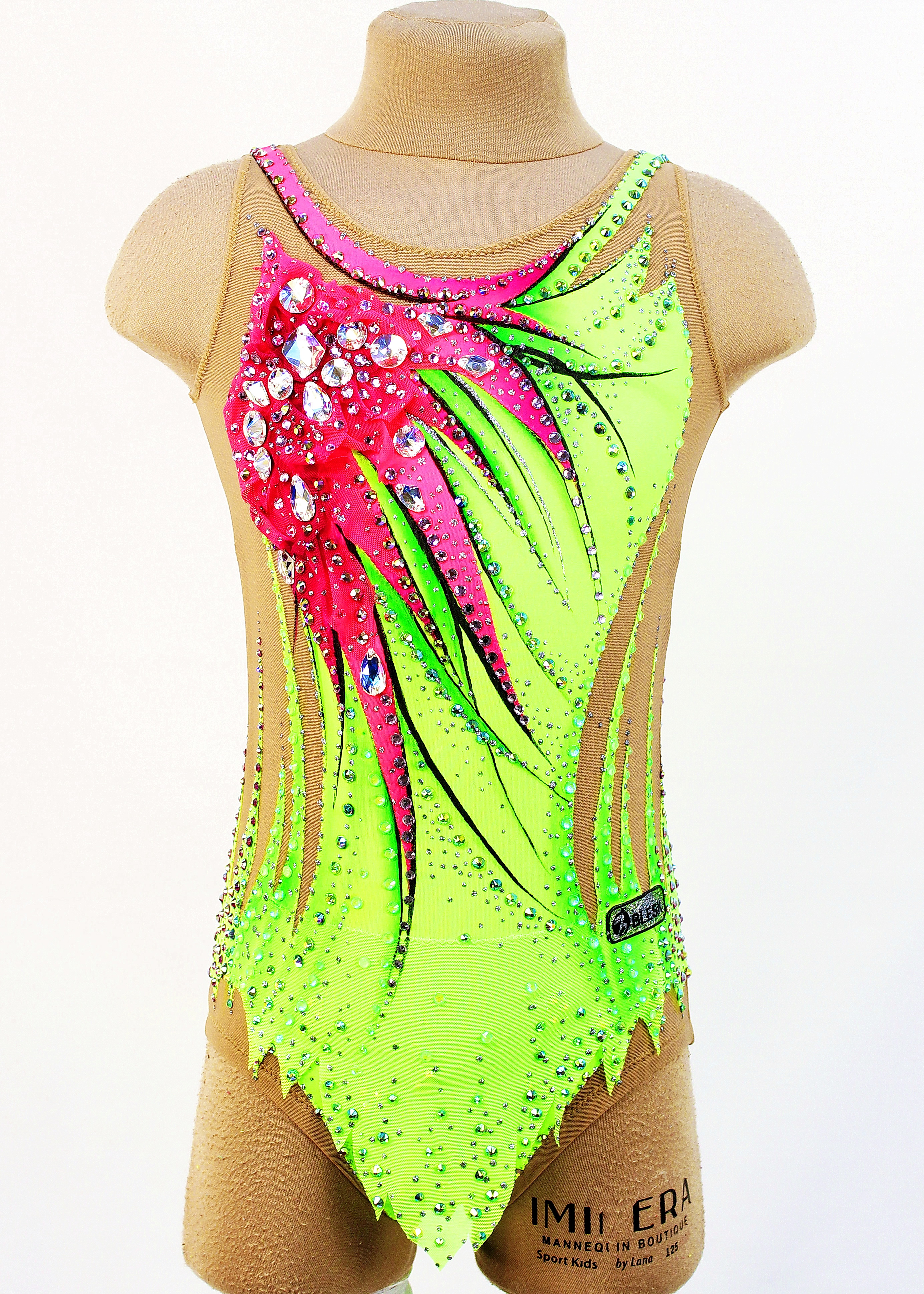 1250 glue and 17 large sewn rhinestones were Pre-owned on the leotard.