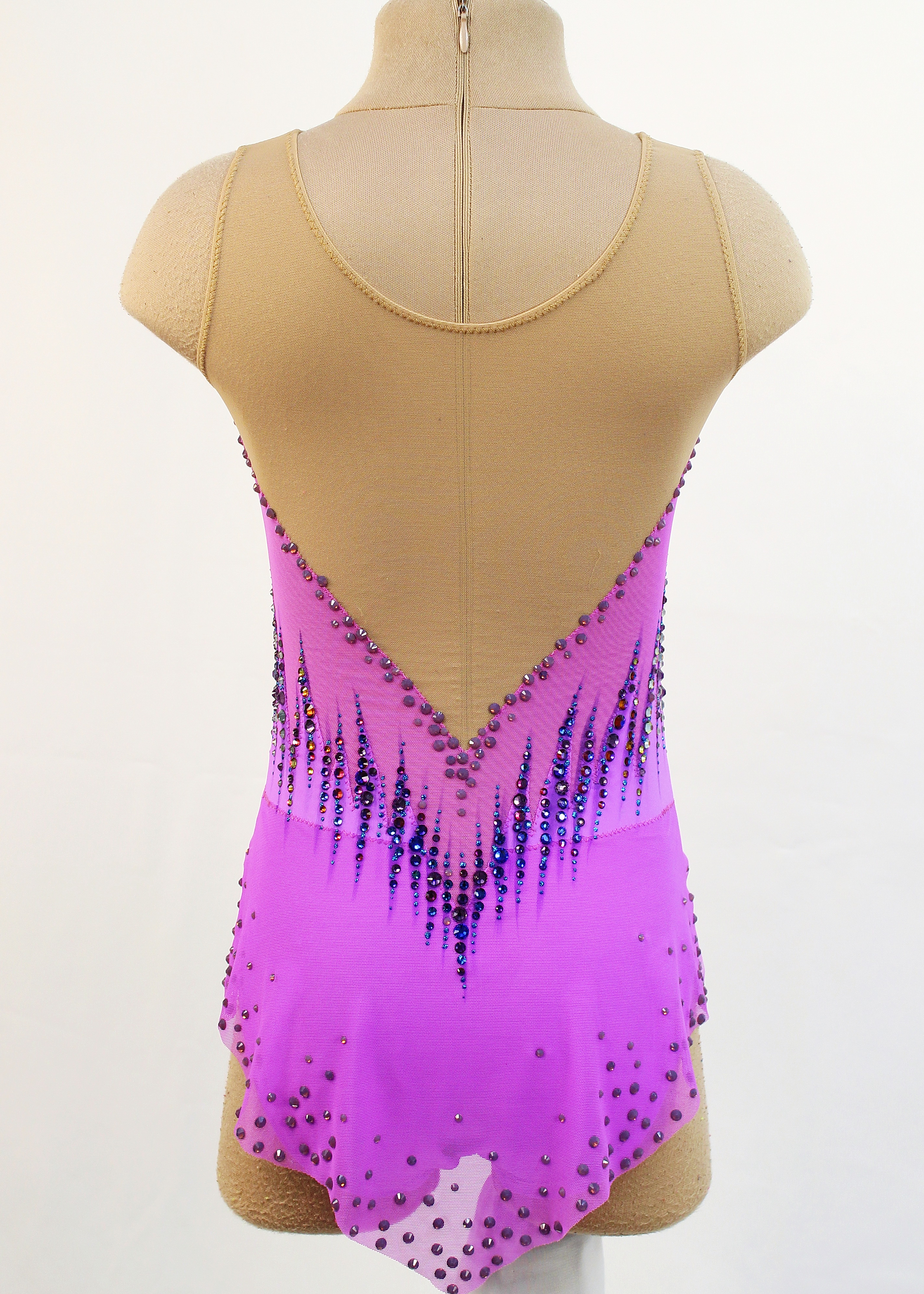 The leotard uses 980 adhesive rhinestones and 11 large sewn rhinestones.