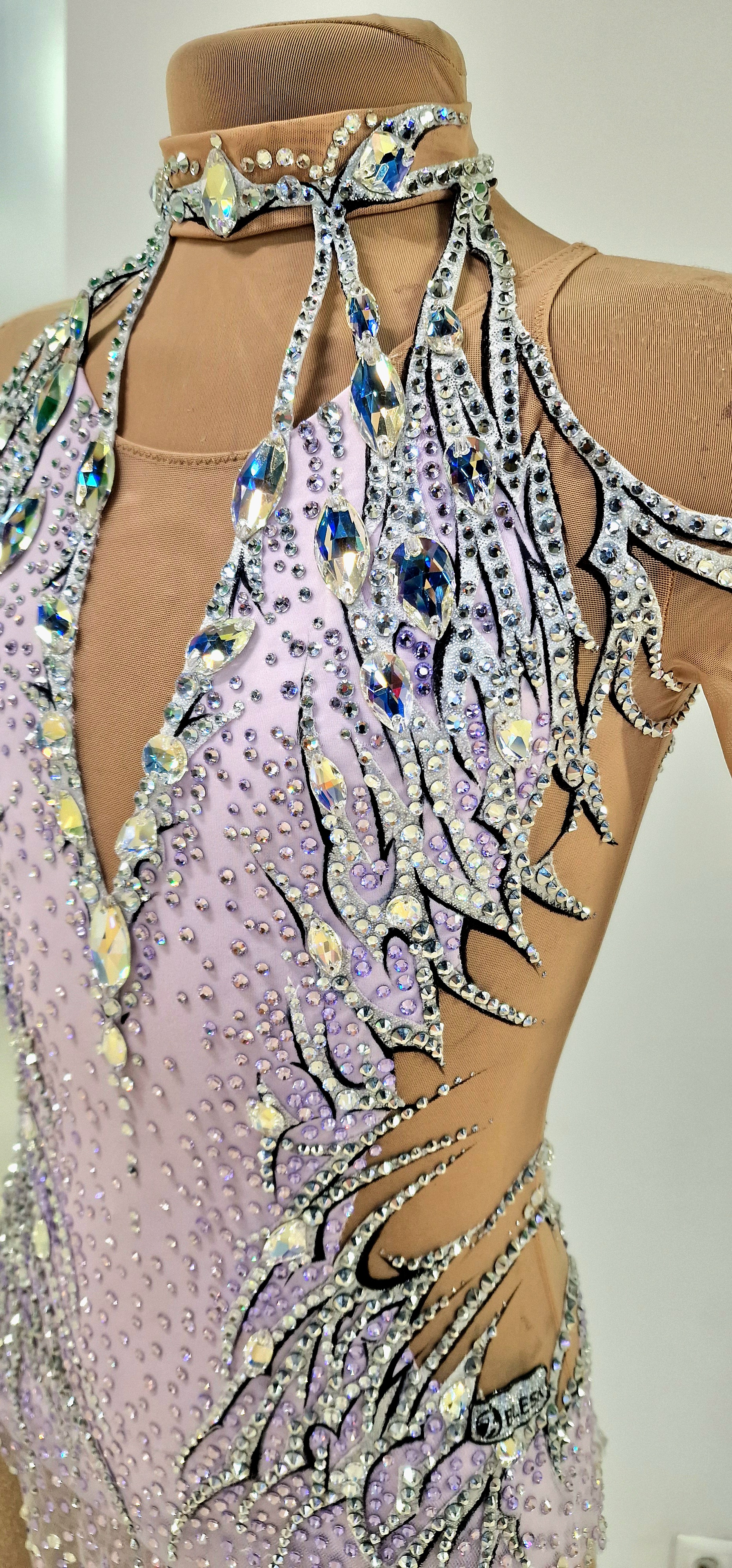4,080 adhesive and 95 large sewn rhinestones were Pre-owned on the leotard.