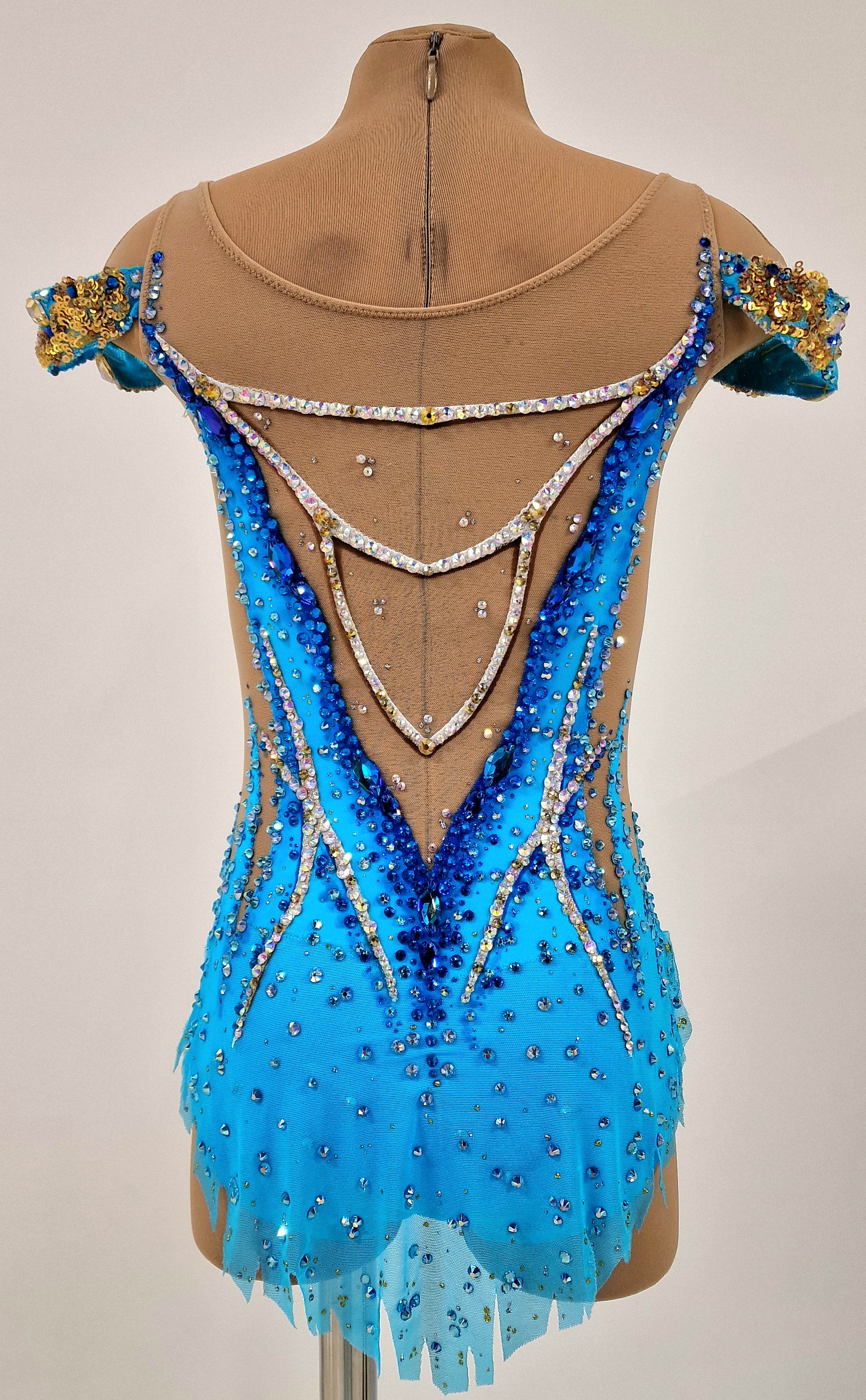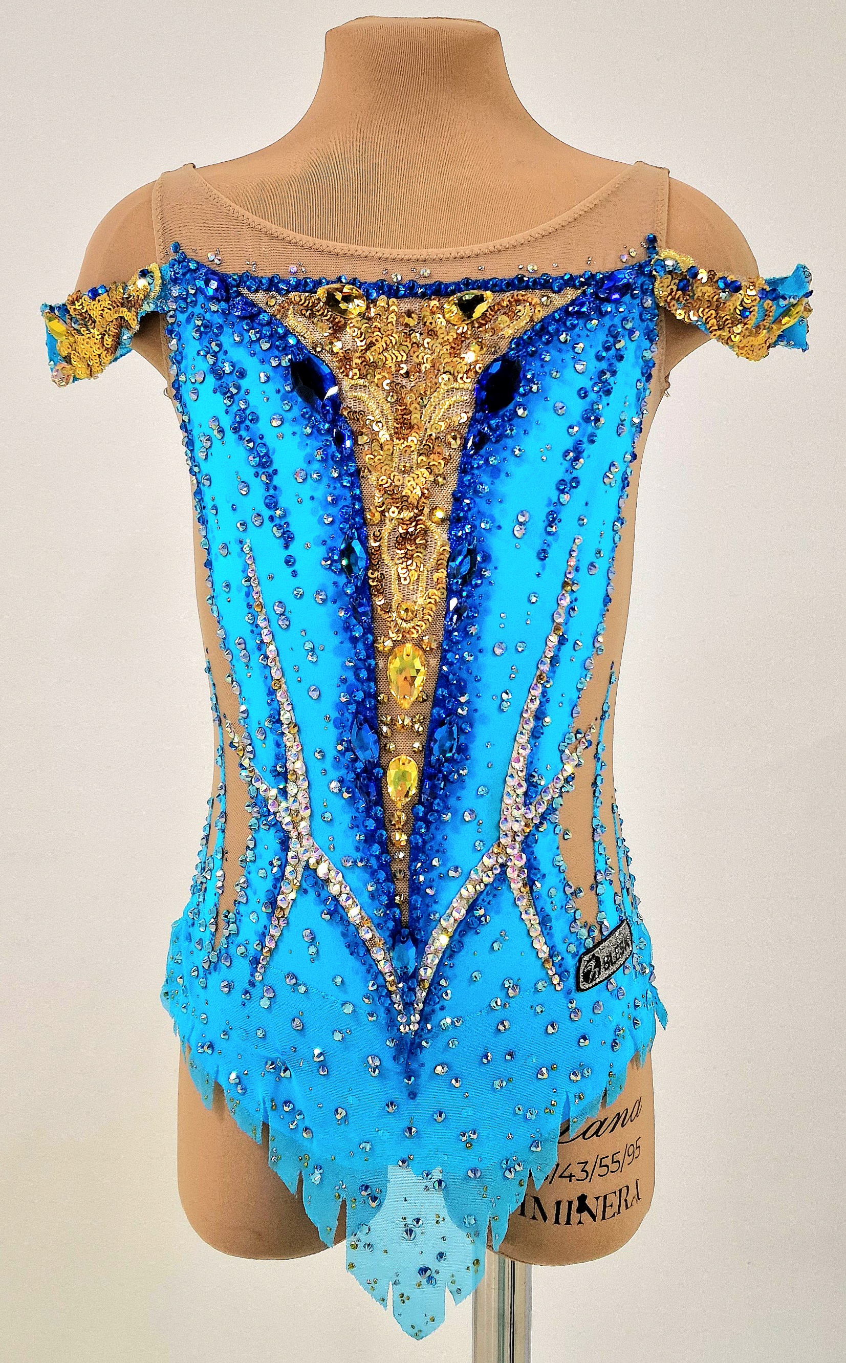 1,600 adhesive and 41 large sewn rhinestones were Pre-owned on the leotard.