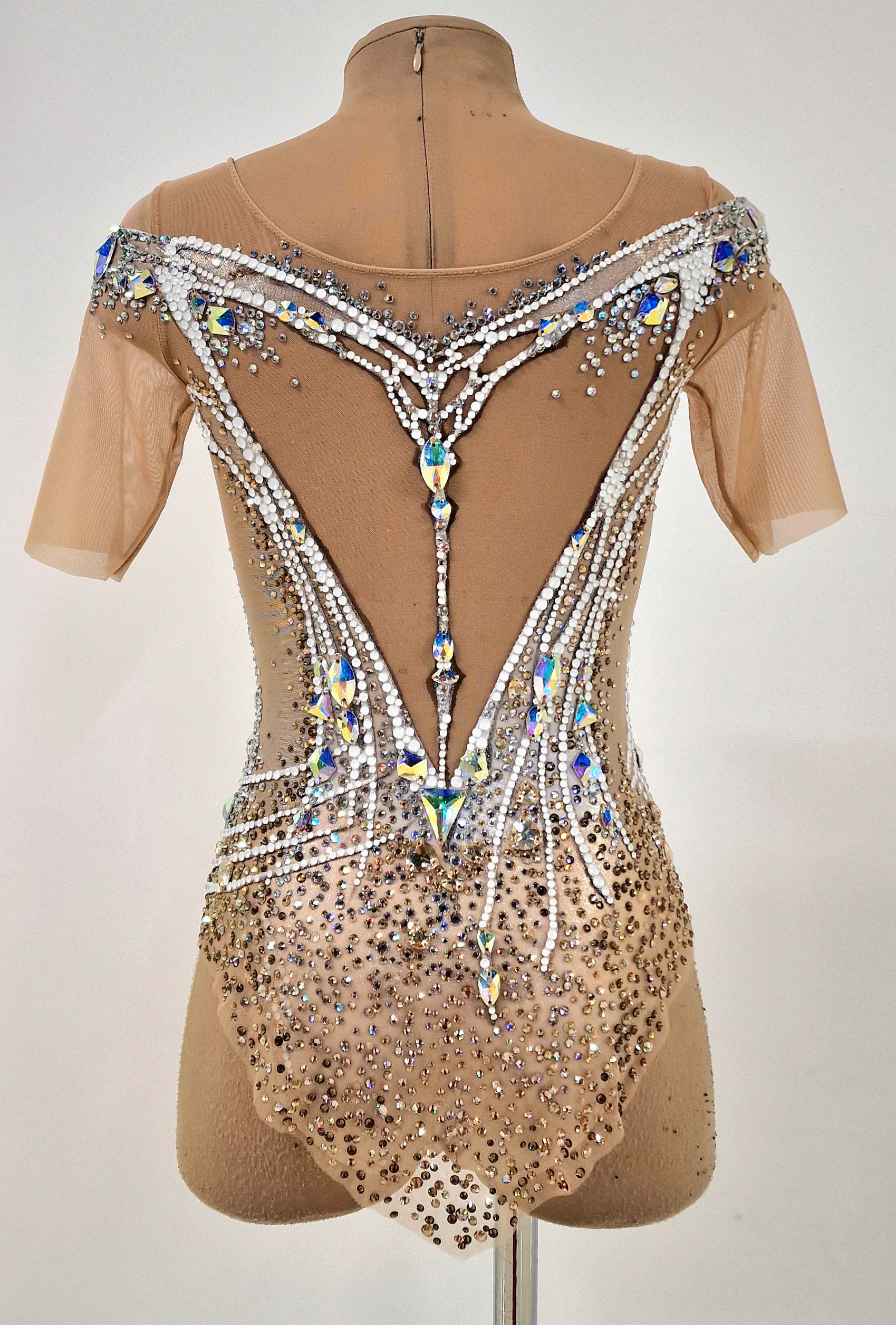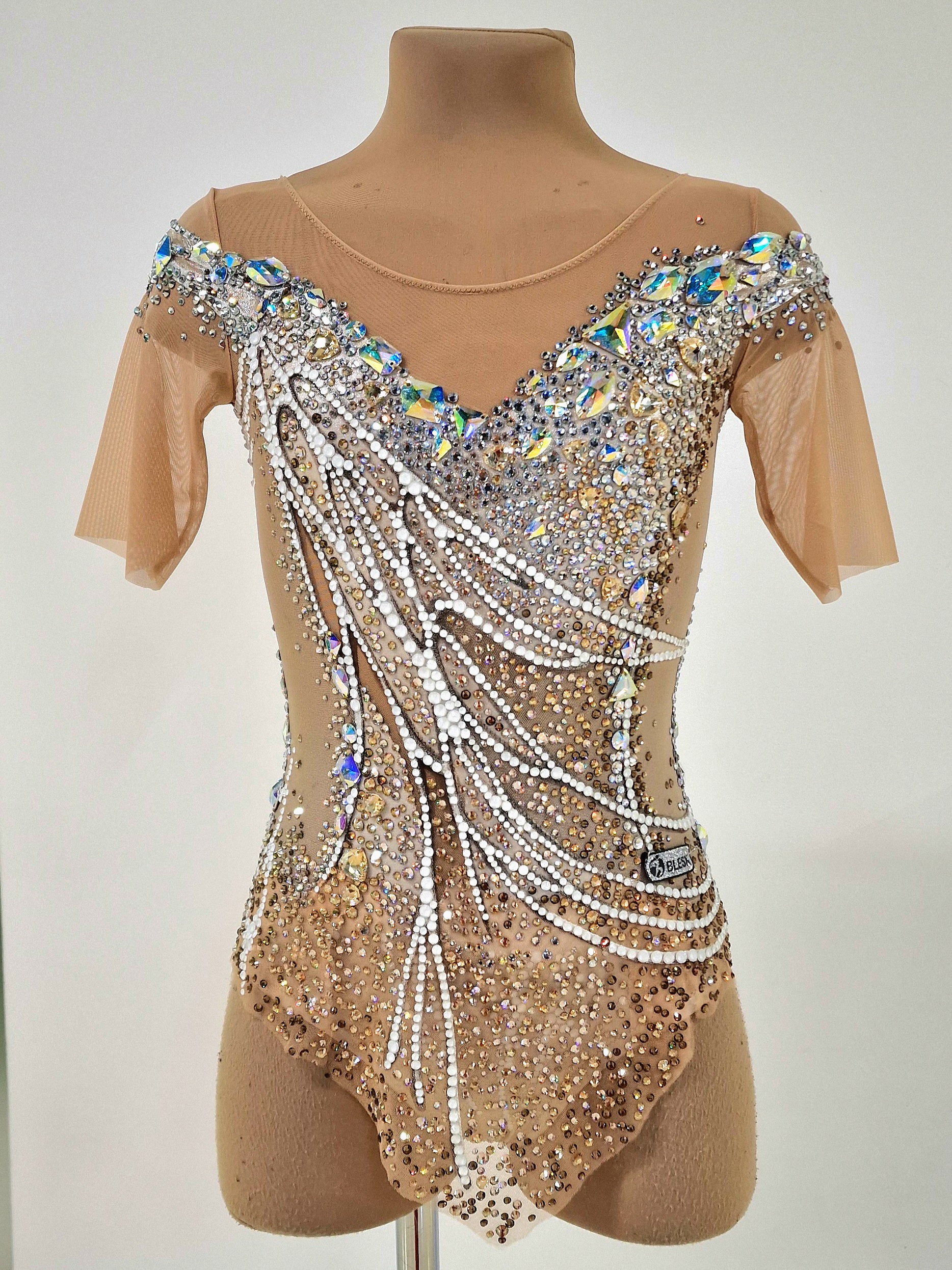 7,500 adhesive and 105 large sewn rhinestones were Pre-owned on the leotard.