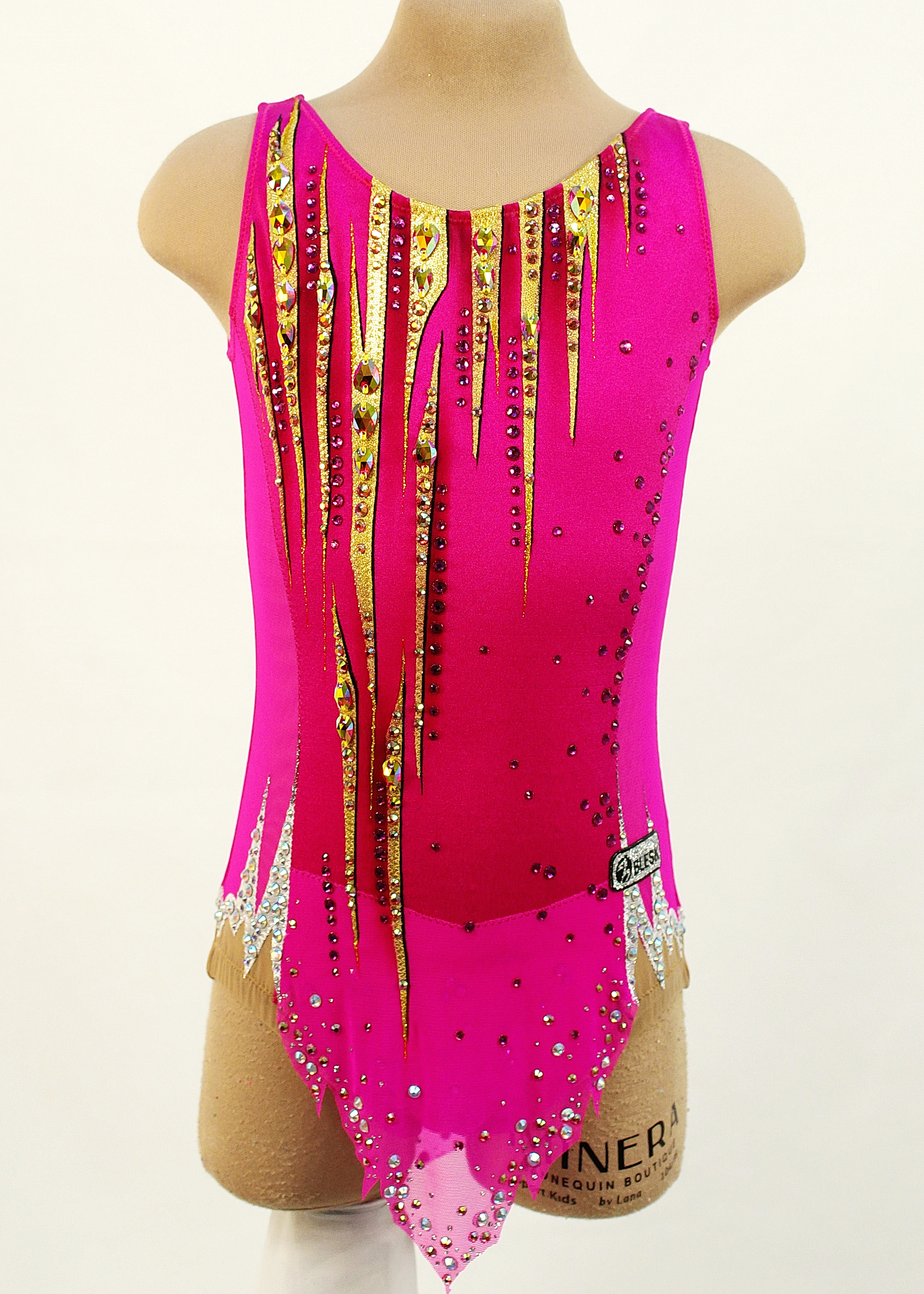 1250 glue and 35 large sewn rhinestones were Pre-owned on the leotard.