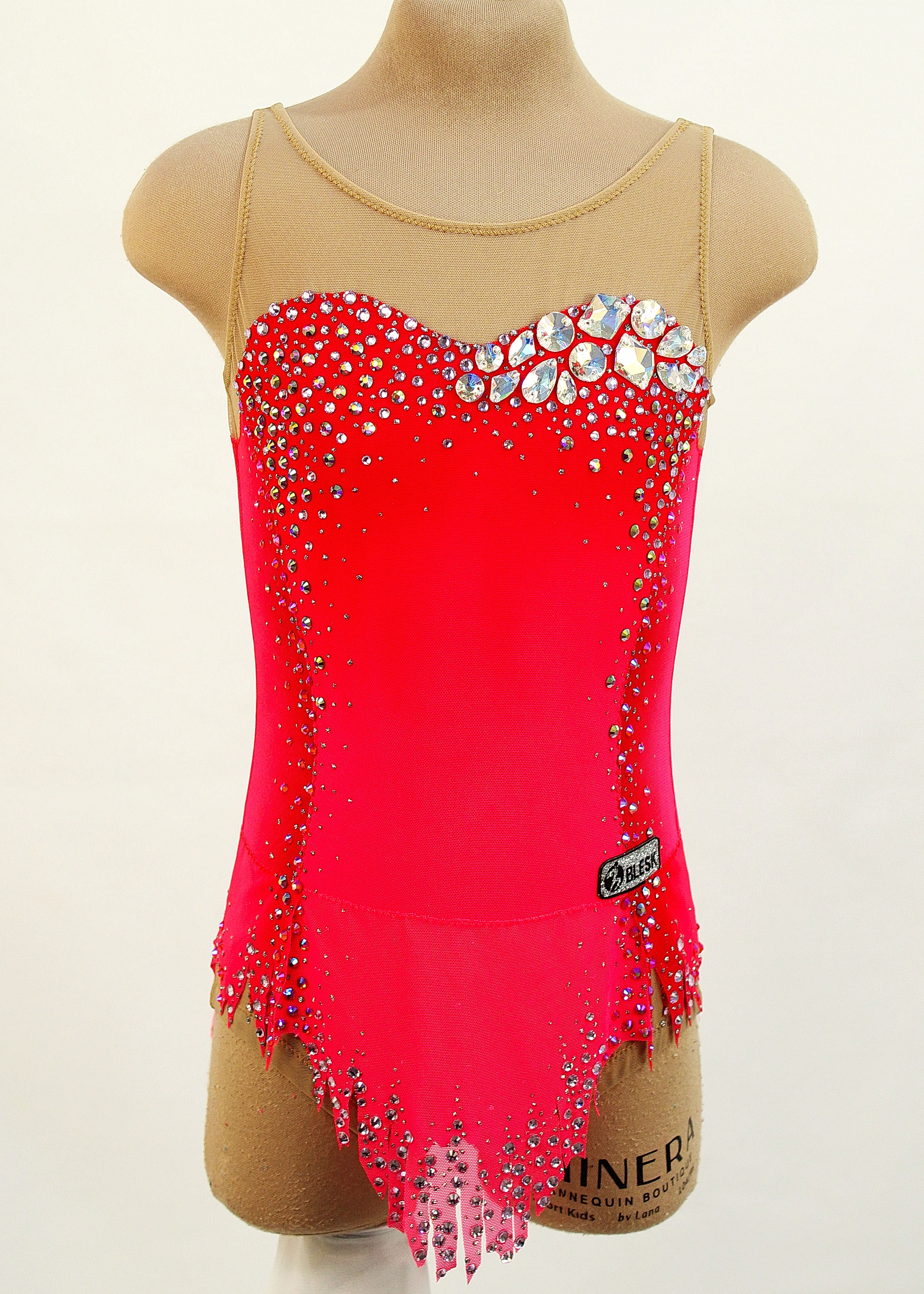 650 adhesive and 15 large sewn rhinestones are Pre-owned on the leotard.