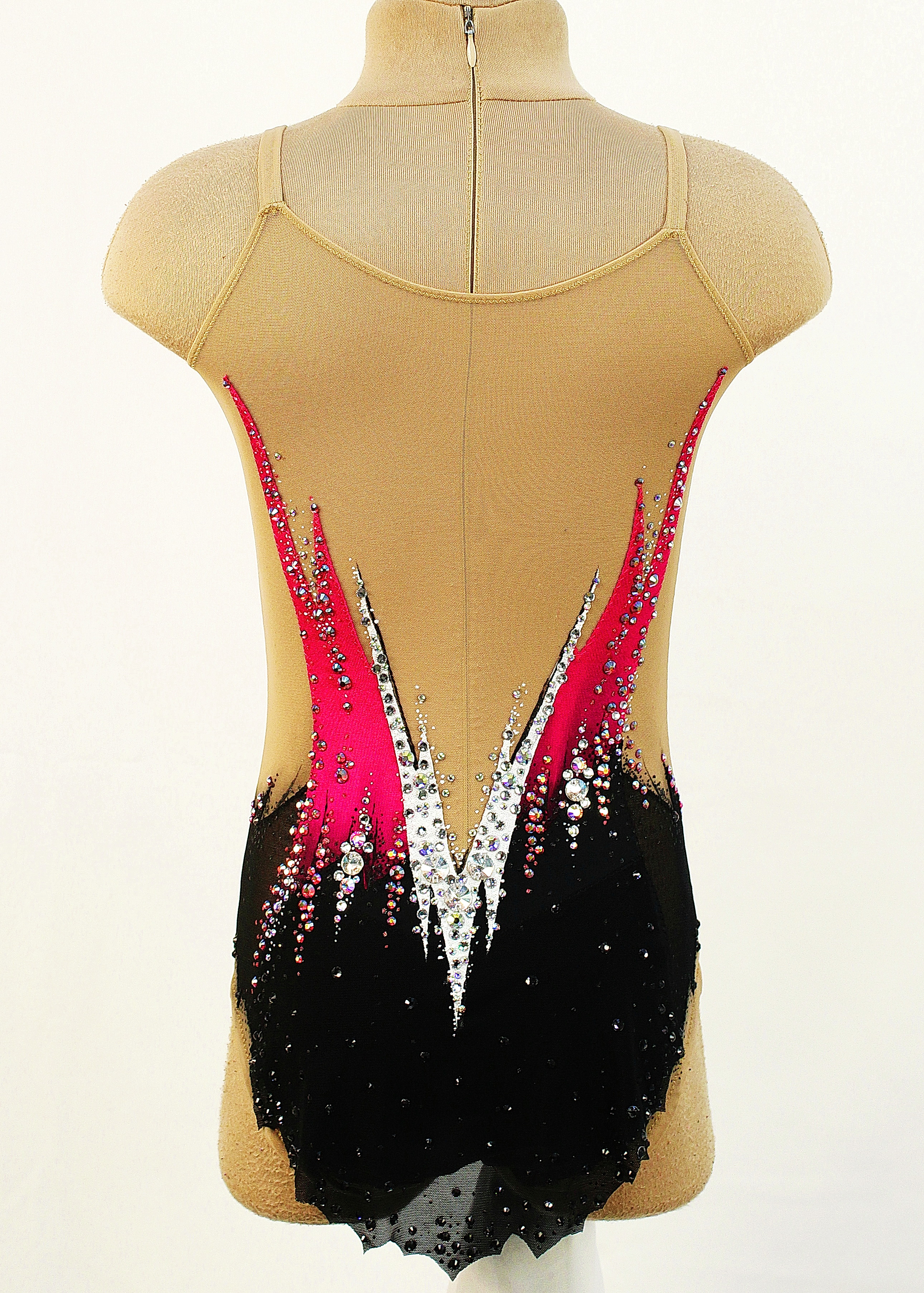 The leotard uses 985 adhesive and 16 large sewn rhinestones.