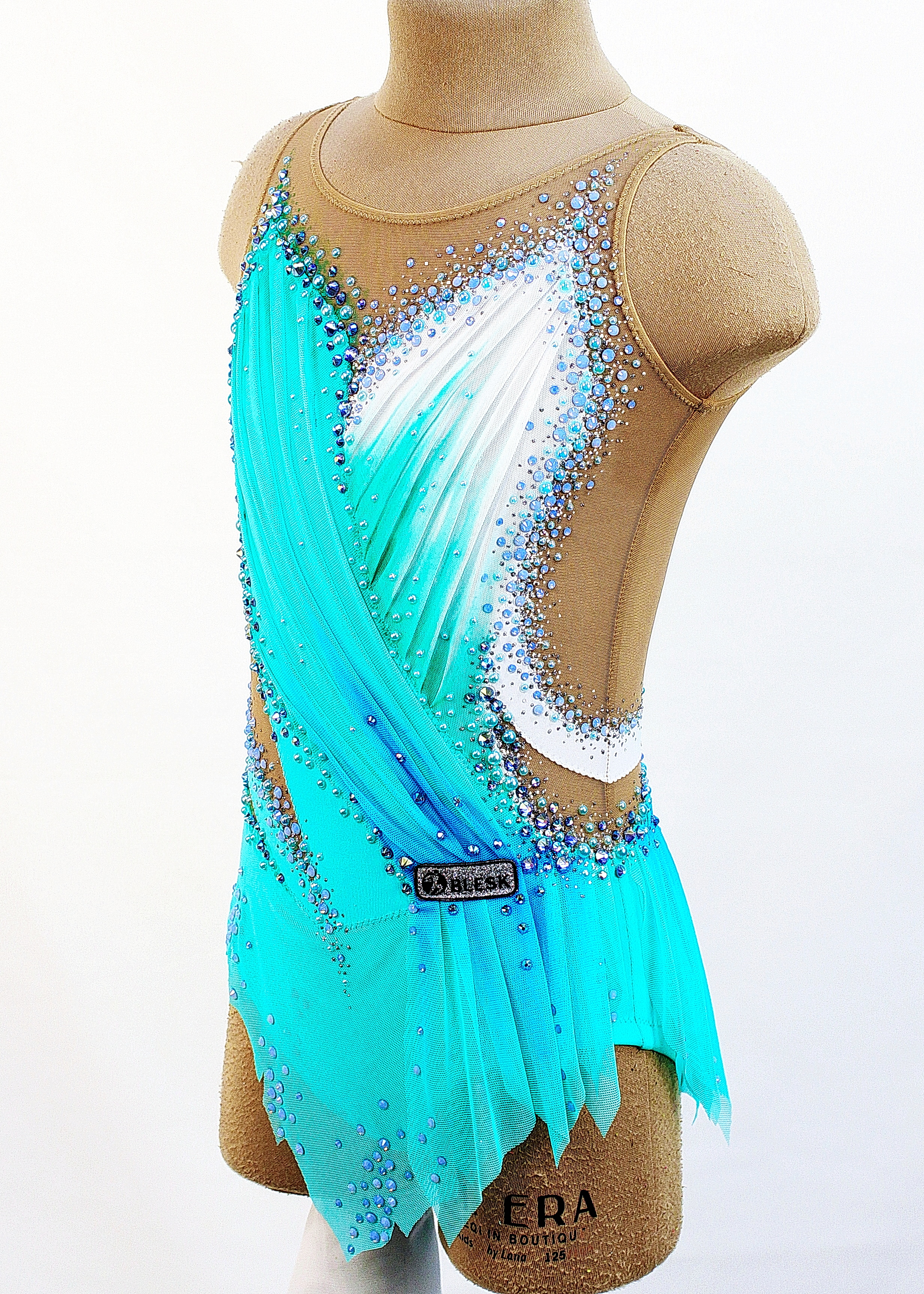 850 glue rhinestones and 450 pearls are Pre-owned on the leotard.