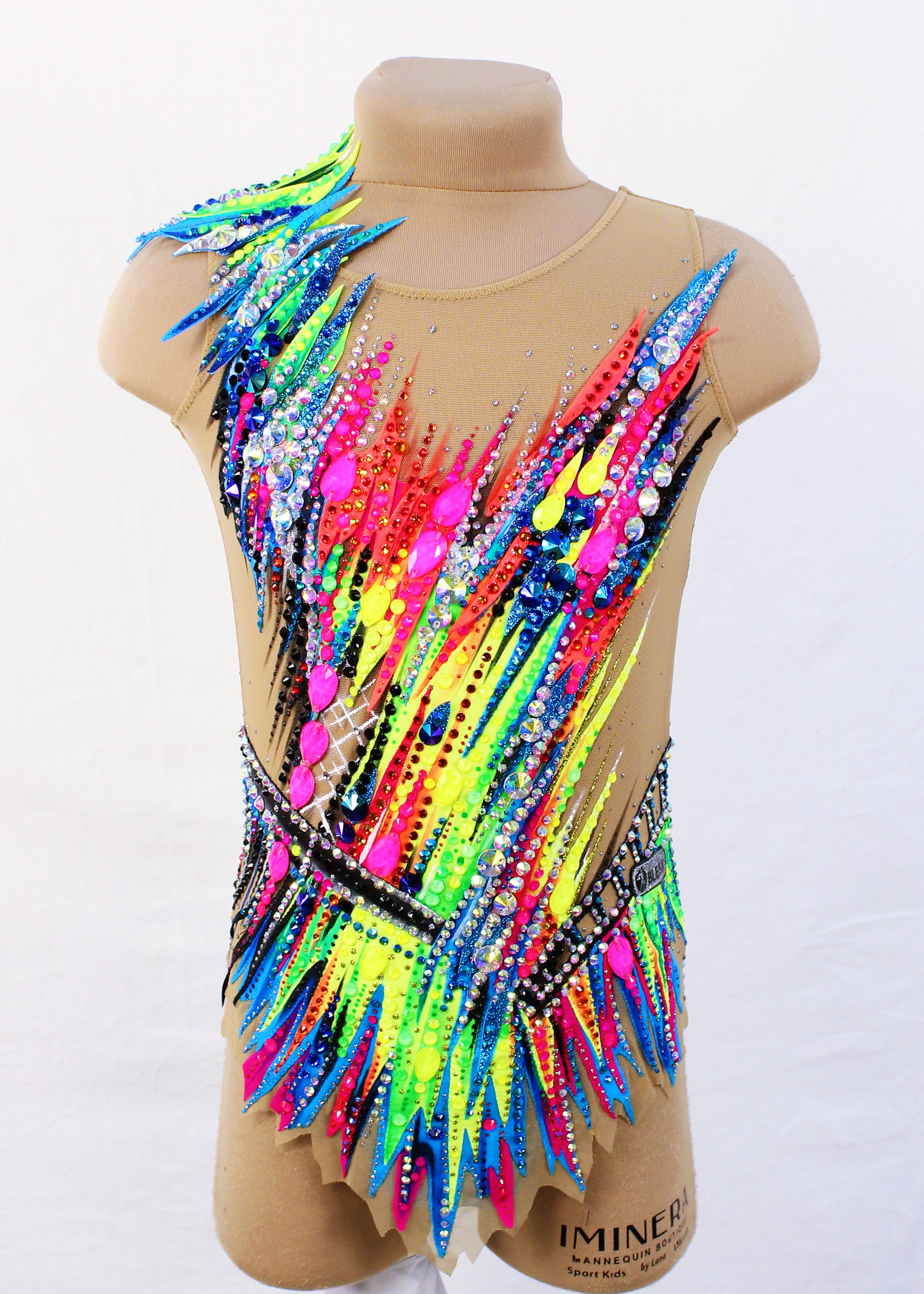2,160 adhesive and 94 large sewn rhinestones were Pre-owned on the leotard.