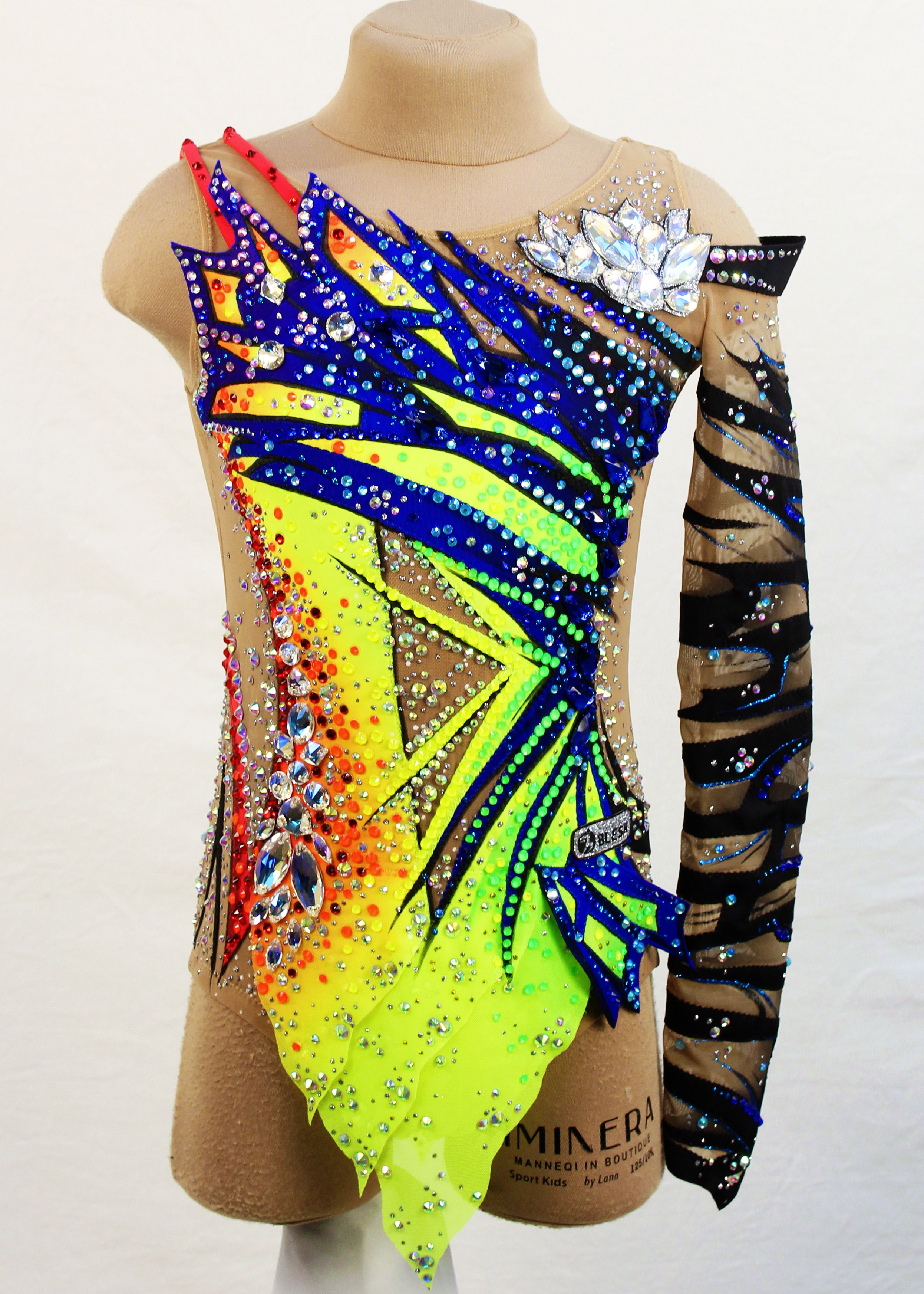 2,250 adhesive and 89 large sewn rhinestones were Pre-owned on the leotard.