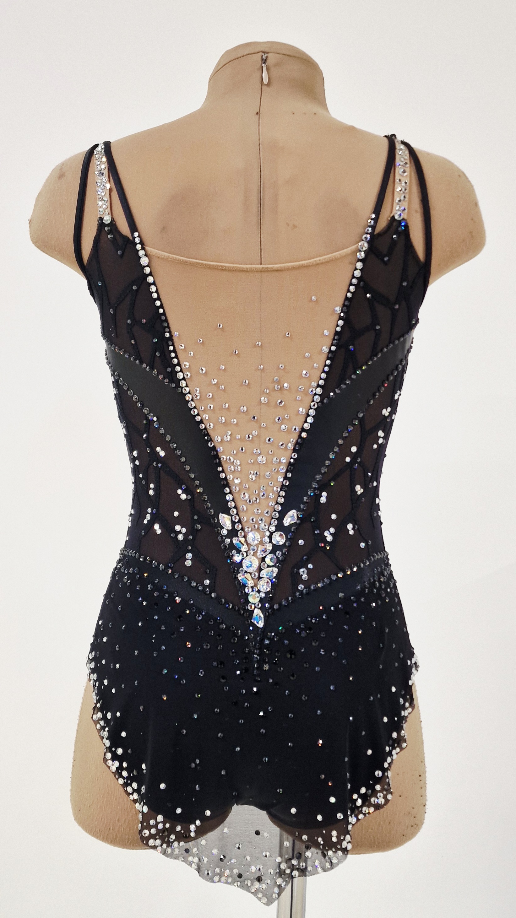 The leotard uses 2,950 adhesive and 69 large sewn rhinestones.