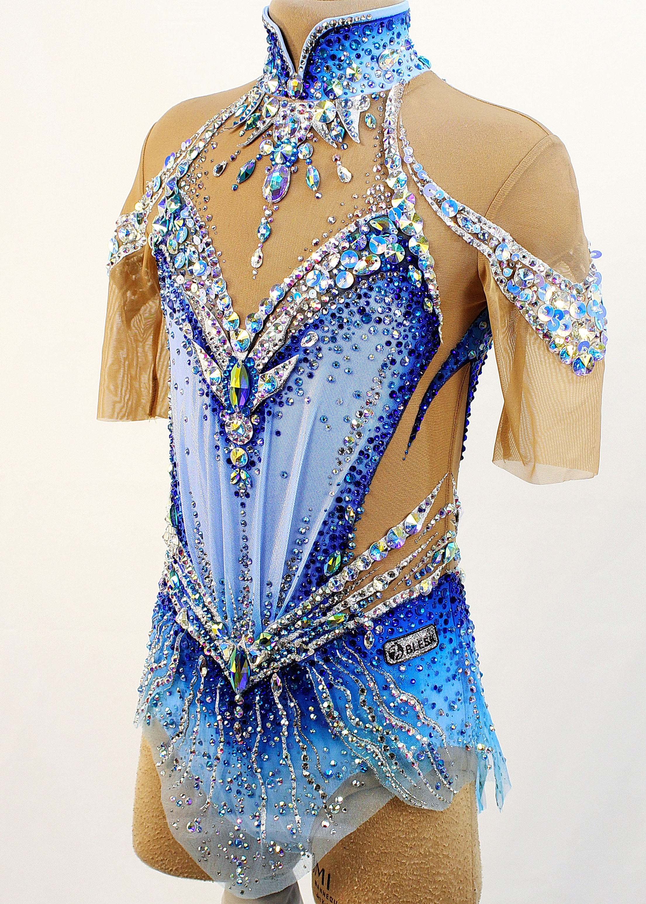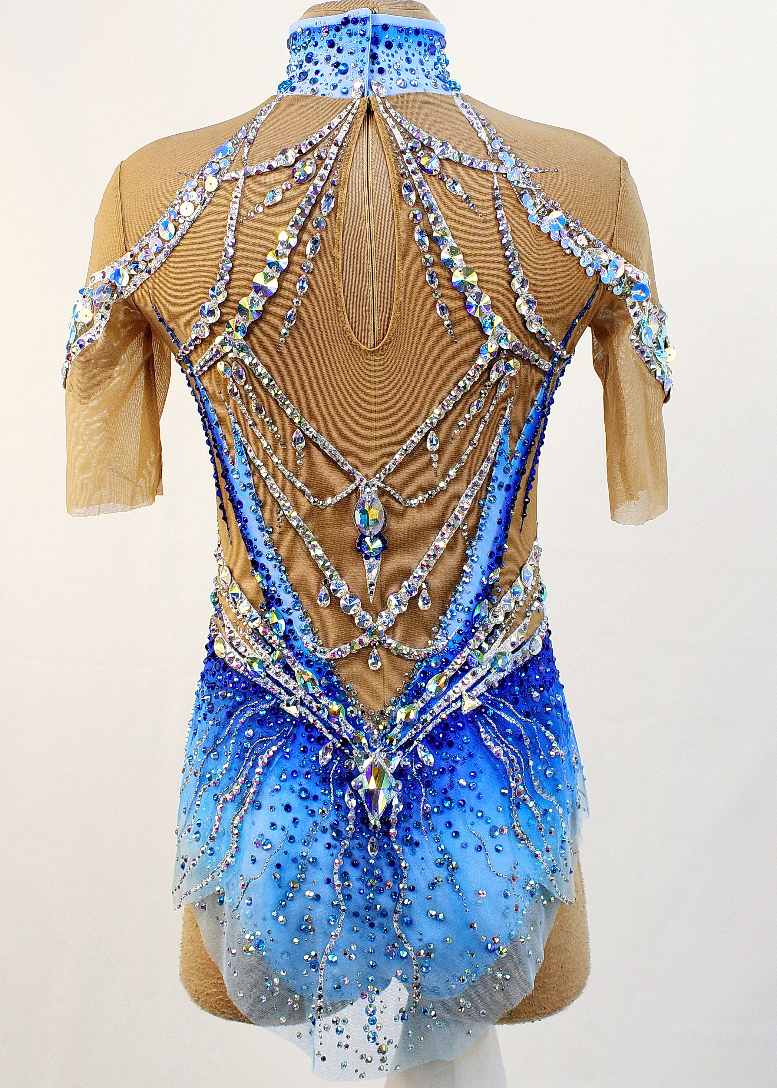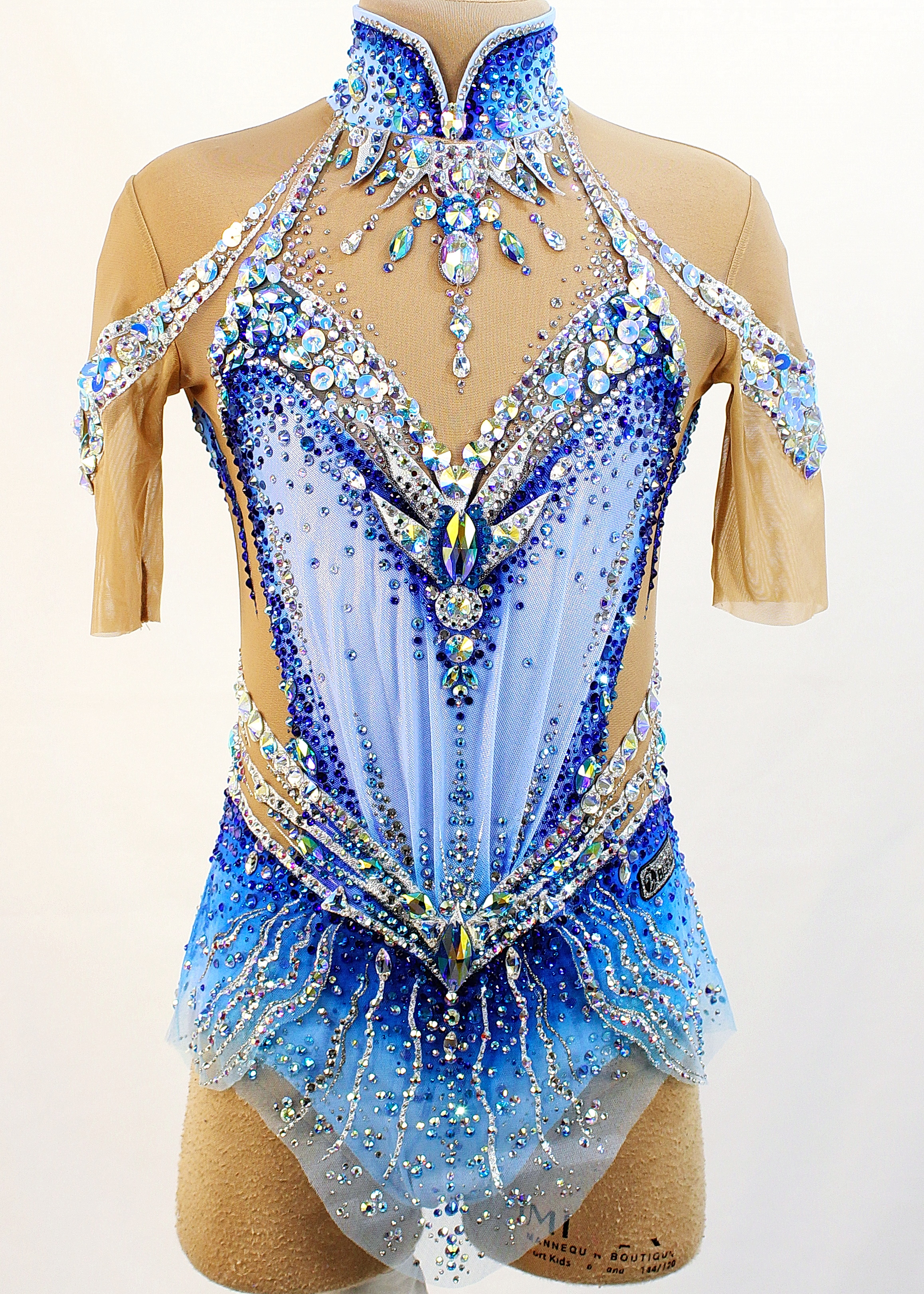 3835 glue and 229 large sewn rhinestones were Pre-owned on the leotard.