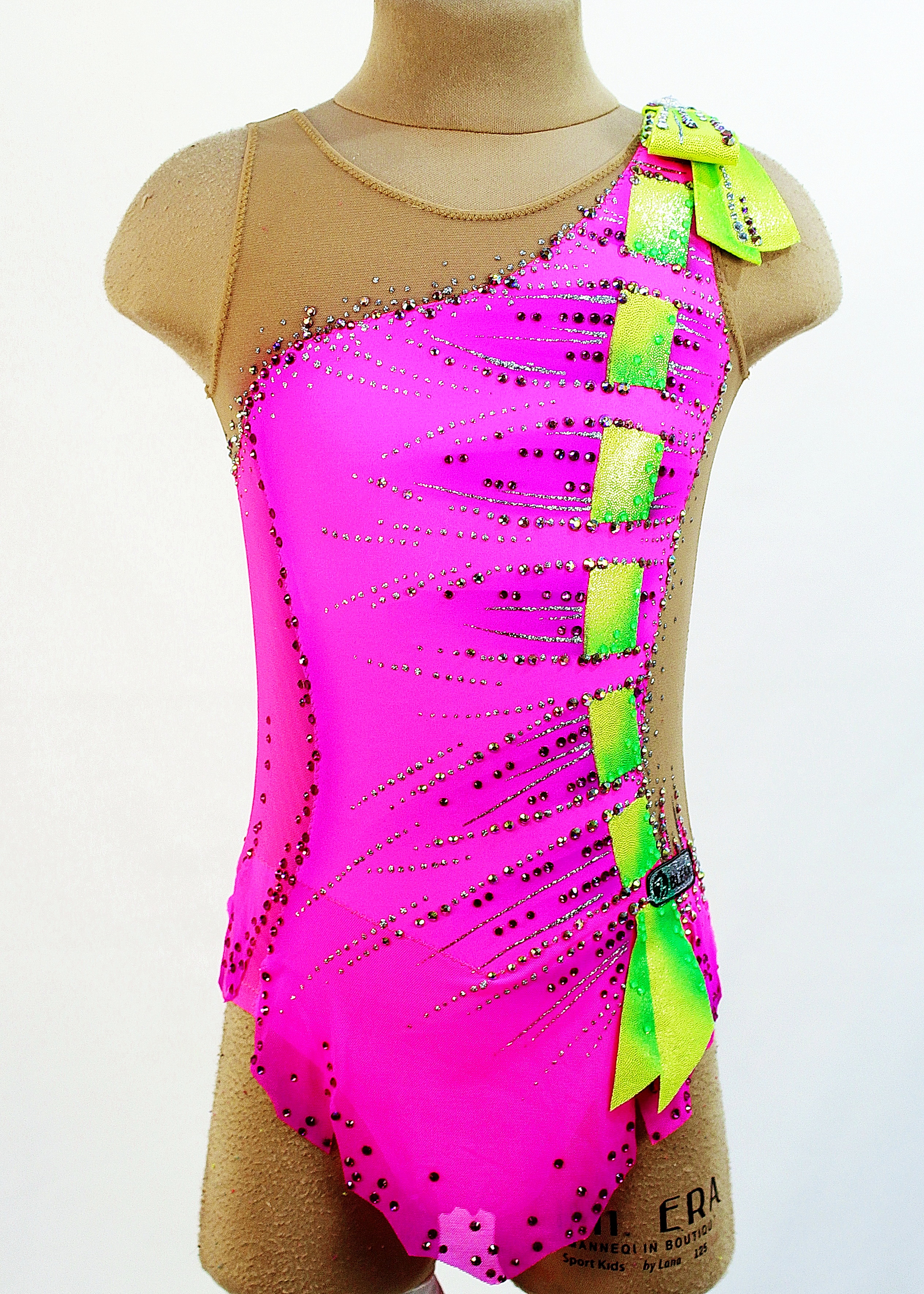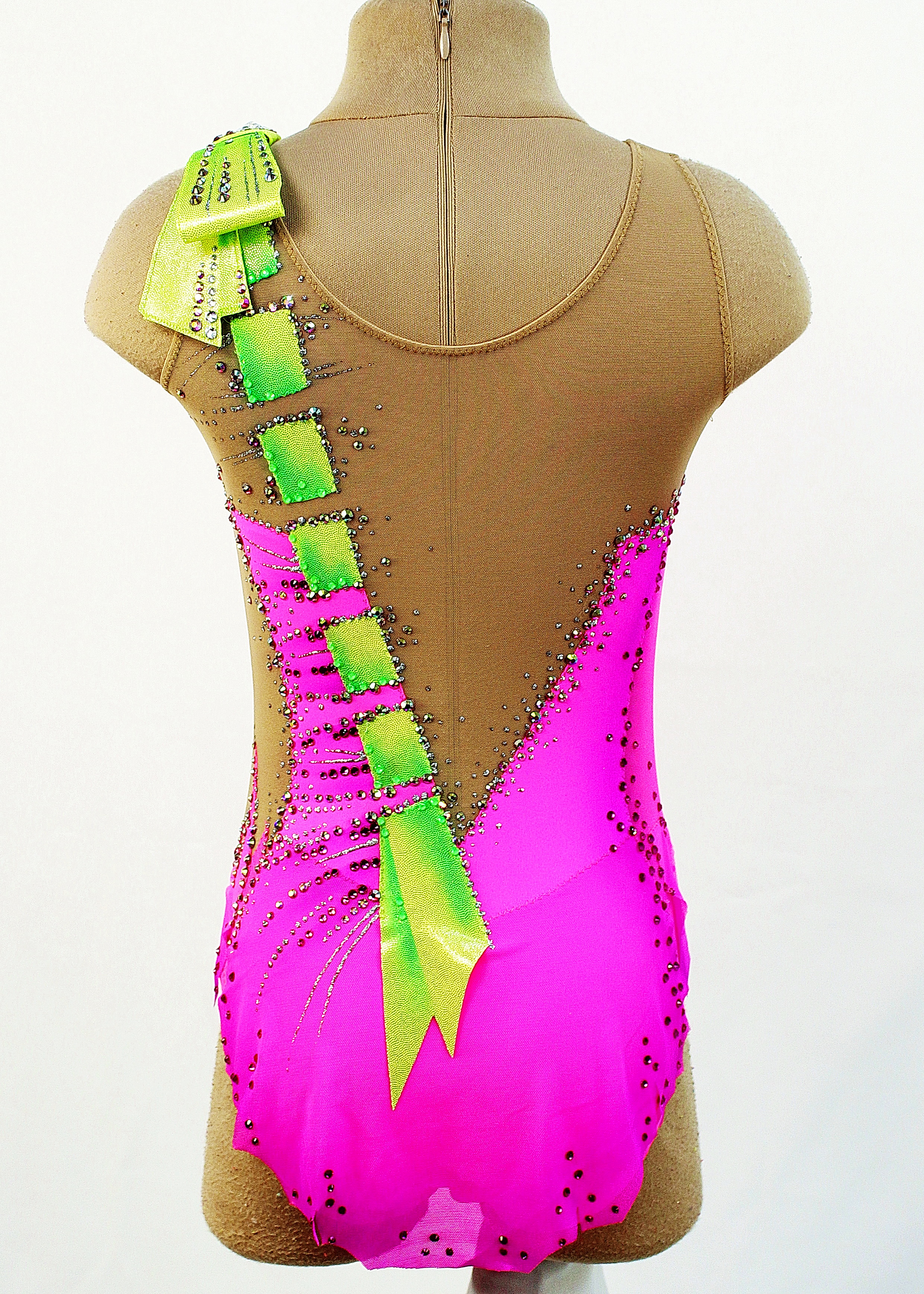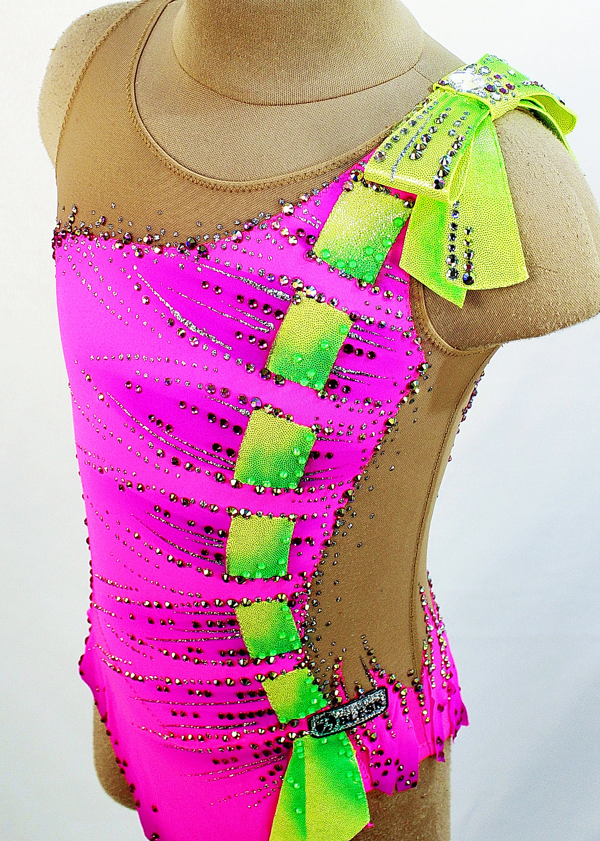 The leotard uses 1030 glue and 1 large sewn rhinestones.