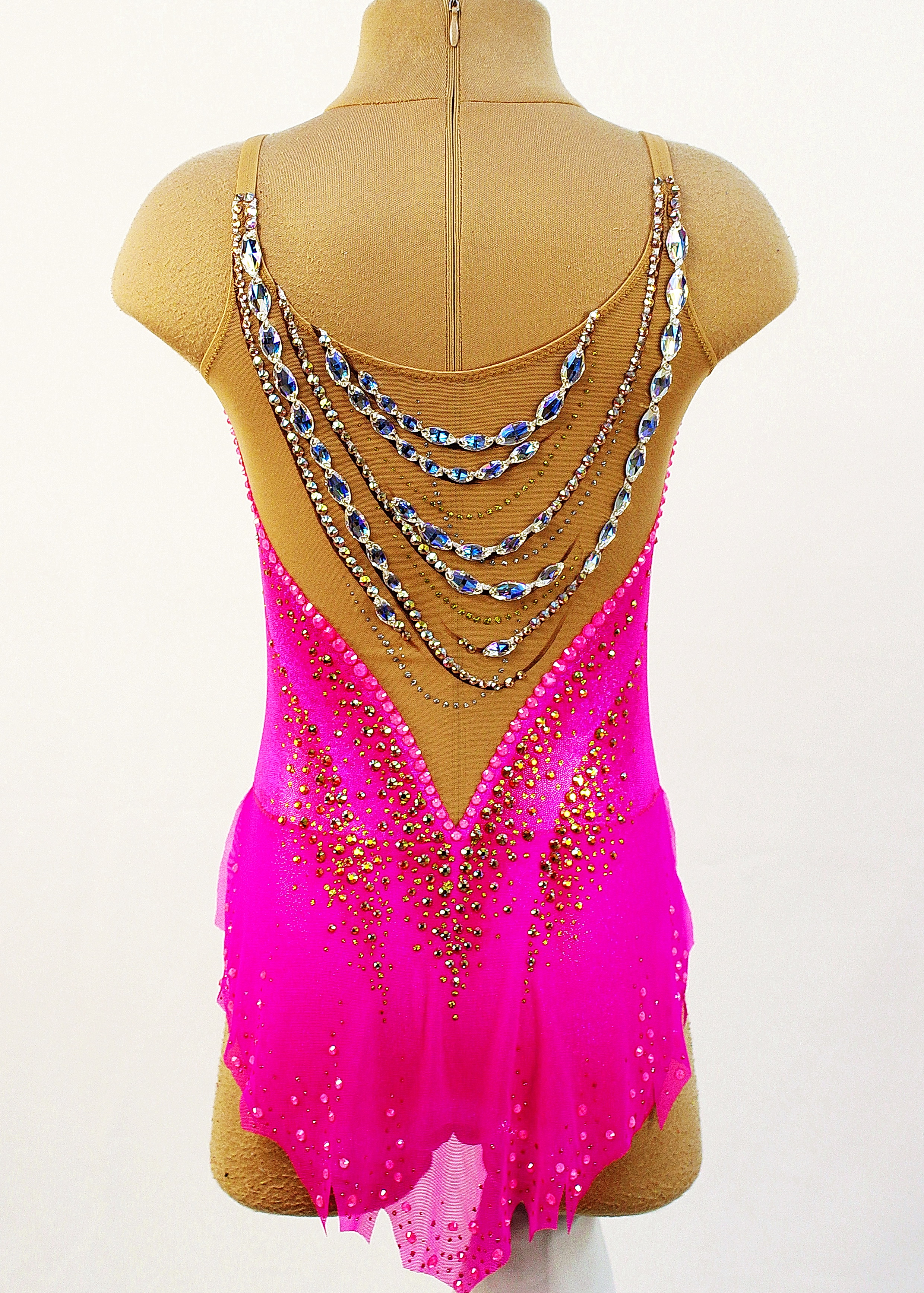 1230 adhesive and 50 large sewn rhinestones were Pre-owned on the leotard.