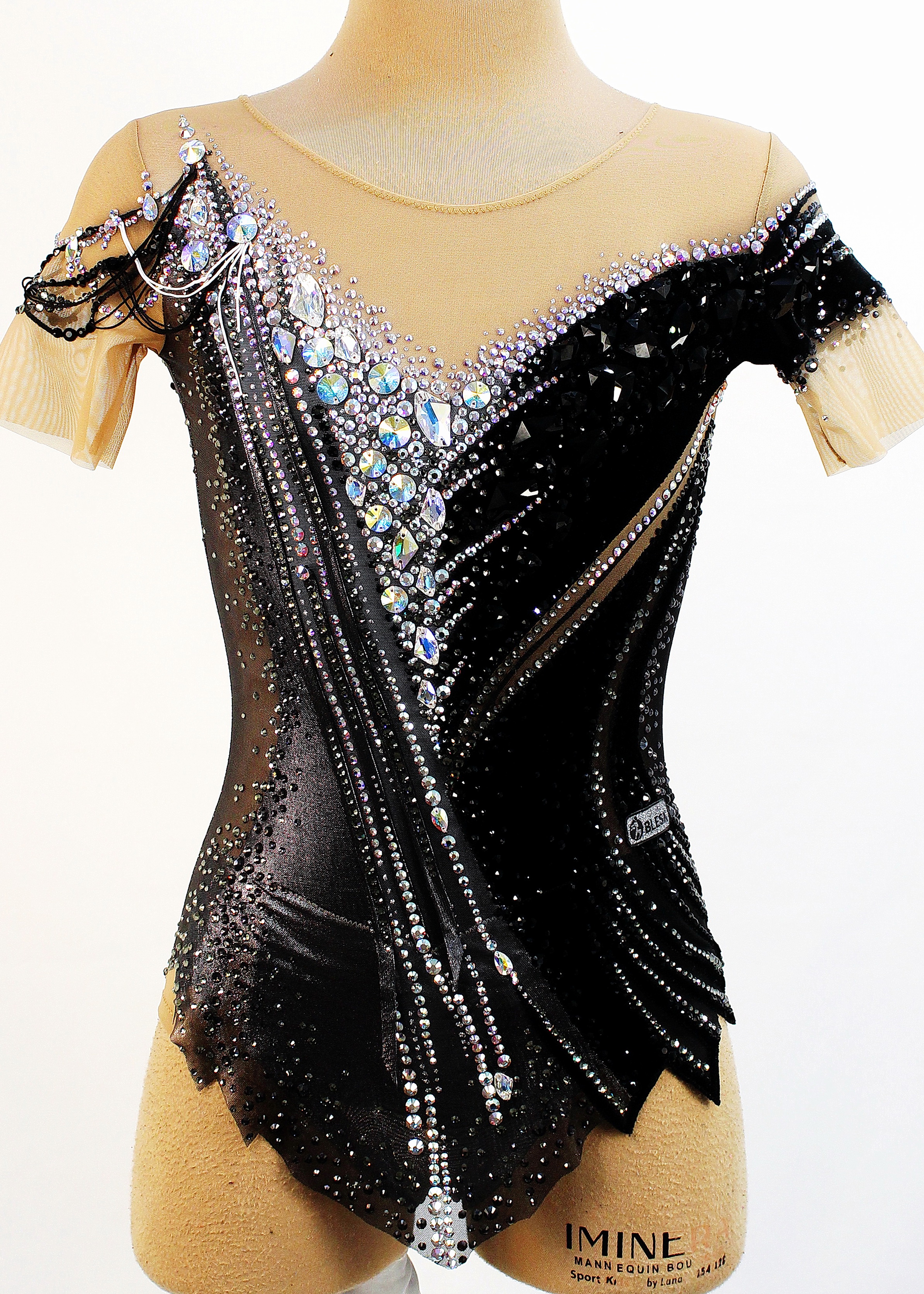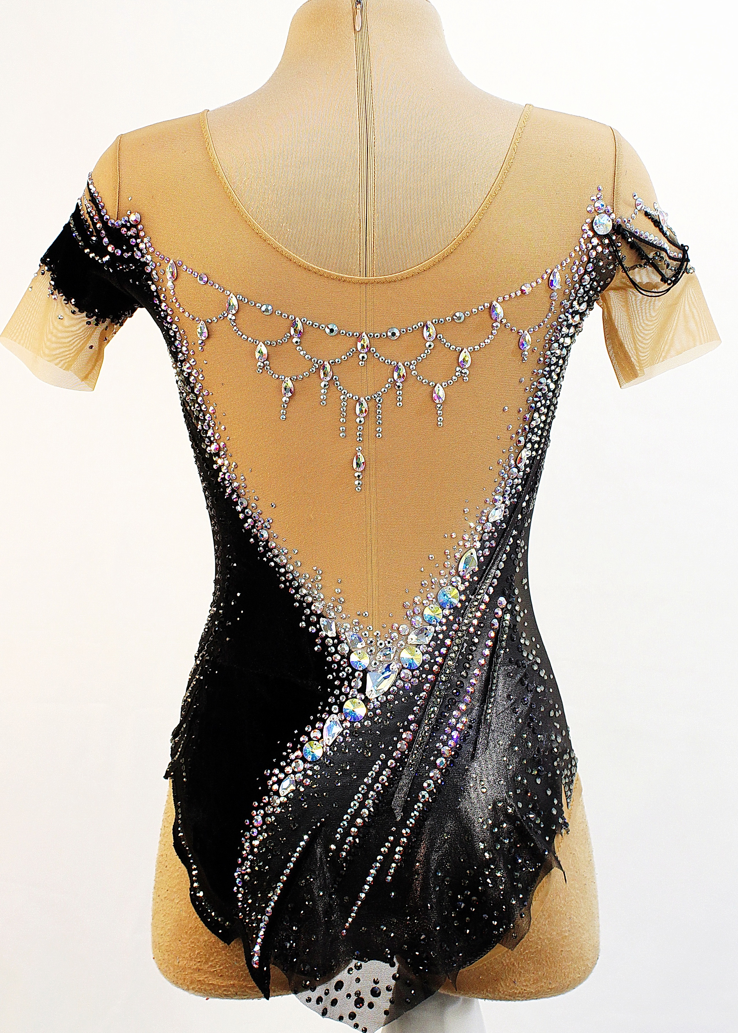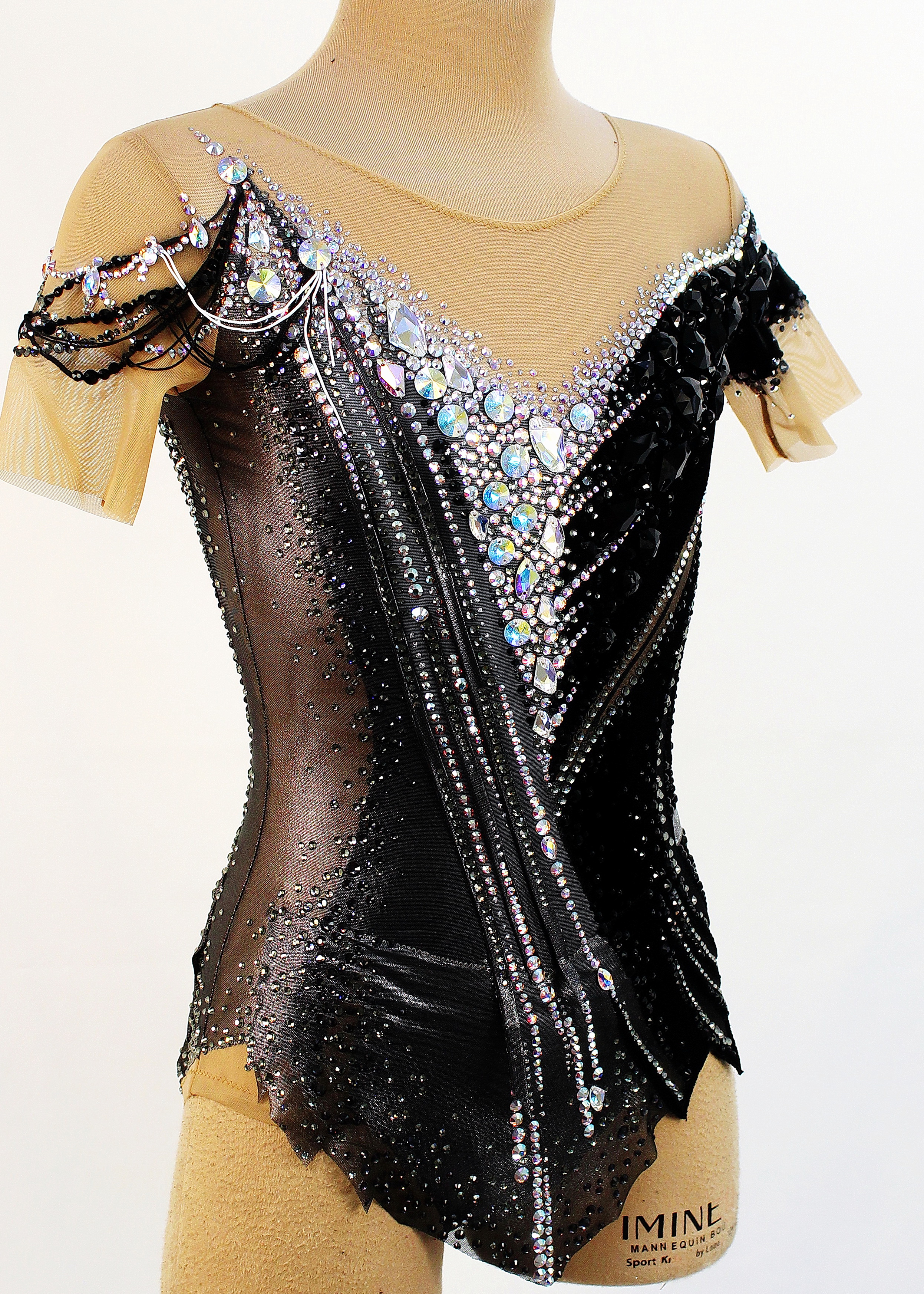 The leotard uses 5050 glue and 91 large sewn rhinestones.
