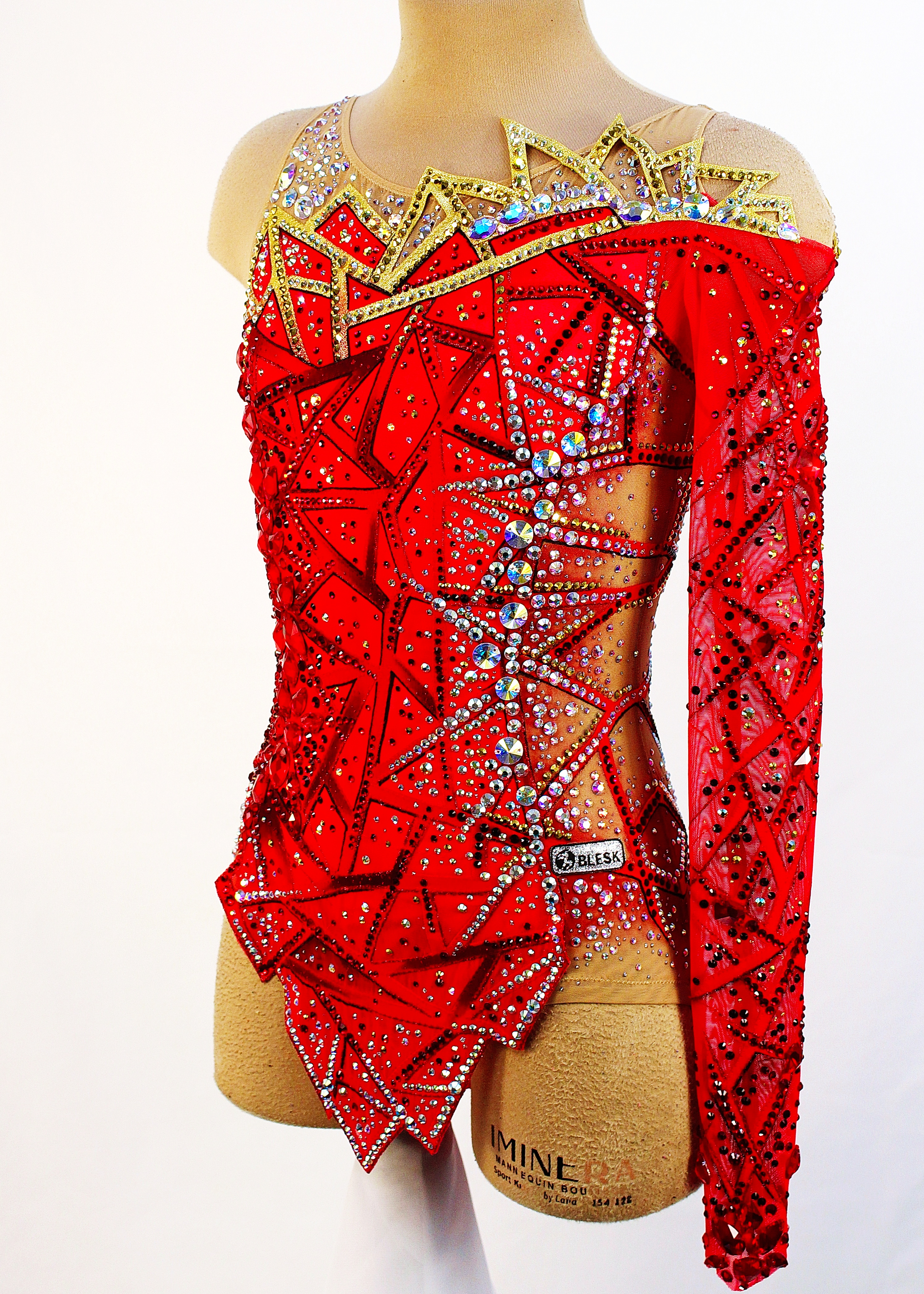 5200 glue and 115 large sewn rhinestones were Pre-owned on the leotard.