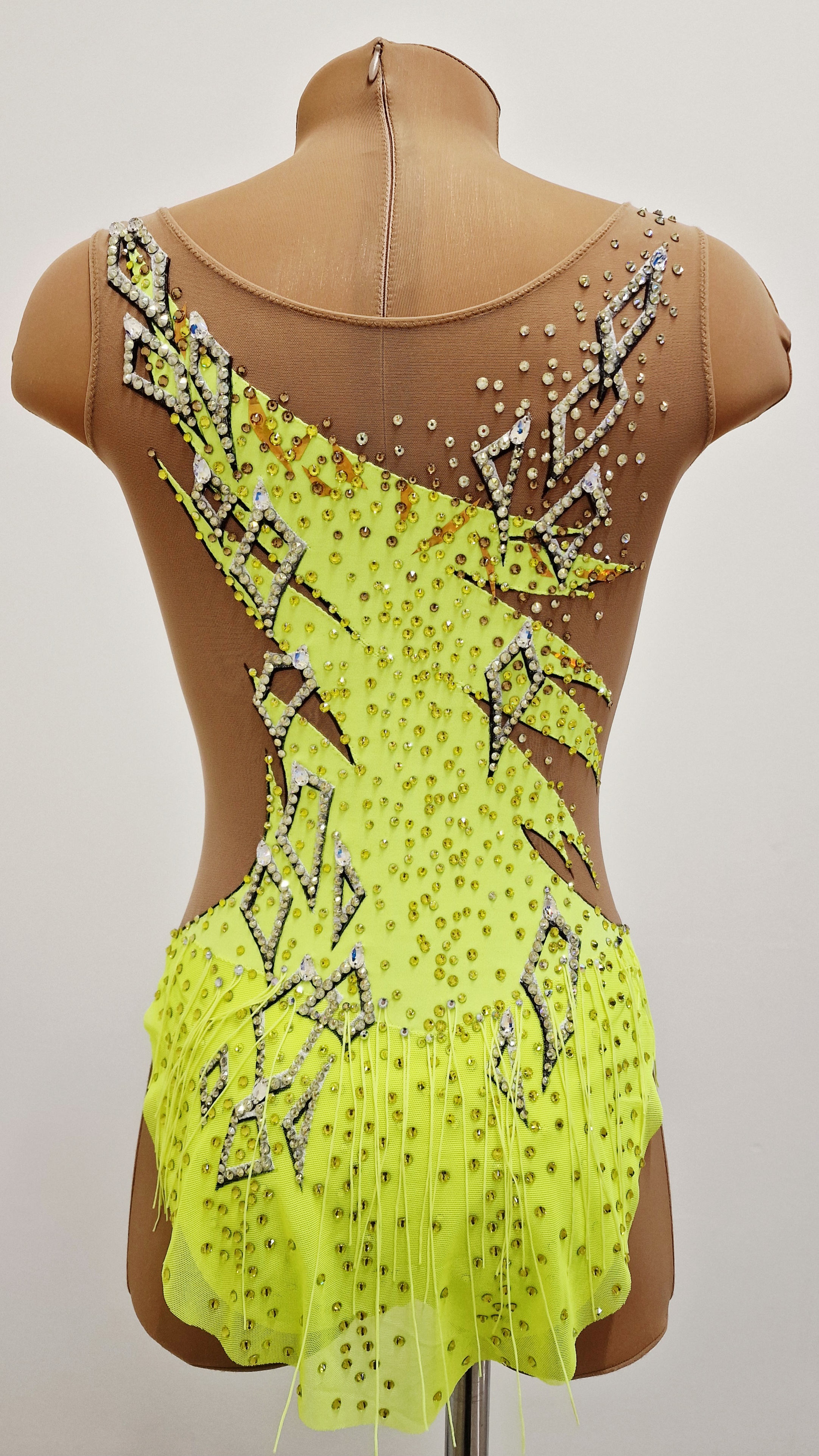 3,000 adhesive and 39 large sewn rhinestones were Pre-owned on the leotard.