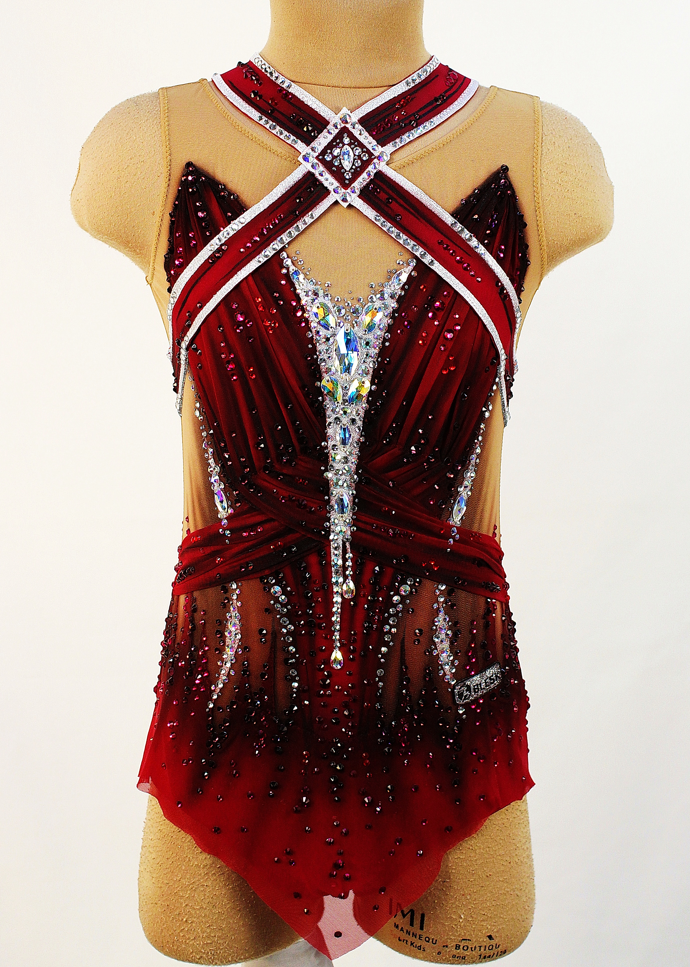 The leotard uses 2200 glue and 23 large sewn rhinestones.