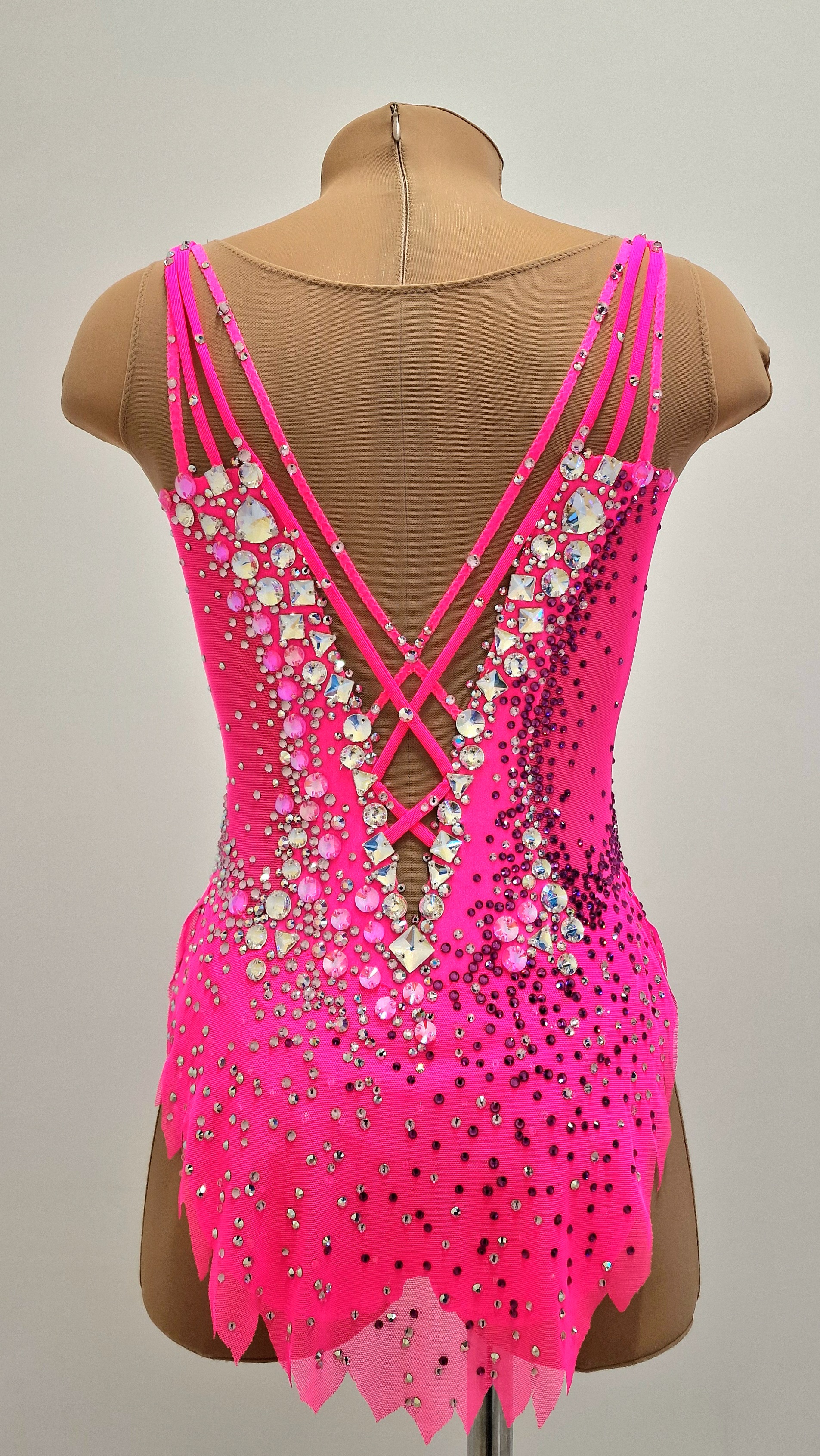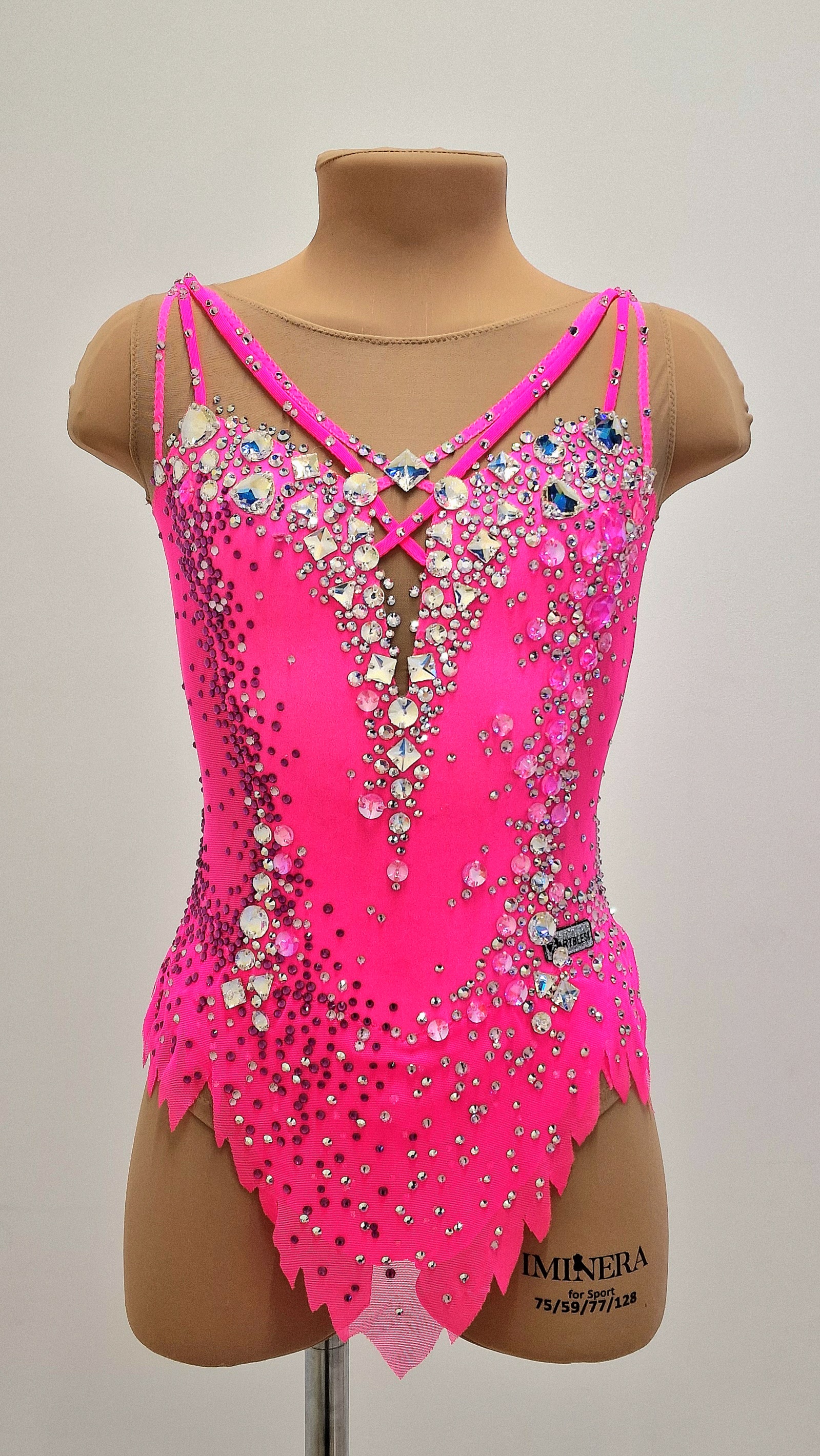 The leotard uses 2,751 adhesive and 164 large sewn rhinestones.